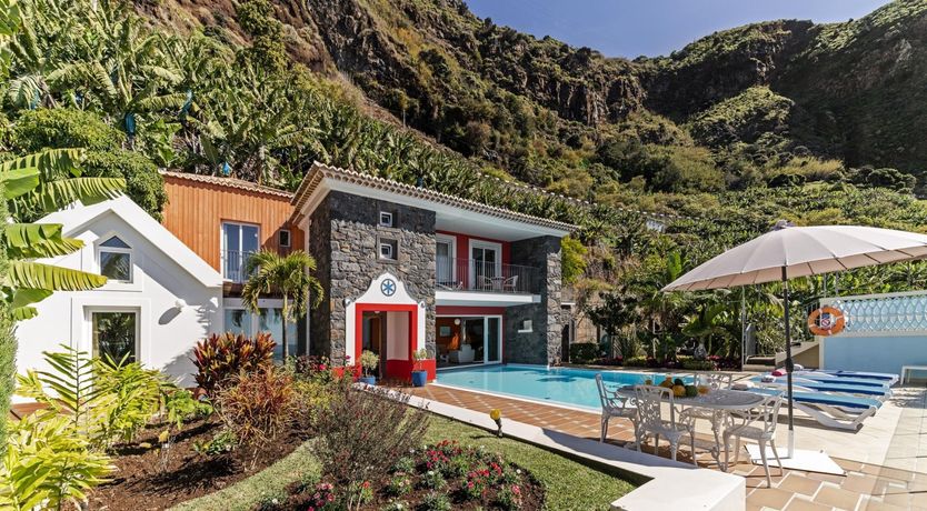 While clifftop homes come in for a lot of praise, what about those that sit at the bottom of a rockface, like this Madeiran villa? Not only does it benefit from uninterrupted views of the glistening ocean, but there's also ready access to a shared rocky beach just 30 metres from the home. Sticking around outside, guests will be pleased to find a private infinity pool positioned to make the most of the coastal vista, as well as seating and a table at the end of the terrace.