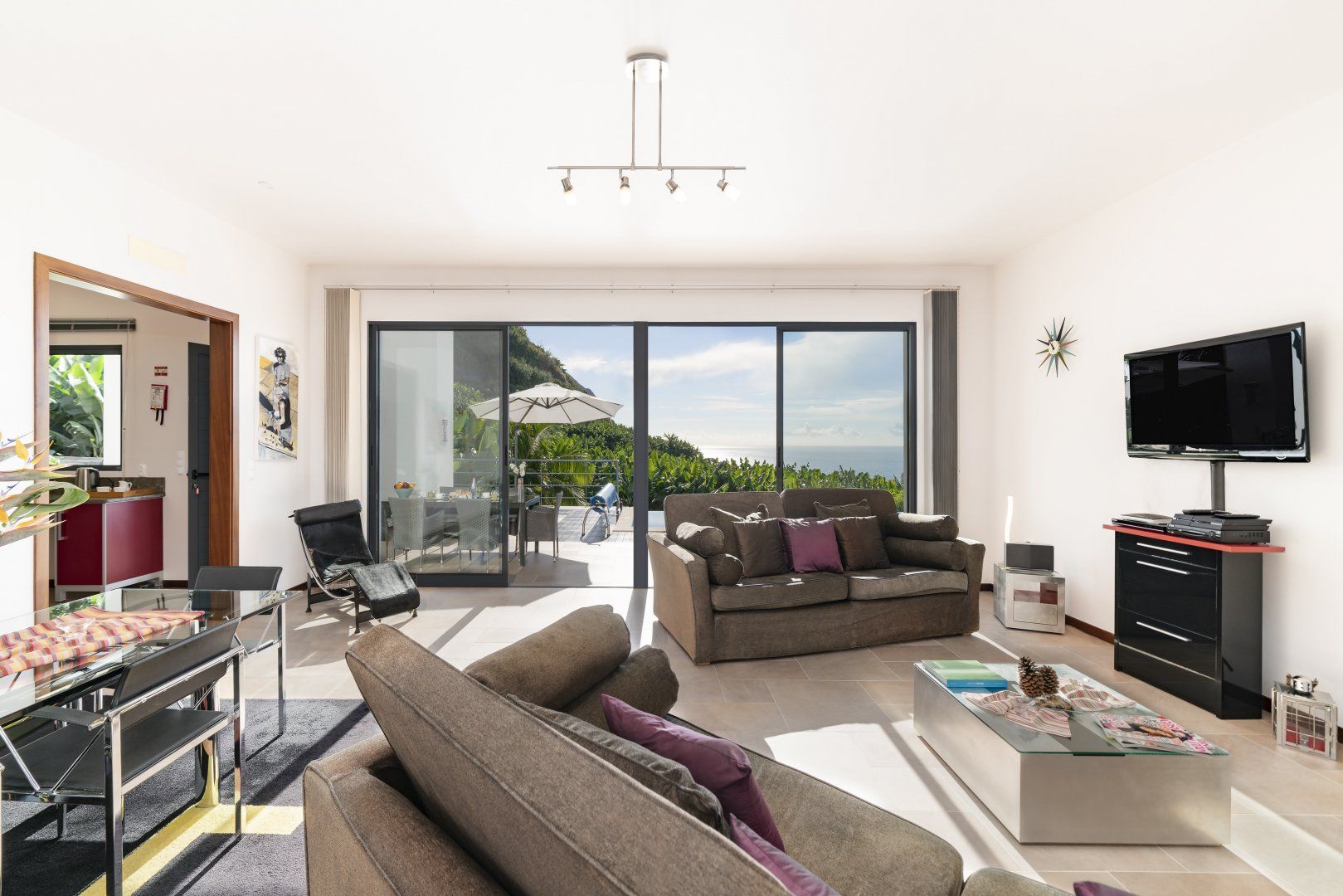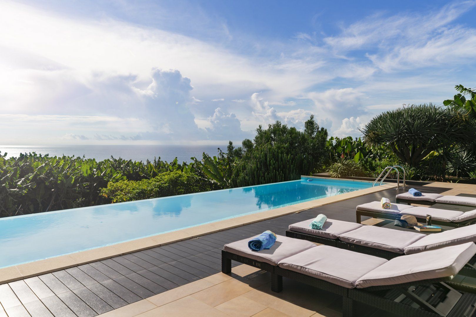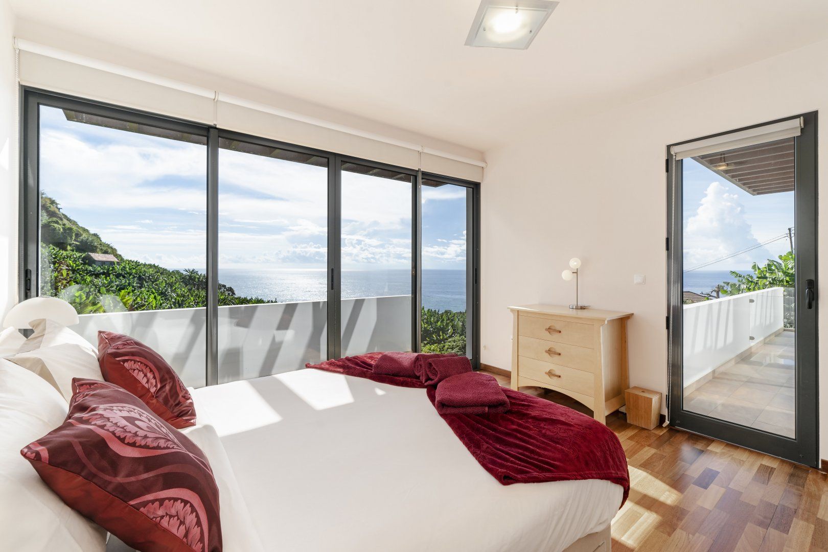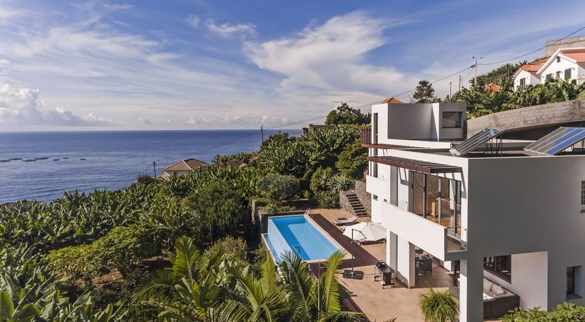 Sitting in a peaceful spot amidst leafy banana trees, this stunning contemporary villa is a great option for a Madeira seaside stay. This home is nestled on the side of a hill that sits above sea level and has some jaw-dropping panoramic views of the gorgeous ocean below. Here, you’re less than a five-minute drive from Calheta and its stunning man-made golden beaches.