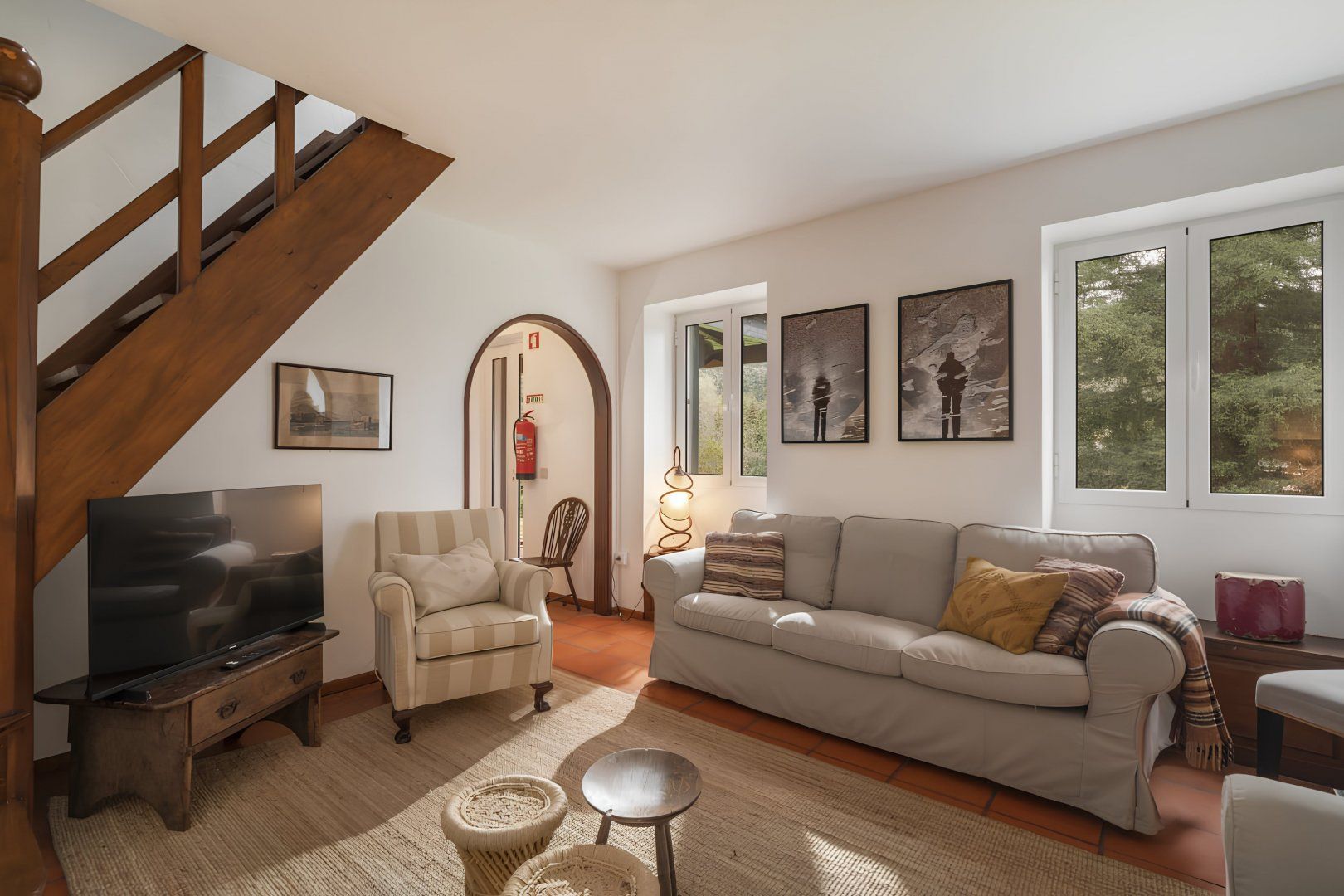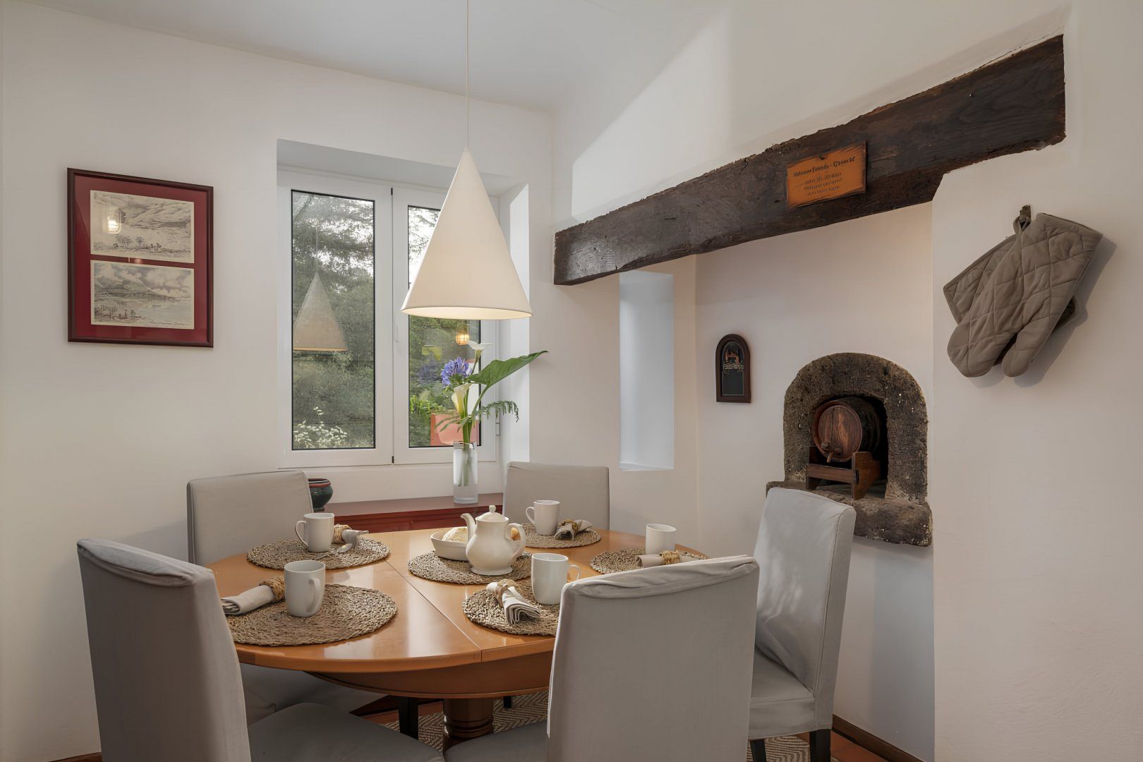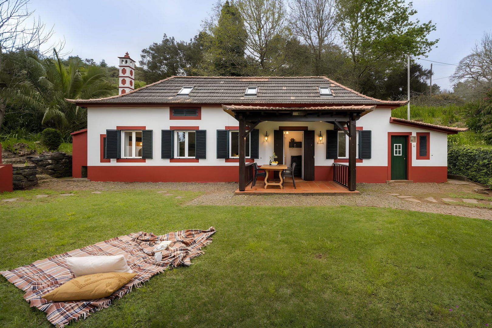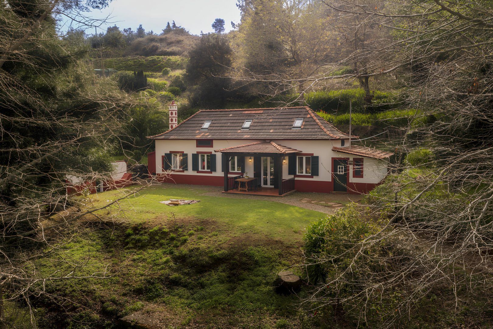 Set within a farm surrounded by lush Madeiran countryside in Vale Paraíso, this home has a secluded location, so it’s an ideal rural retreat. Inside, you’ll find character features such as an open fireplace and a wood-burning oven, while outside, there are tree-flanked lawns and woodland paths to enjoy. If you have young children with you, they may need to be supervised, as the lawn does slope away, and some of the paths are rustic and uneven. Despite all this tranquillity, Funchal is only twenty minutes away by car. Or explore the nearby village of Camacha, a four-minute drive, where you’ll find supermarkets, bars, and restaurants.