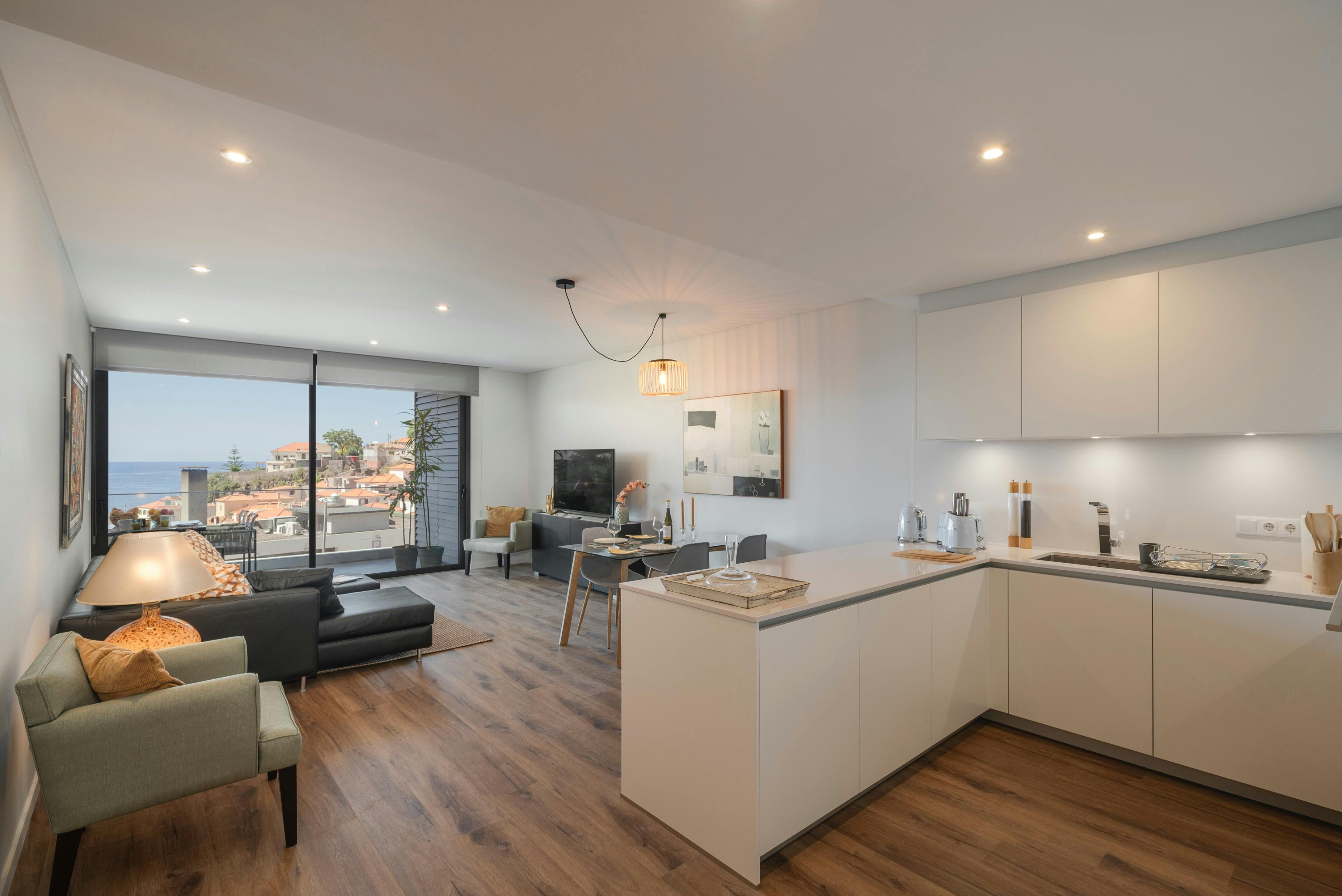 With breathtaking panoramic views of the picturesque fishing village of Câmara de Lobos, this brand-new 2 bedroom apartment offers an unforgettable holiday experience. Immerse yourself in the vibrant local culture and enjoy the famous 'poncha' drink while taking in the stunning surroundings. The apartment boasts a spacious open-plan living area, fully equipped kitchen with modern appliances, and a full-length balcony overlooking the bay. Revel in the charm and tranquility of your private escape, complete with air conditioning, rooftop swimming pool, fitness room, and secure parking. Explore the narrow winding streets, indulge in delicious cuisine at local restaurants, and take leisurely walks along the seaside promenade to Funchal. Whether you're seeking relaxation or adventure, Bayside Bliss provides an idyllic seaside retreat for an unforgettable vacation.