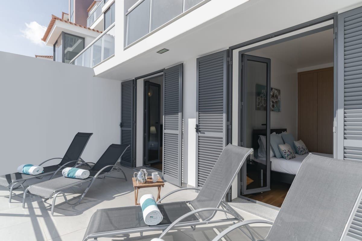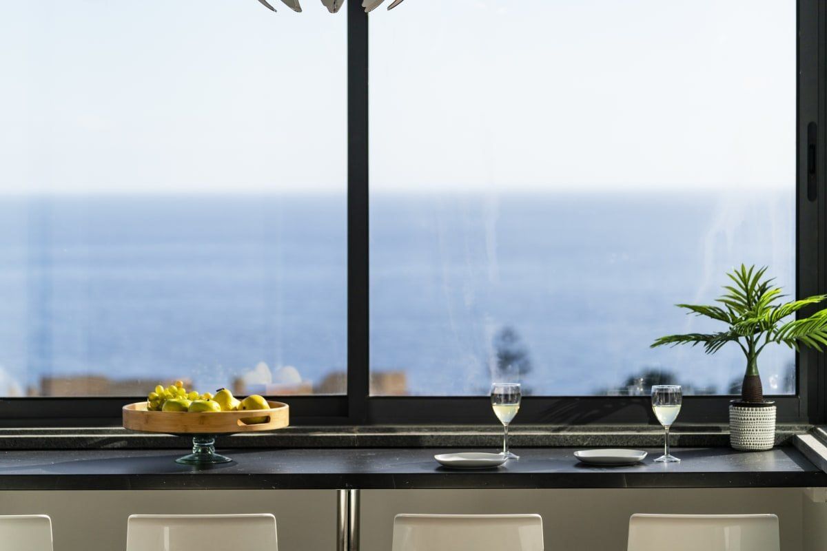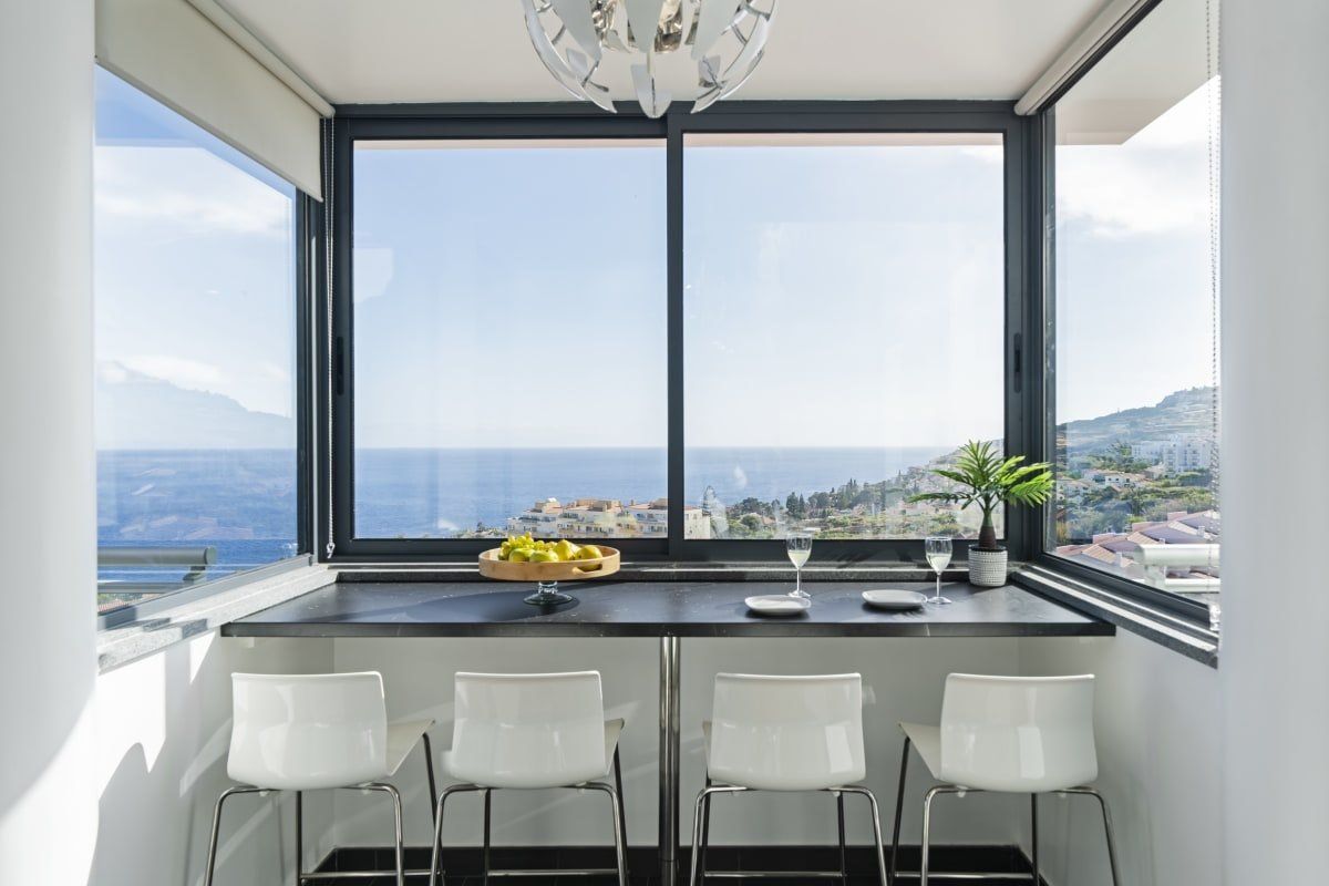 It's been said that this modern apartment near Caniço has one of the best views in this part of the island – and we can quite see why. Bright, spacious and thoughtfully designed, it's a perfect choice if you're keen to stay in a quieter area on the coast, but still within easy reach of Funchal. Just fifteen minutes from the airport, it's got everything you need – from super comfy beds and a parking space to a shared outdoor pool. And vistas like these deserve a balcony so you'll be pleased to hear there's not one but two here. One is reached via one of the bedrooms and is the perfect spot for sunbathing, while the other is set up for dining alfresco. Even the kitchen manages to look out over the ocean, so a breakfast bar has been cleverly built into a nook with windows to three sides – just imagine sitting here with your morning cup of coffee. It's just a short walk or a five-minute drive into the centre of Caniço, with all its shops and restaurants, and roughly the same to Reis Magos Beach.