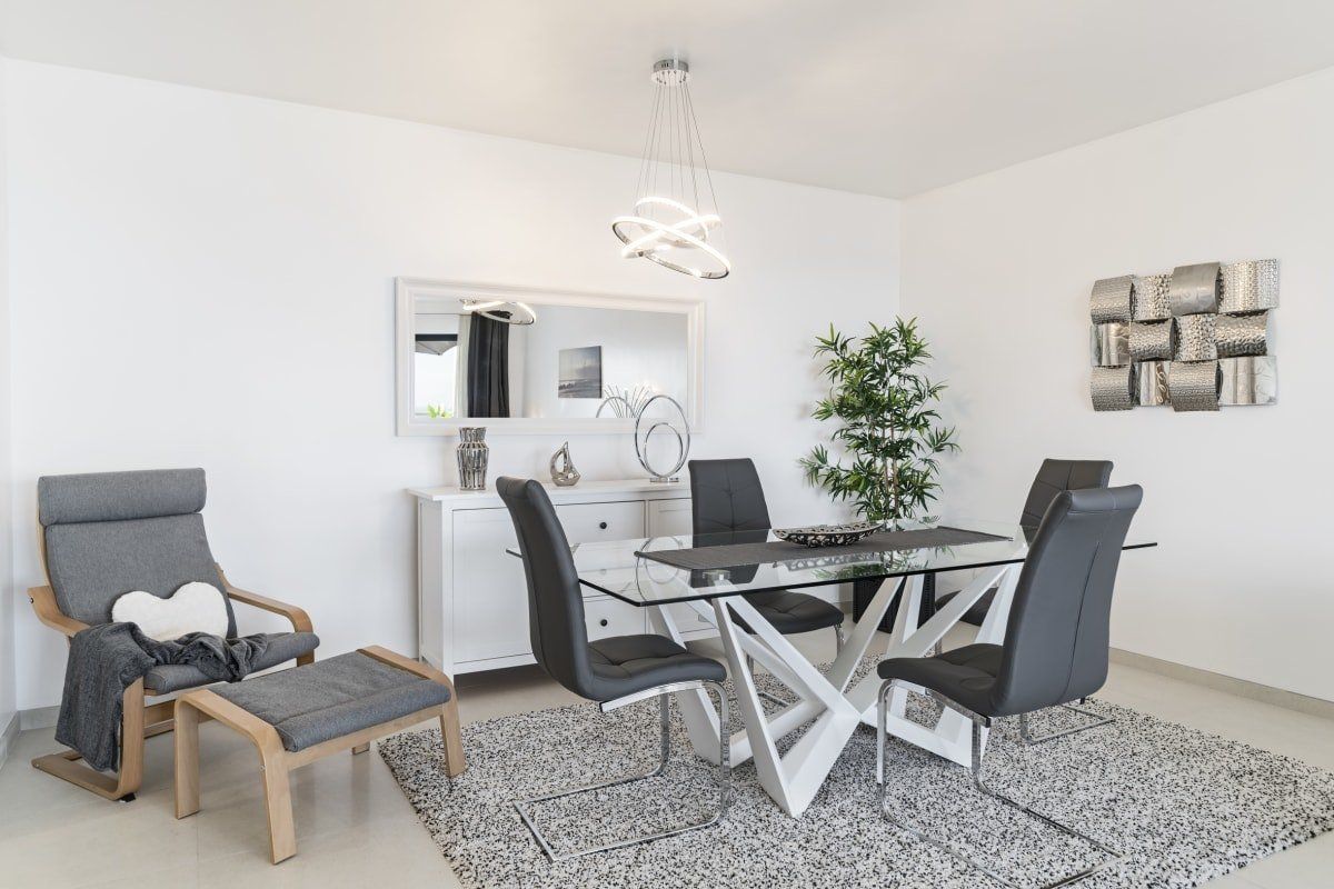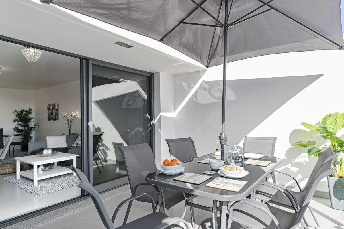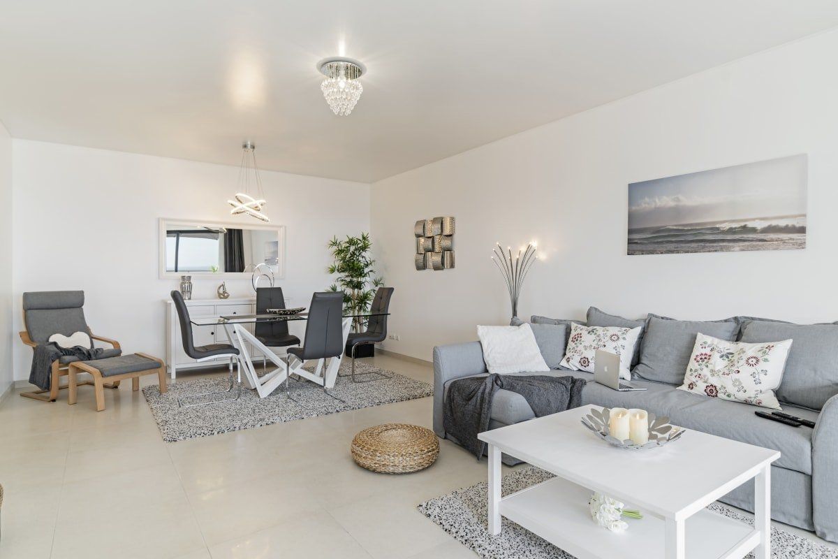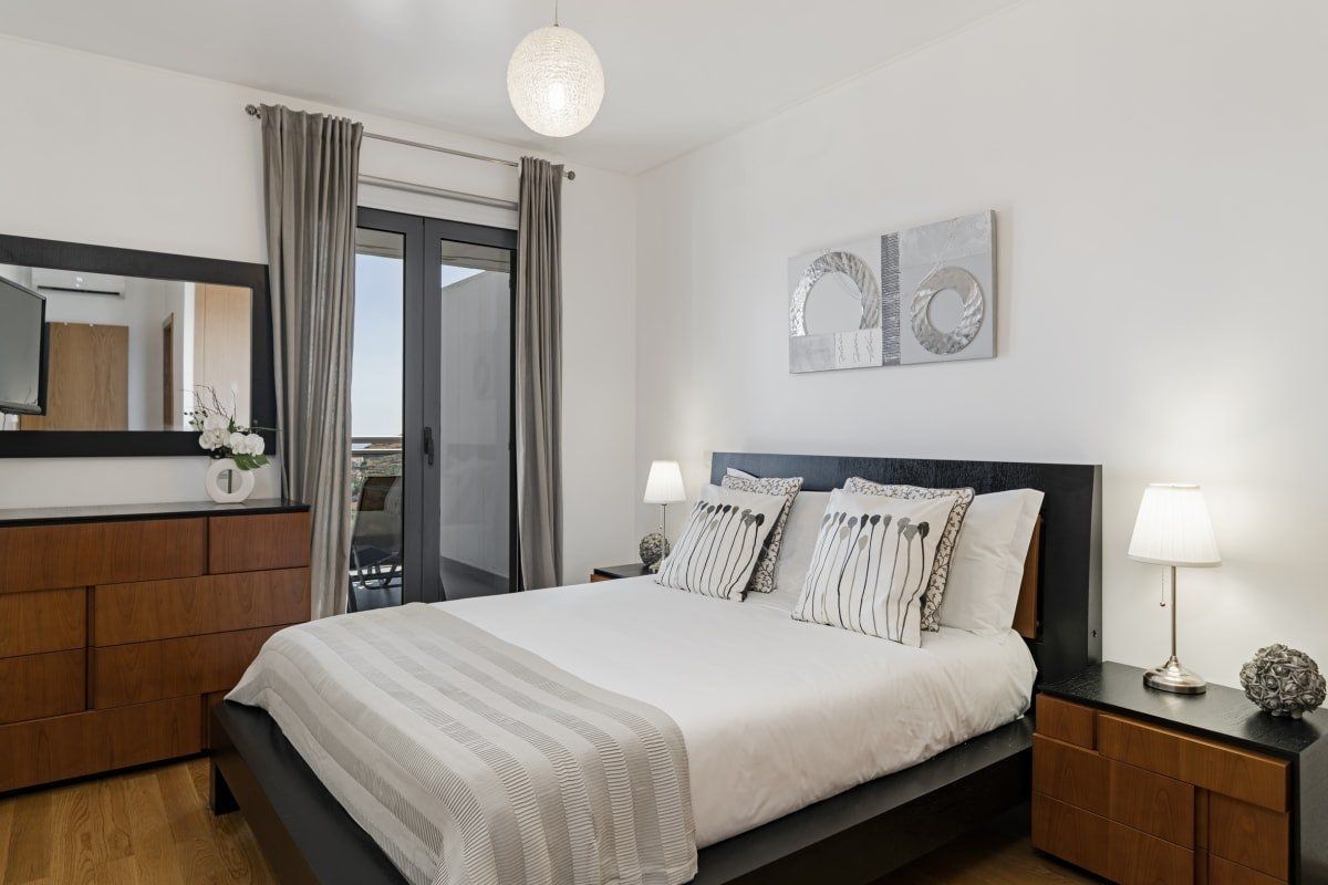 It's been said that this modern apartment near Caniço has one of the best views in this part of the island – and we can quite see why. Bright, spacious and thoughtfully designed, it's a perfect choice if you're keen to stay in a quieter area on the coast, but still within easy reach of Funchal. Just fifteen minutes from the airport, it's got everything you need – from super comfy beds and a parking space to a shared outdoor pool. And vistas like these deserve a balcony so you'll be pleased to hear there's not one but two here. One is reached via one of the bedrooms and is the perfect spot for sunbathing, while the other is set up for dining alfresco. Even the kitchen manages to look out over the ocean, so a breakfast bar has been cleverly built into a nook with windows to three sides – just imagine sitting here with your morning cup of coffee. It's just a short walk or a five-minute drive into the centre of Caniço, with all its shops and restaurants, and roughly the same to Reis Magos Beach.