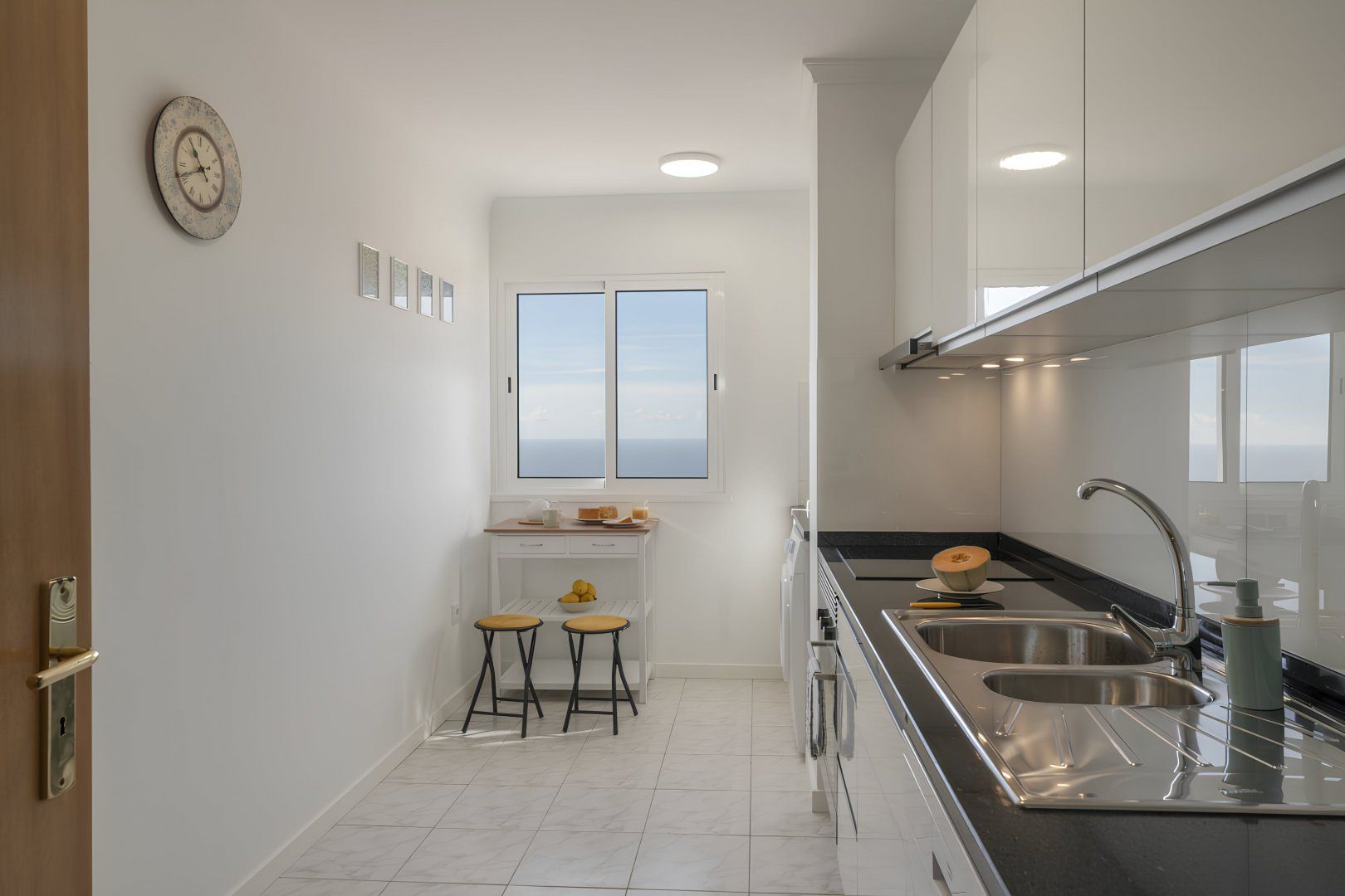 Check out the Atlantic Ocean views from this apartment – they are beautiful. You can enjoy them from the private balcony and most rooms in this home. If you are looking to accommodate five people here, the single bed converts into a double, and there’s a double sofa bed in the living room, but we’d say that it’s only suitable for one adult or two children. There’s a garage here, too, with an allocated parking space, which is handy as Funchal is a ten-minute drive (there’s a bus stop a seven-minute walk from the apartment too). Or explore this home’s neighbourhood, Garajau, with its restaurants, beach and the Garajau Partial Nature Reserve where you can enjoy diving and snorkelling.