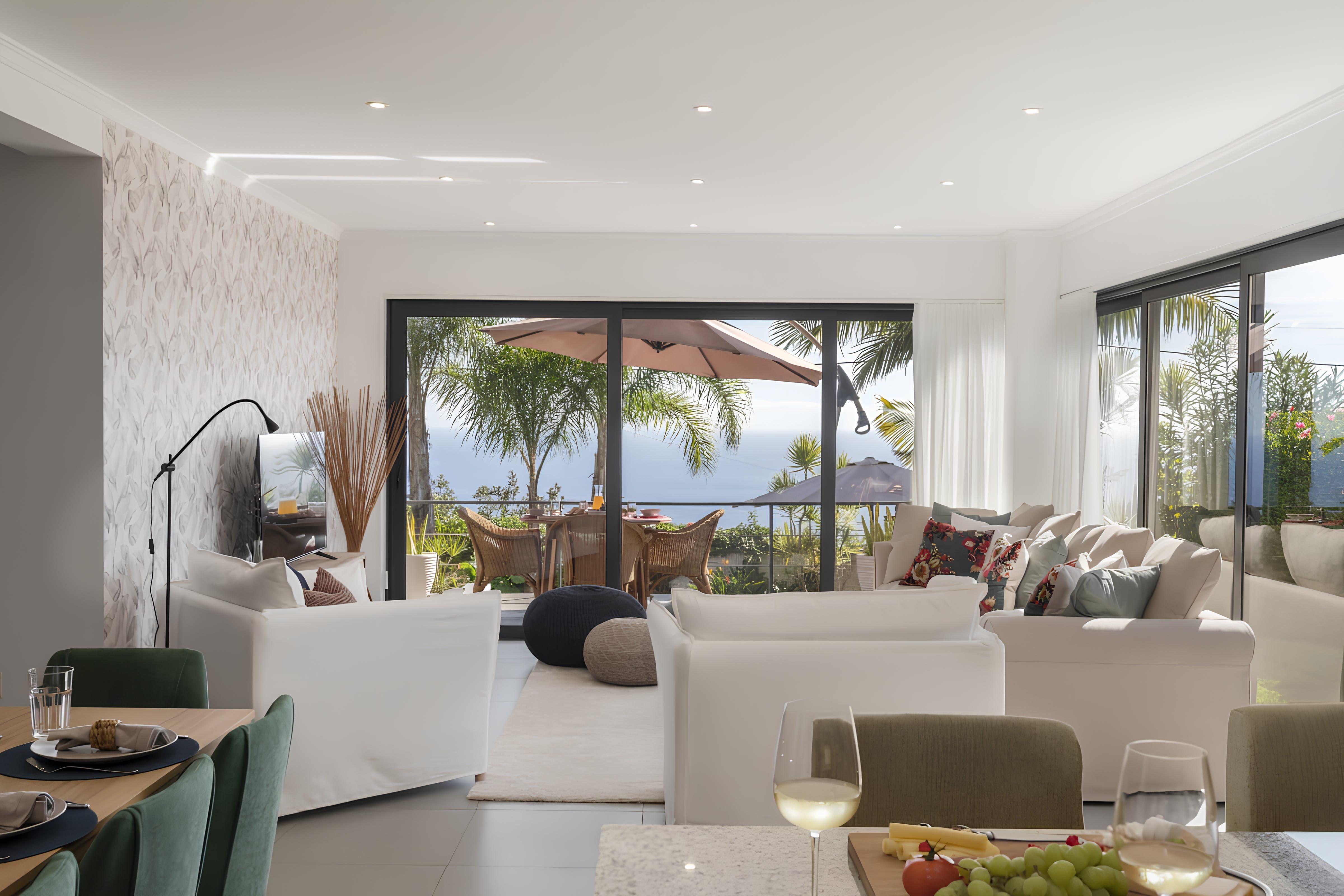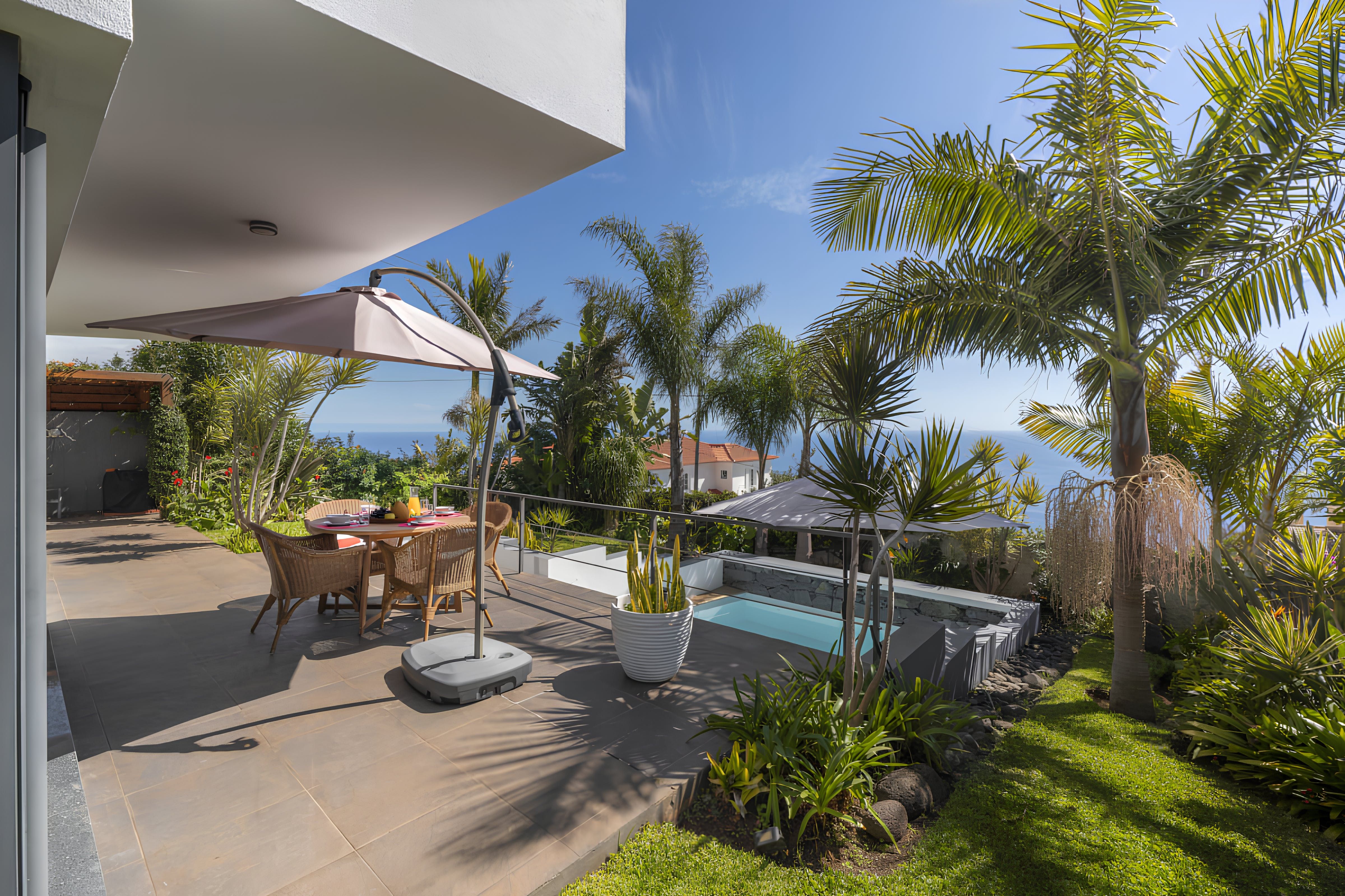 This 4-bedroom villa is a modern and refined property, perfect for a family seeking a comfortable and peaceful holiday. It boasts a cozy atmosphere with all the necessary amenities for relaxation, including a semi-tropical garden, outdoor dining area, and small swimming pool. The villa has two floors, with the fully equipped kitchen, dining room, and living area on the ground floor. The first floor has 3 bedrooms and 1 shared bathroom. The property can accommodate up to 10 guests comfortably. The villa is located in Estreito da Calheta on the west side of Madeira Island, offering unobstructed sea views and serene sunsets. Essential services such as supermarkets, cafes, and pharmacies are available nearby. The property also provides Wi-Fi in all areas of the house and private parking for 2 cars. Guests are required to present a valid ID upon arrival, check-in hours must be scheduled in advance, and no parties or pets are allowed on the property.