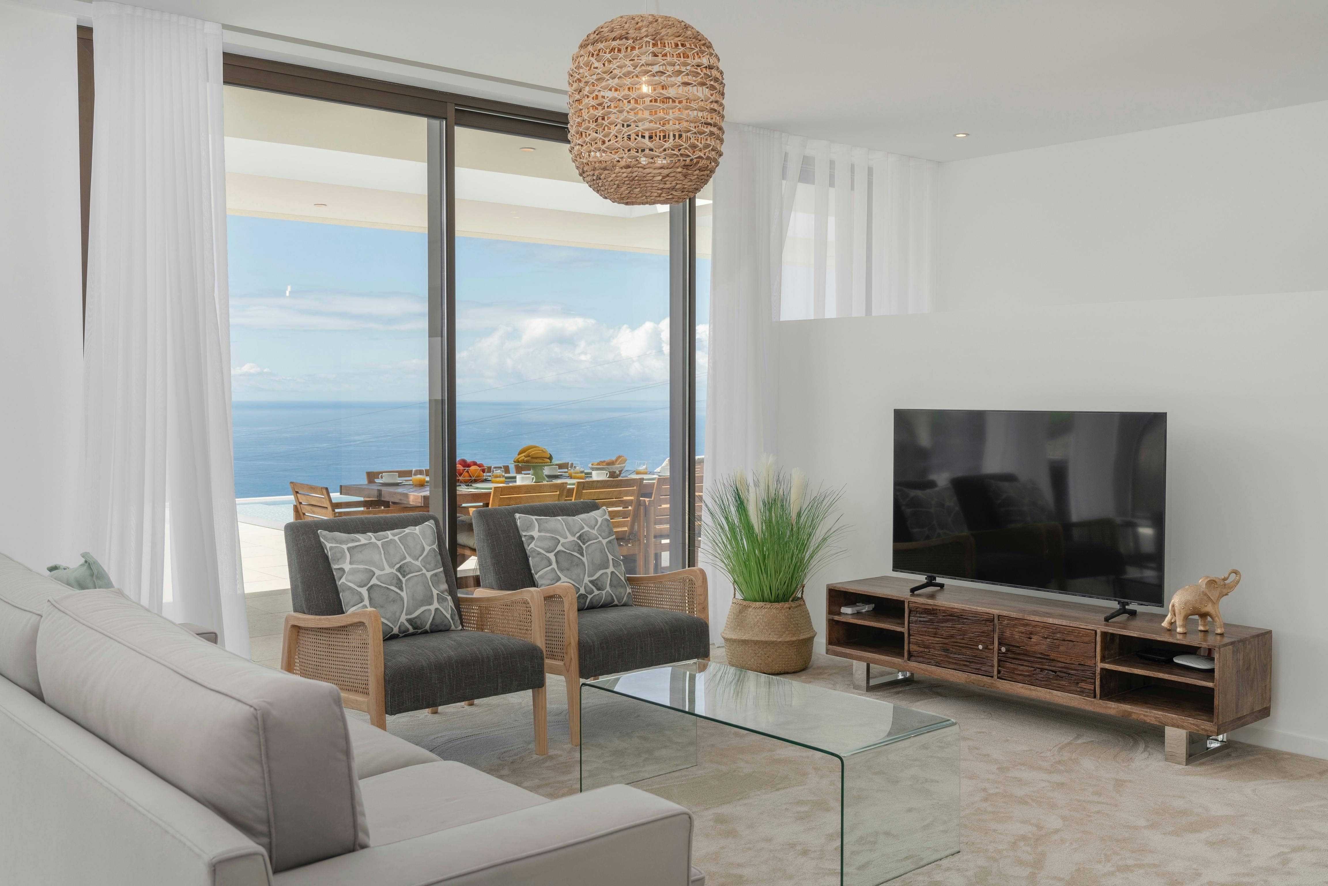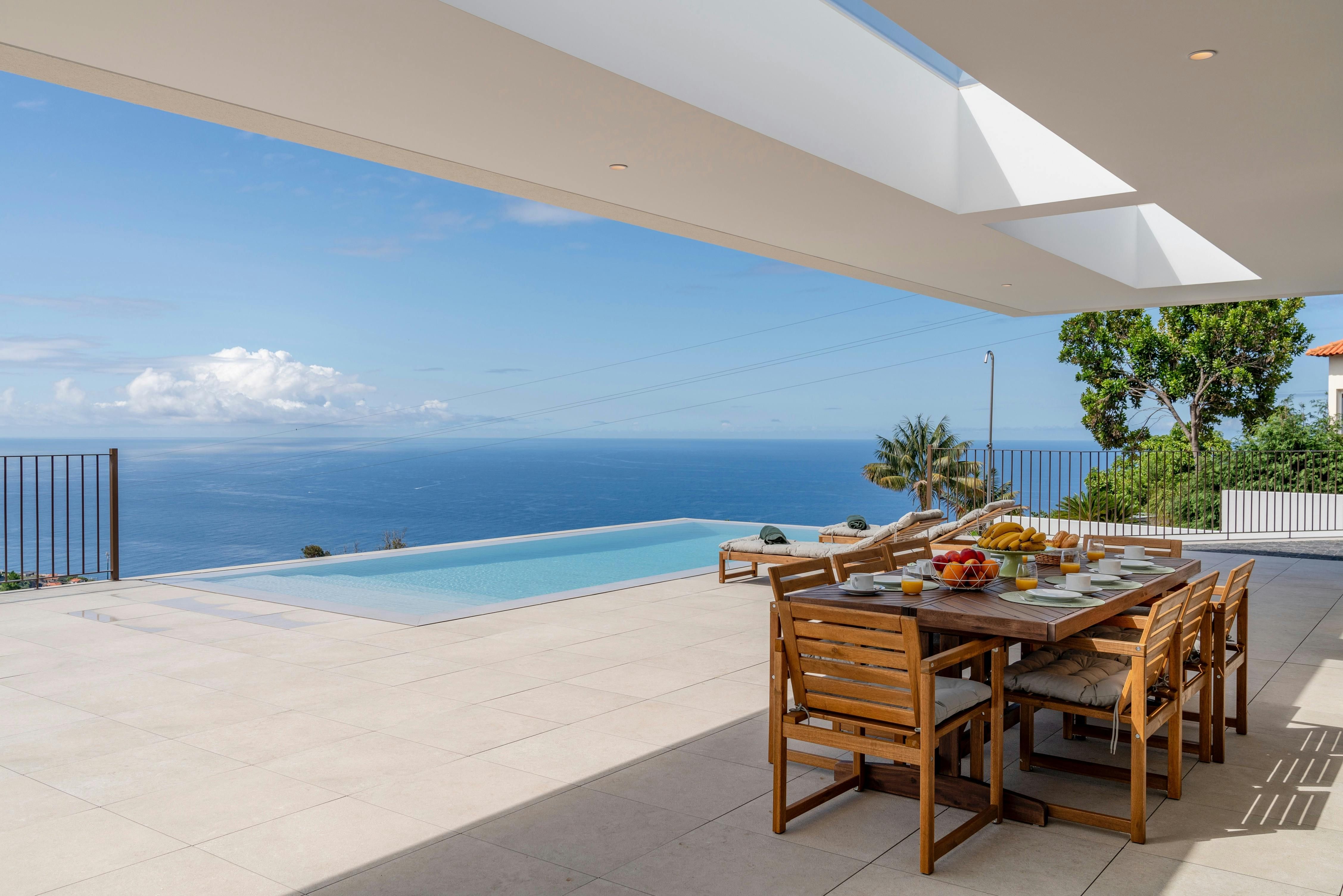 This coastal Madeira villa serves up breathtaking sea views from just about everywhere – whether you’re swimming in the infinity pool, dining on the terrace, or even prepping meals in the kitchen. The glass doors slide wide open so you can breeze in and out all day, and there's a barbecue to fire up for long, alfresco lunches by the pool. When you’re ready to explore, there’s a minimarket and cafe just a short stroll away, and the beach resort of Calheta is a five-minute drive – here you'll find coastal hikes, sandy beaches, and sunset cocktails at the beach bars.