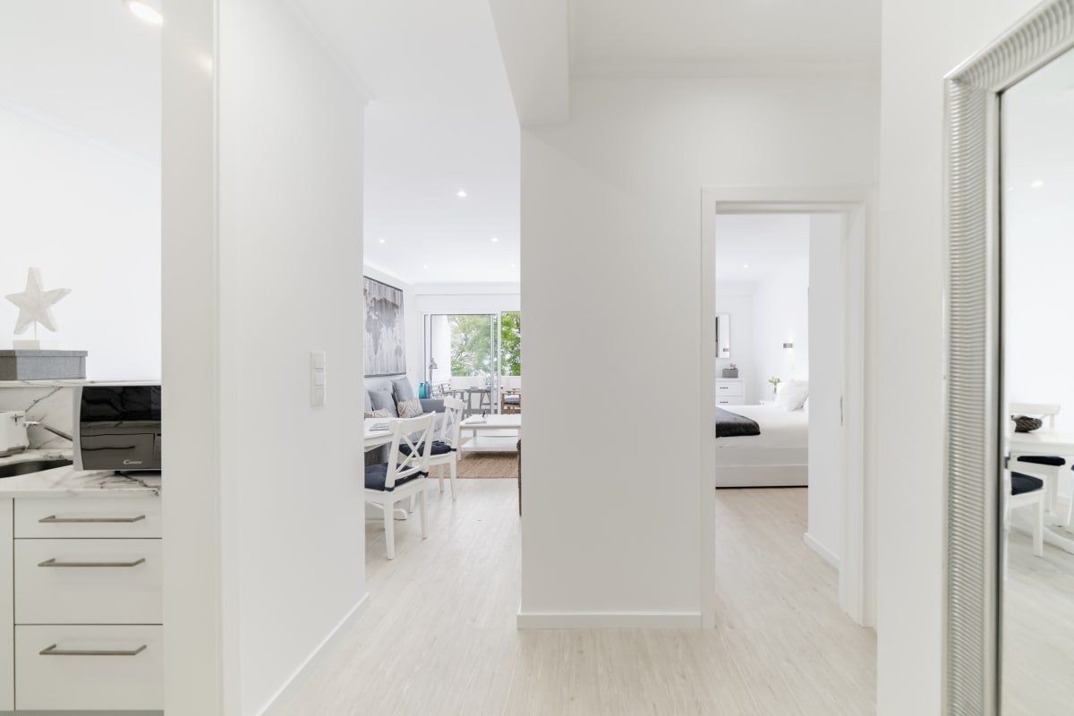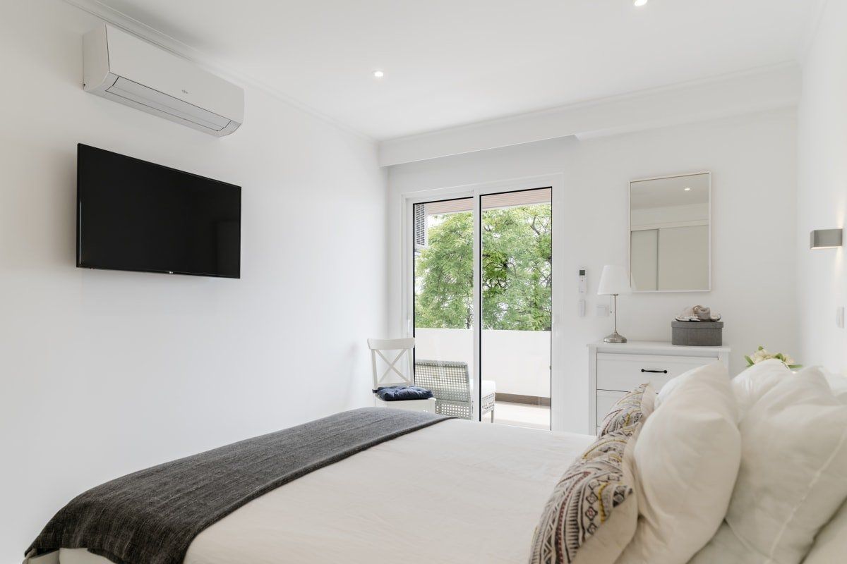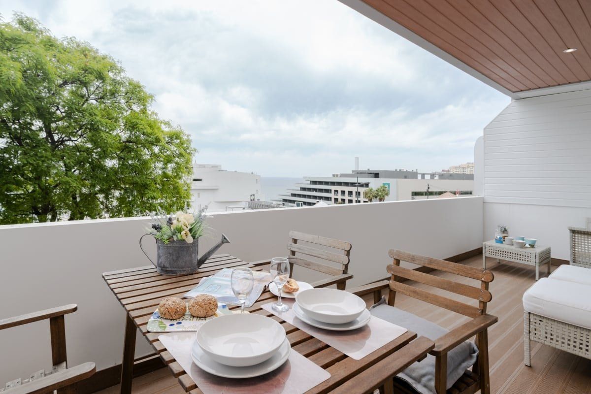 Bright, modern and centrally located in the heart of Funchal, this comfortable flat has everything you need for a relaxing stay in Madeira’s capital city. With its atlas-inspired artwork, white walls and large private balcony, you’ll feel a spark of adventure from the moment you enter this home. Greet the day with breakfast on the balcony, framed by the neighbourhood’s leafy trees and a clear view of the ocean beyond. Then, set out to explore the city – wander around the waterfront, stroll through the botanical garden and sample Madeira wine in one of the countless bars and cellars. The Lido Bathing Complex with its saltwater pools and access to the ocean is also less than a ten-minute walk away. After a day of seeing the sights, come back home for sunset drinks on the balcony's sofa before enjoying a meal at home. Alternatively, head out to discover Funchal’s stellar food scene. At the end of the night, retreat to your bedroom and slide open the patio door to fall asleep to the gentle ocean breeze.