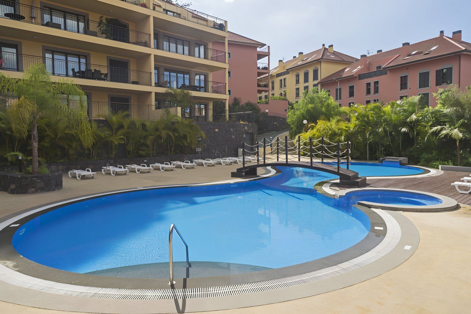 Not only is this home a five-minute walk from the heart of Funchal, but it’s also within fifteen minutes of the Lavradores Market and the cathedral. As with many locations in Madeira, this place is on a hill, so expect a climb back home (or you could just get a cab). It’s worth it, though, as this apartment has a shared pool and gym. But the pool terrace is not the only outdoor space – this home has a private balcony overlooking lush greenery too. Your host even provides a tablet for accessing the internet.