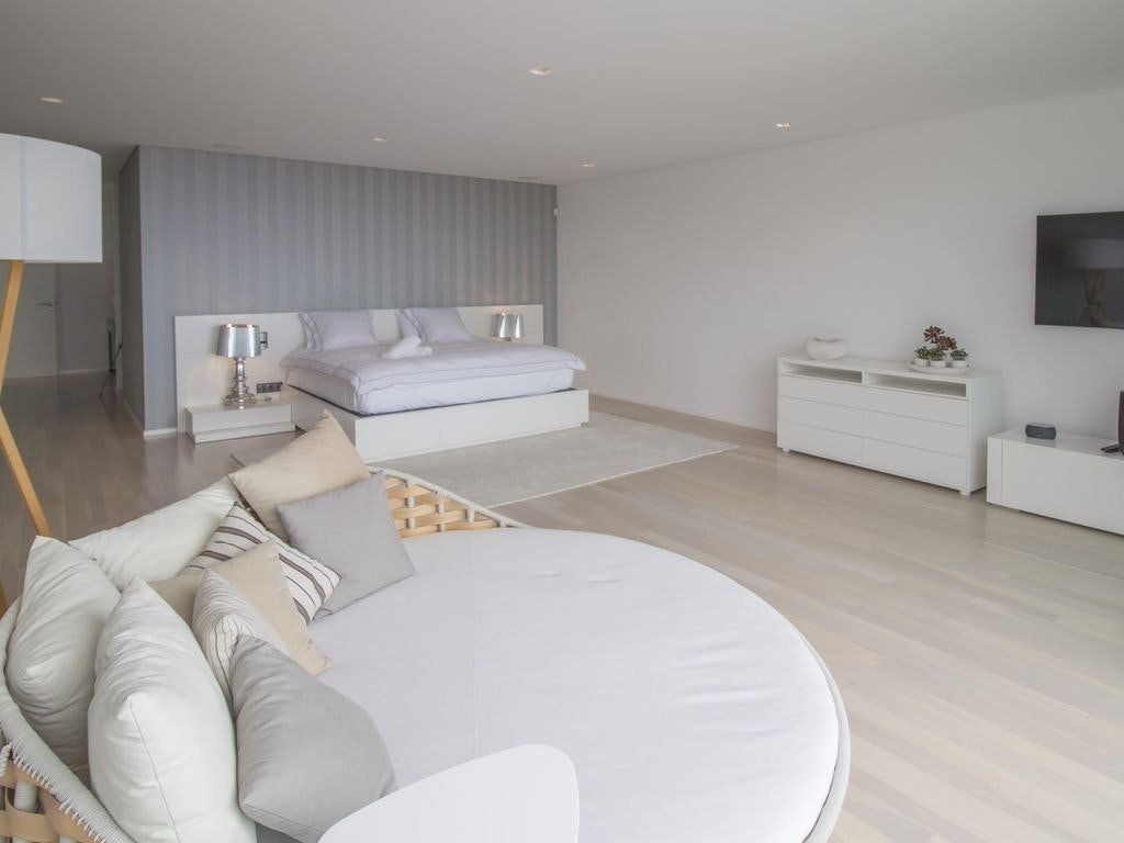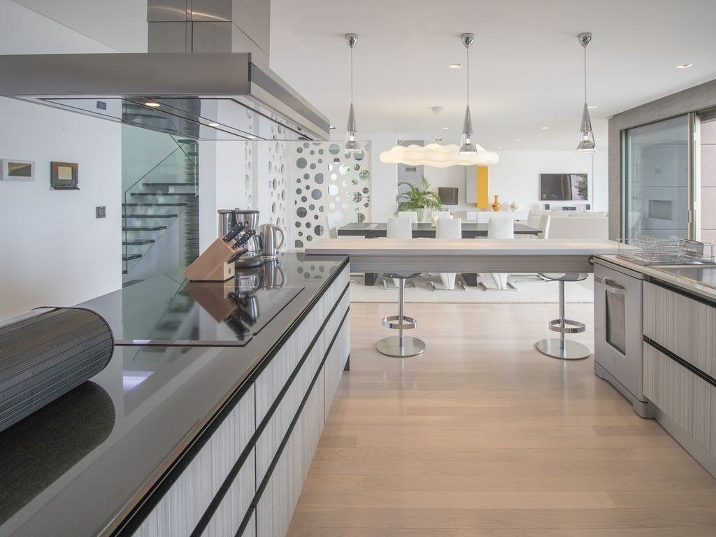 We adore this contemporary home due to the unique characteristics sprinkled throughout. Spacious and drenched in sunlight, imagine yourself cooking an all-day breakfast in the kitchen. While looking through the circular window to the amazing view outside, you spot your children having fun by the pool, excited for the day ahead. The breakfast bar is also the perfect spot to chow down. Heading upstairs, you'll find the three bedrooms all have direct access to the balcony, allowing you to breathe in the fresh air and admire the surrounding vista.
