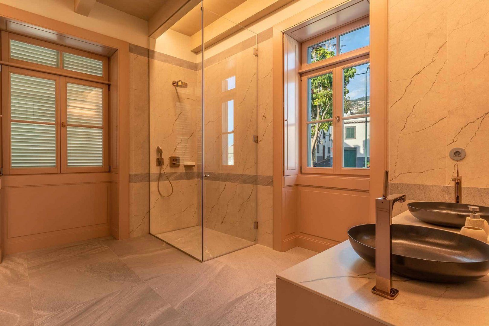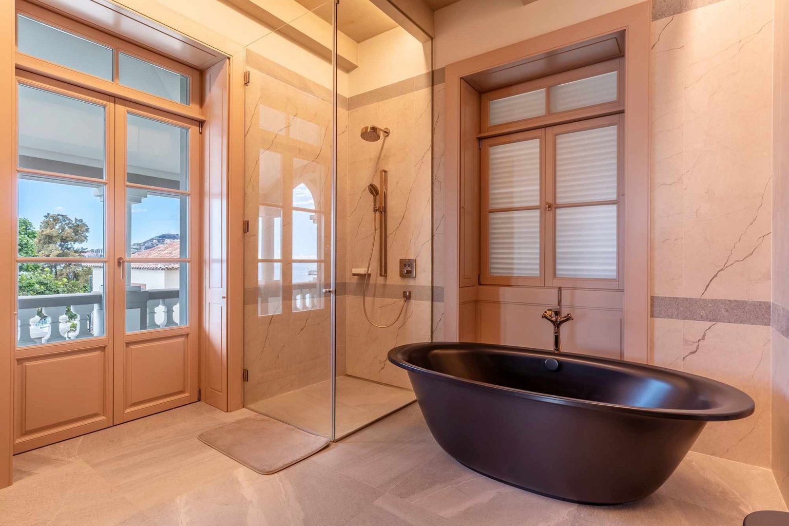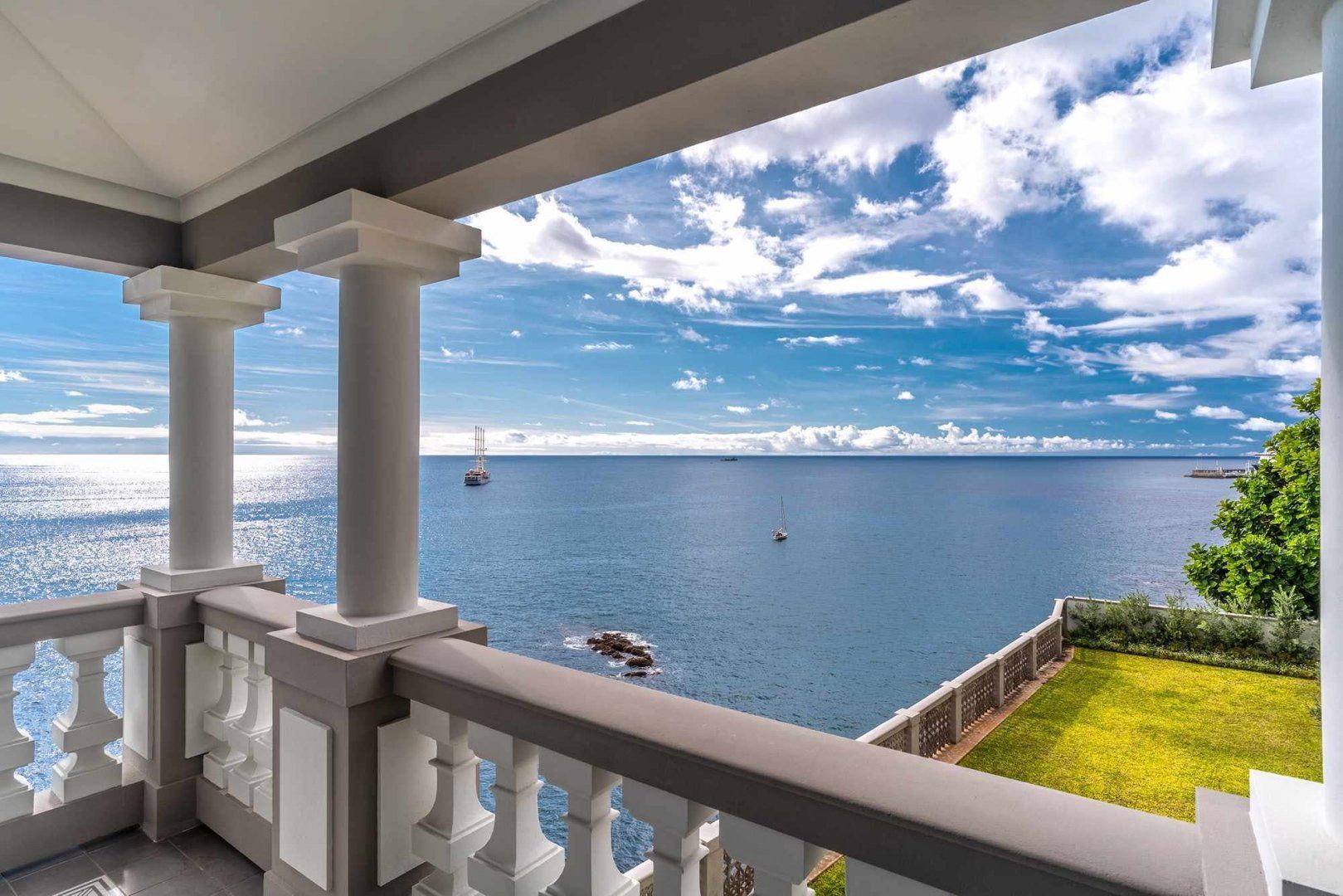 Inside, wonderful artwork selections and finishing touches create an atmospheric space dripping in antique Madeiran elegance. The home's central hub extends upwards with two-story ceilings and a large salon – perfect for hosting receptions or social affairs. Meanwhile, marble archways lead out to the wrap-around balcony, which frames the spectacular seascape like a painting on the wall. Each bedroom and bathroom suite provides guests with blissful privacy and the opportunity for moments of solitude when needed.