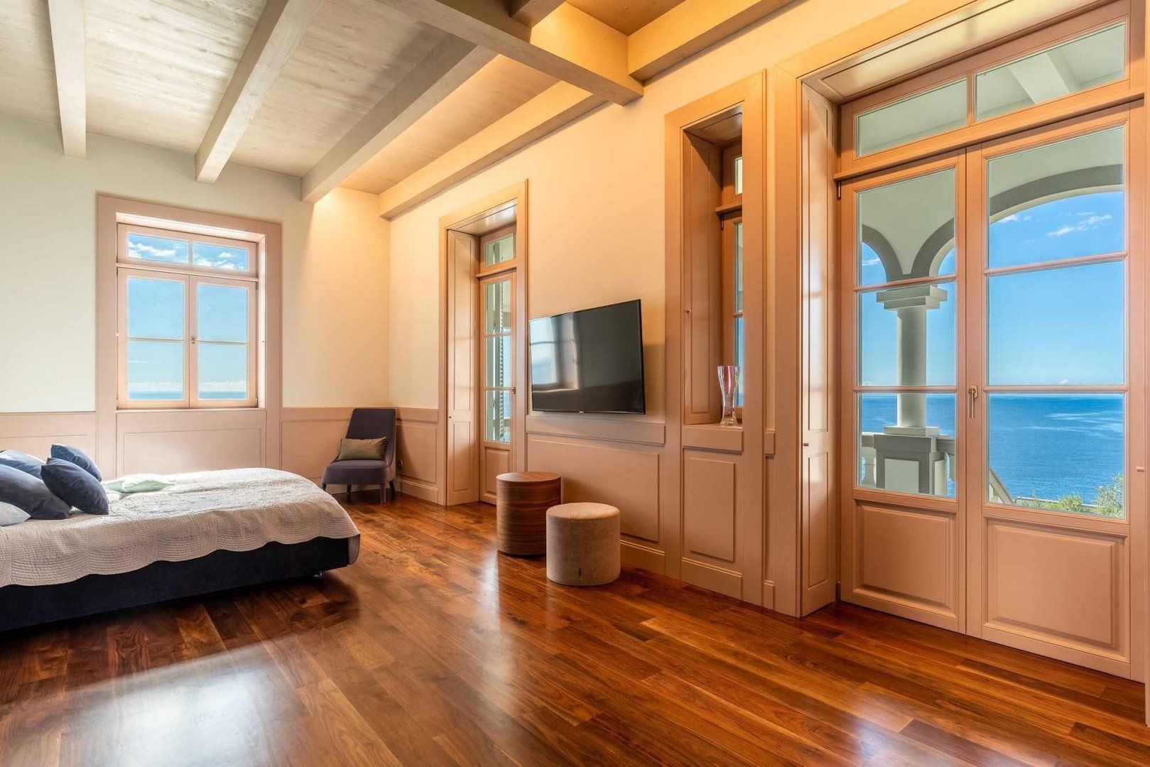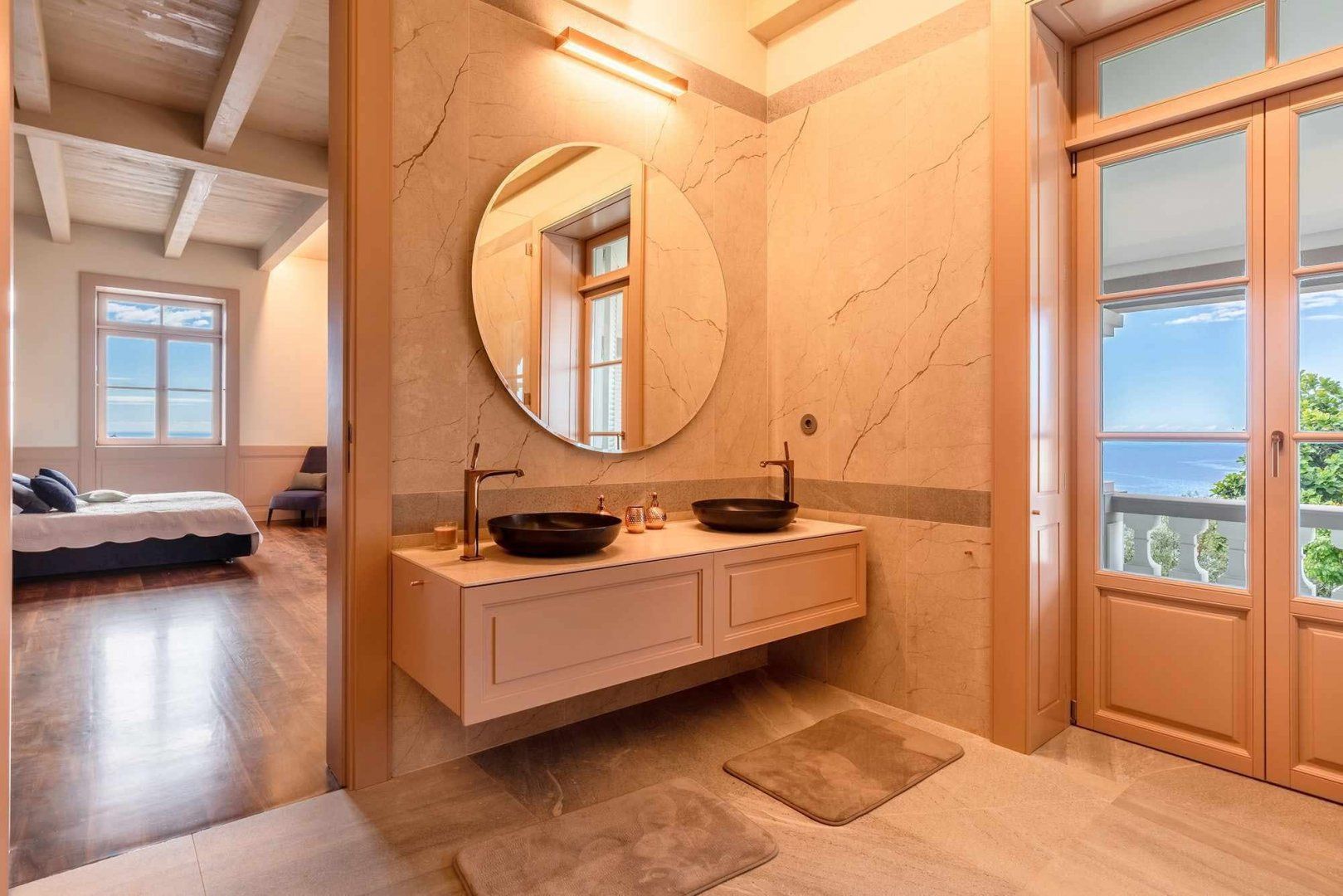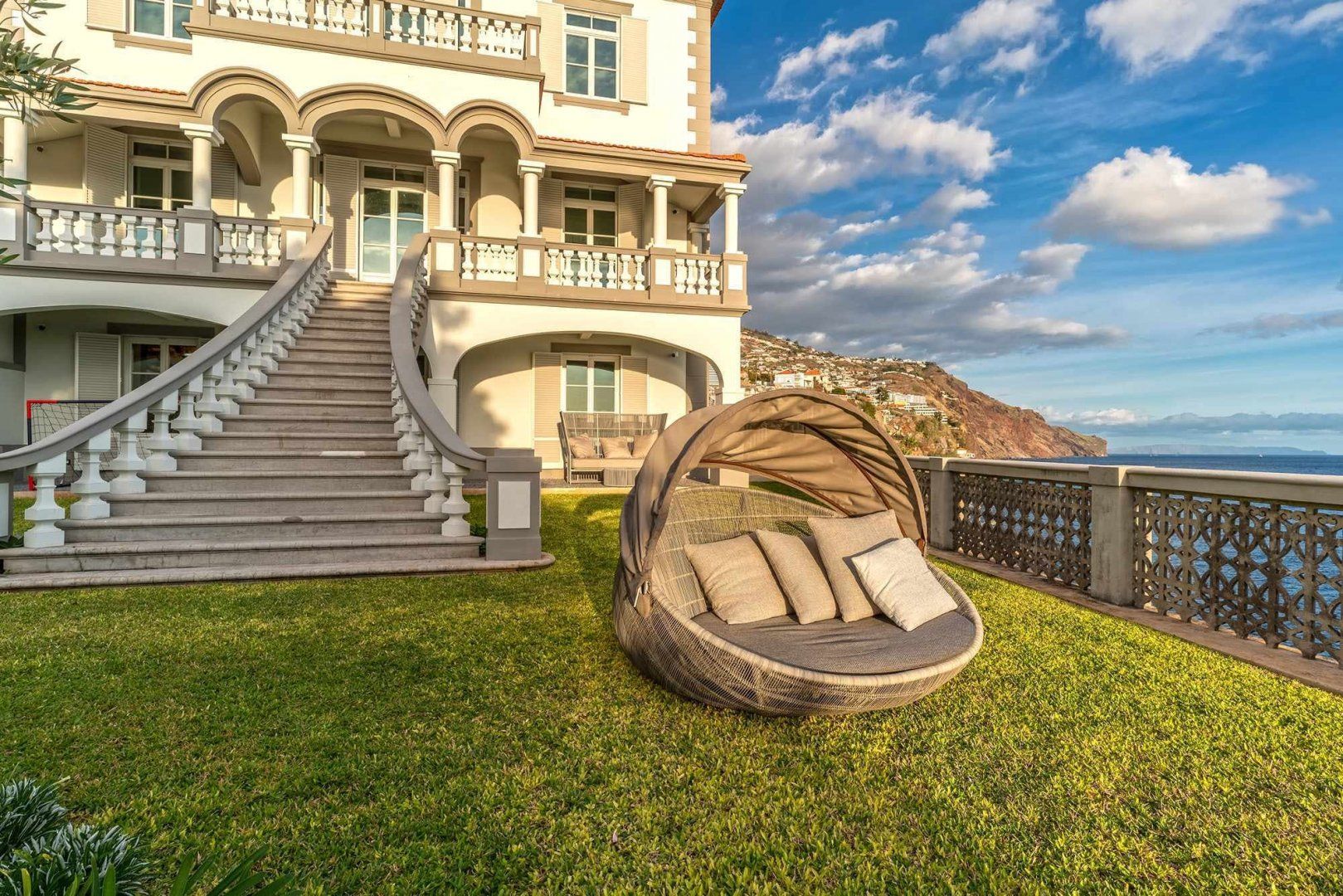 Inside, wonderful artwork selections and finishing touches create an atmospheric space dripping in antique Madeiran elegance. The home's central hub extends upwards with two-story ceilings and a large salon – perfect for hosting receptions or social affairs. Meanwhile, marble archways lead out to the wrap-around balcony, which frames the spectacular seascape like a painting on the wall. Each bedroom and bathroom suite provides guests with blissful privacy and the opportunity for moments of solitude when needed.
