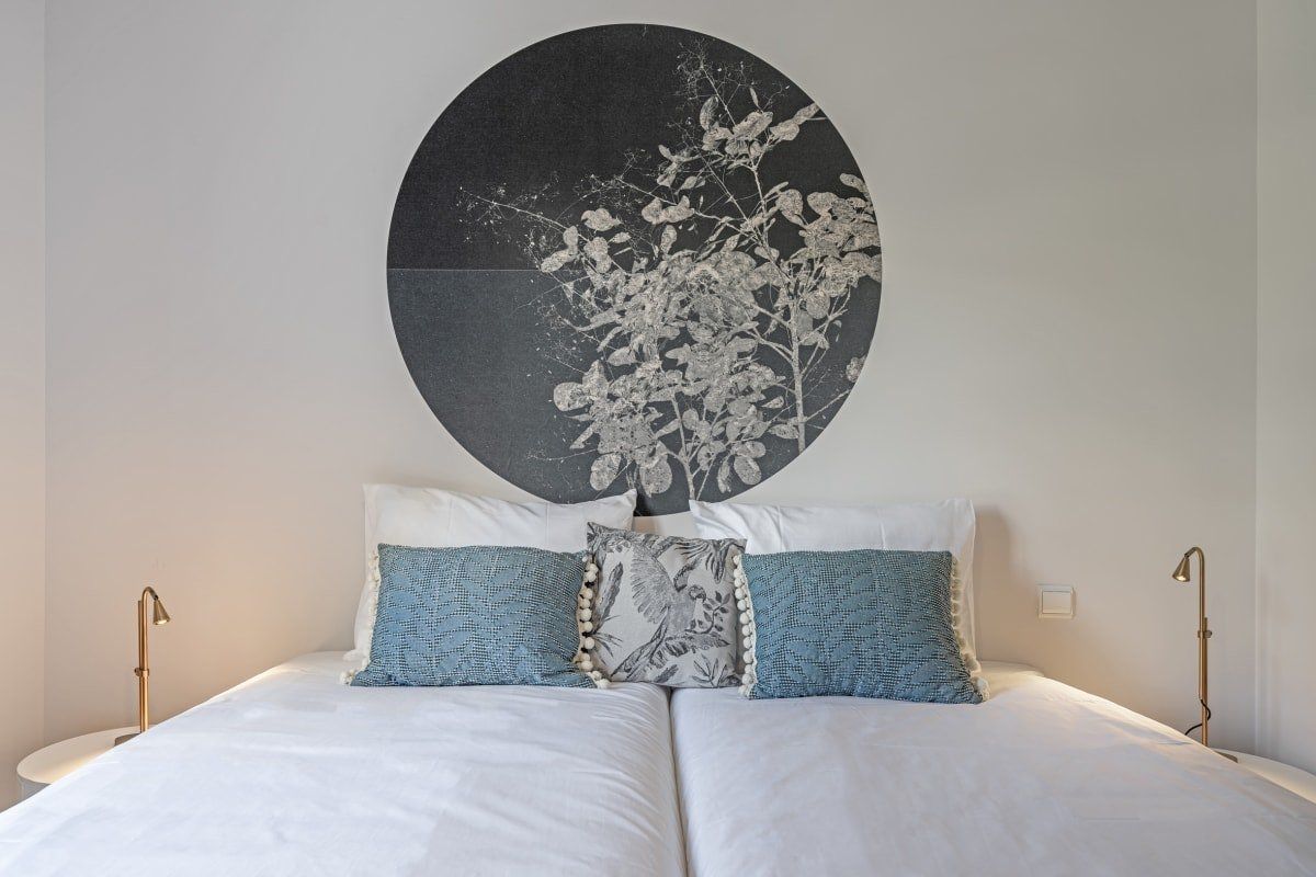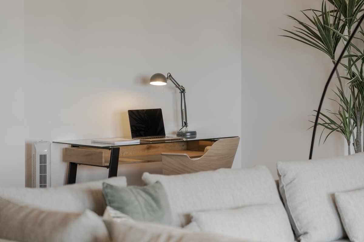 Sitting in a gated community, with everything angled towards the sea, you'll have a furnished terrace to sit and enjoy your morning coffee and early-afternoon cocktails. And to get the best out of the balcony, all-glass patio doors slide open to invite the warm weather and natural sunlight into the calm living area. Bright and modern, with a huge modular sofa, colourful artwork and stylish lighting, it's a great place to unwind. There's even a dedicated desk space for those working from home during their stay.