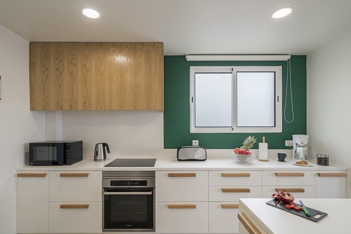Chances are you'll make a beeline straight for the outdoor spaces, and trust us when we say you'll spend most of your time here unwinding alfresco on the wicker chairs. The glimpse of the Atlantic is fantastic, and with two balconies to choose from, you'll have double the chances to relish in it. Pad out to the upper terrace first thing in the morning to enjoy your café con leche in the fresh air, then retreat to the downstairs balcony for cocktails come sunset. We also really love how breezy the sleek living space feels, while the two-floor layout ensures everyone will have enough room to spread out and get comfortable.