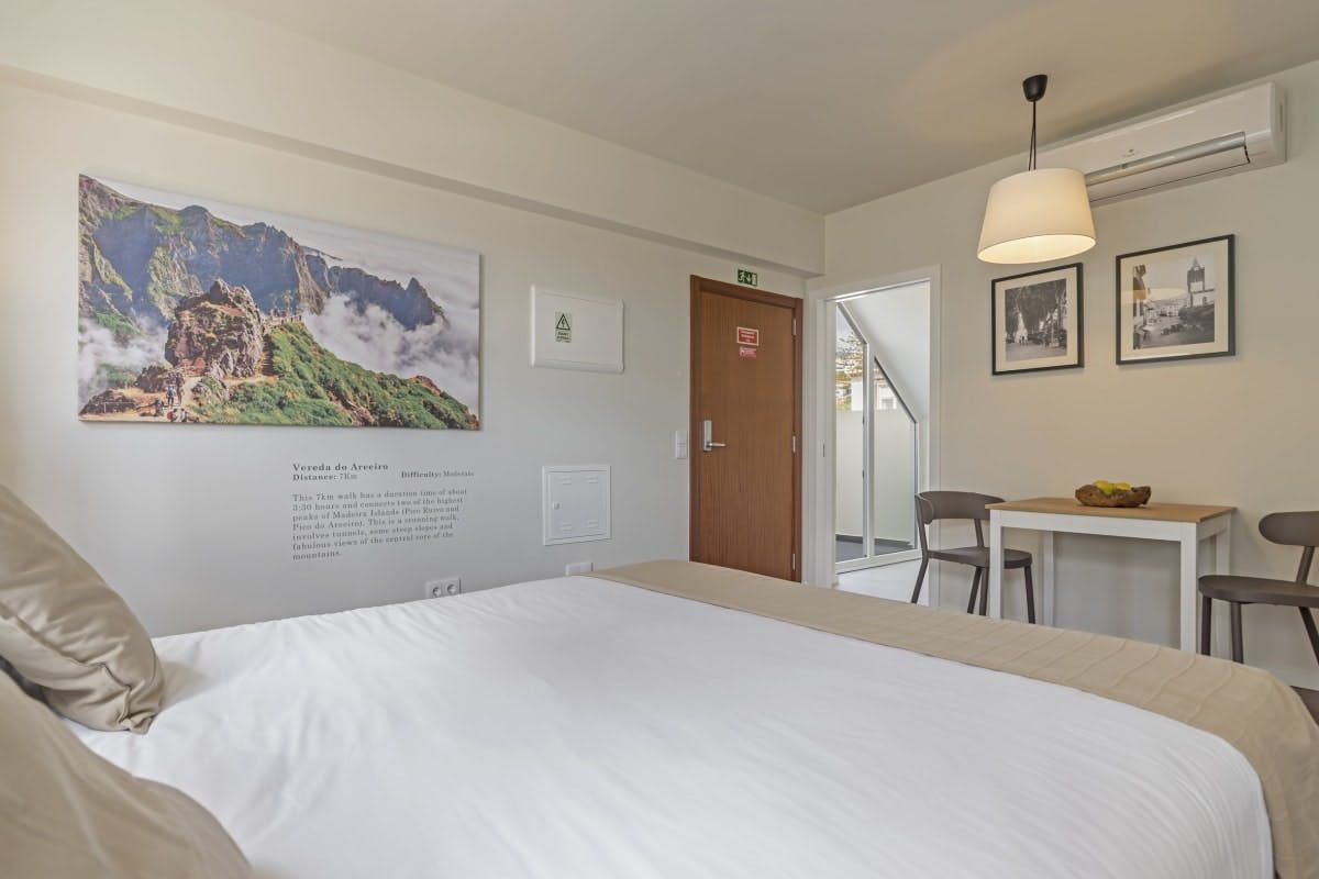 Stepping inside, you'll soon feel at ease with a cosy living area to unwind, with a fully-equipped kitchenette, a dining table that doubles up as a laptop-friendly workspace, and a sumptuous bed bathed in natural sunlight. But the real star of the show is your private terrace, complete with outdoor furniture. We can think of nothing better than enjoying a chilled glass of wine out here looking through photos and debriefing a lovely day spent in Madeira.