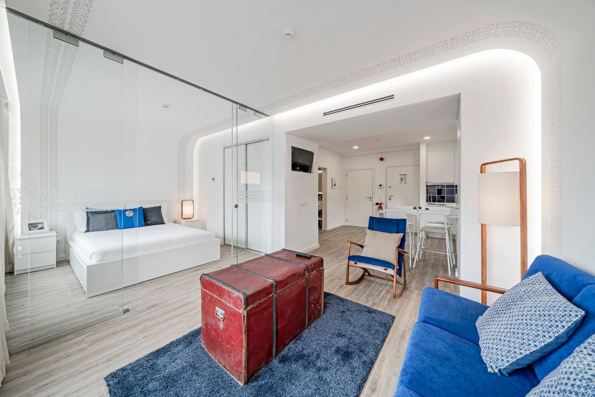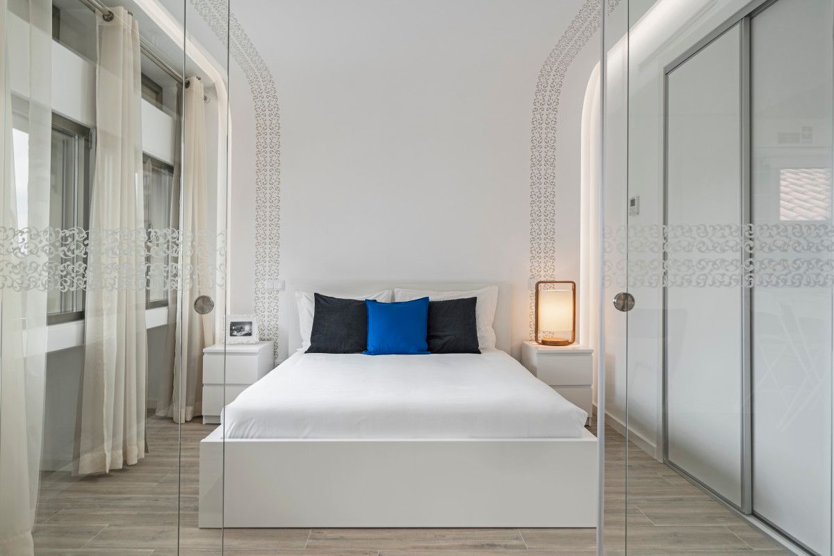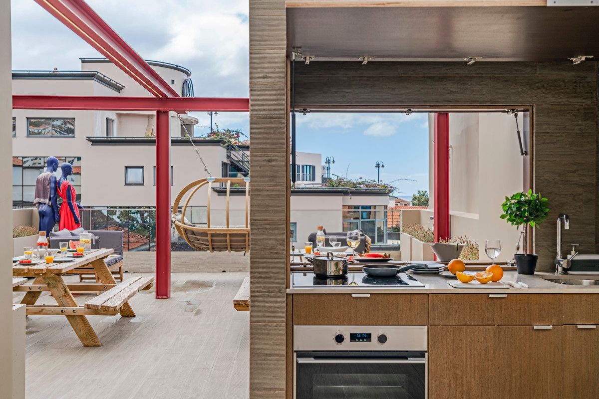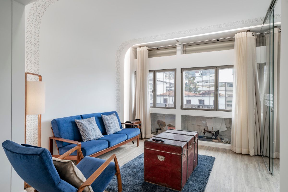 This extensive functional home puts you right in the heart of Funchal – both geographically and historically. Not only will you be bang in the centre, next to the Farmers’ Market, but your large room was constructed as part of a traditional old Madeiran embroidery factory – and mementos are profusely distributed around the property. Its past means you will have plenty of light via the tall windows and high ceilings, while the minimalist monochrome décor is calming, clean and uncluttered. Perhaps the centrepiece of this comfortable home is the communal terrace which has its own kitchen and plenty of tables and chairs for al fresco dining – plus a hanging wicker chair that seats two for a more intimate night ‘in’. Your home is the hub for touring the island, with a bus stop right outside, and all of Funchal’s many restaurants, cafes, bars and shops are reachable on foot. You’ll see this magical island fancy-free but always want to return to this comfortable, unembroidered, relaxing base.