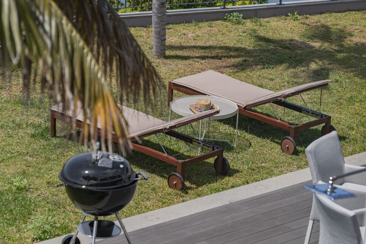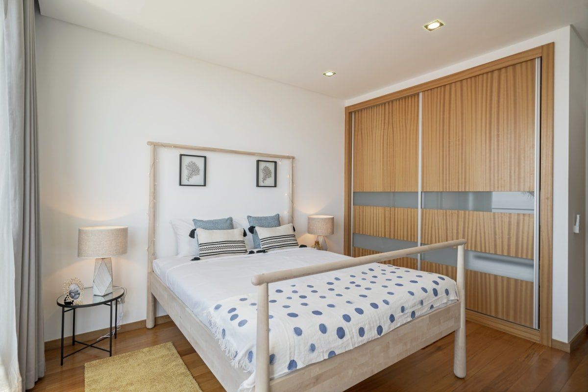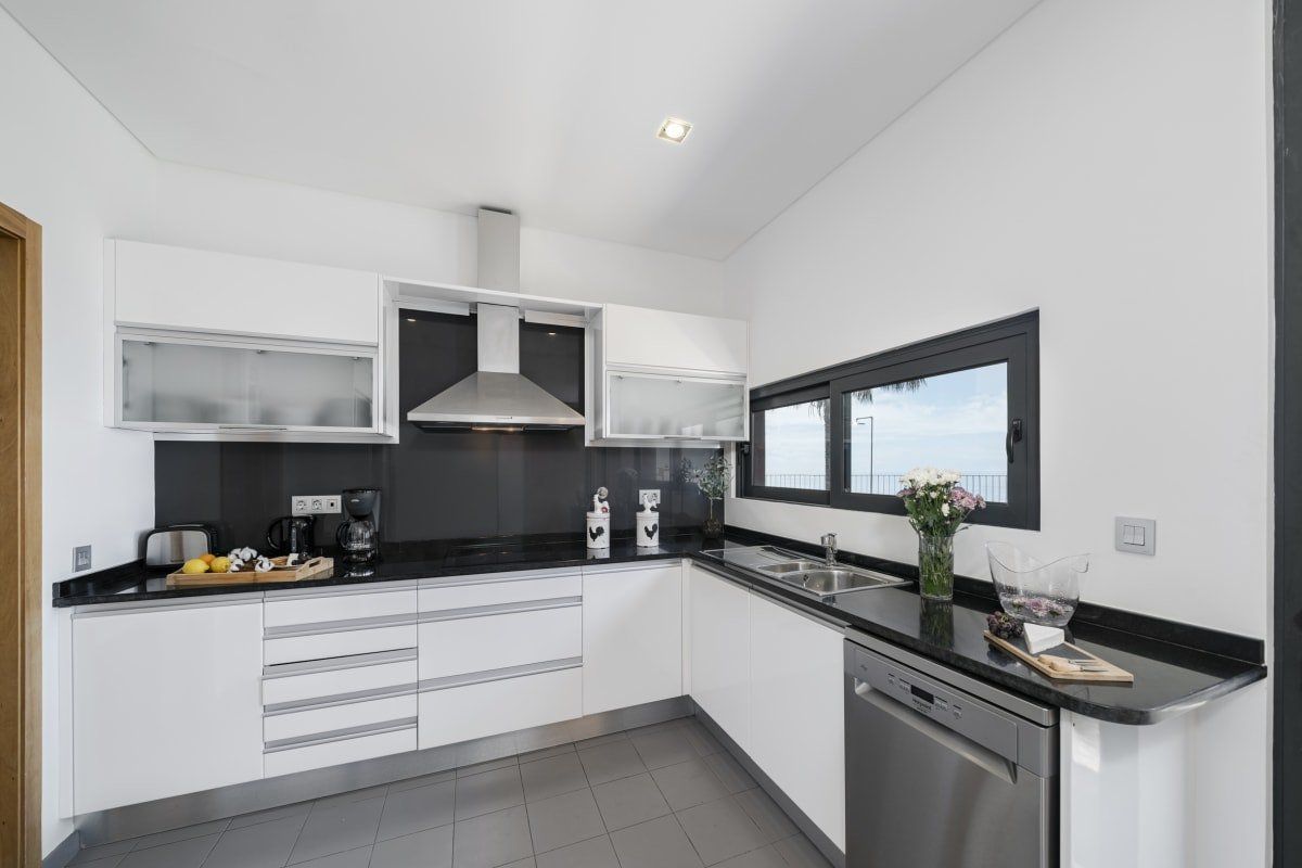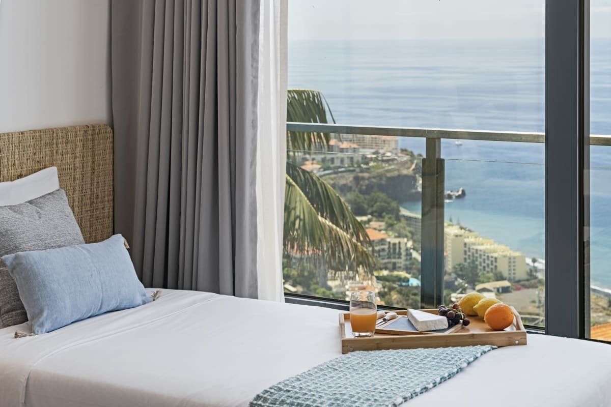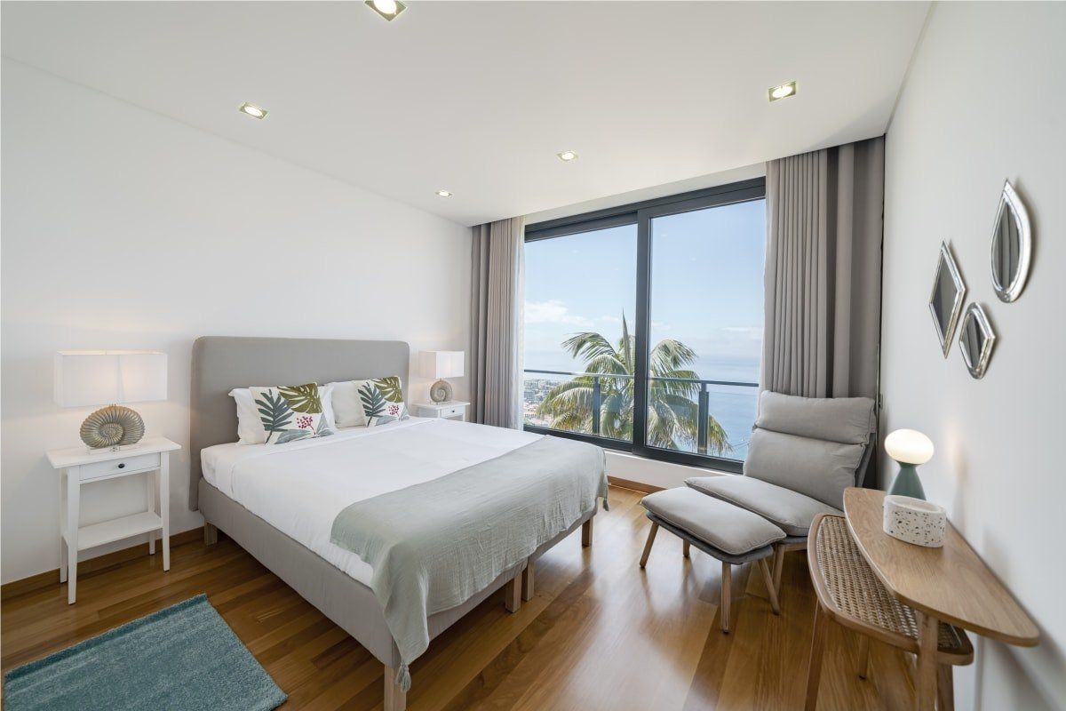 Off the beaten track but close enough to one of Funchal's most prestigious tourist areas to easily access its shops, restaurants and beaches, this detached villa has amazing views. In an elevated position, it looks across some of the area's famous sweeping slopes, down to Praia Formosa and across the glittering ocean. Sleek and modern, the home sits inside a private walled garden and has been cleverly designed to include underground parking. Inside, it's comfortable and stylish, with contemporary furnishings, white walls, wood floors and a subtle hint towards a nautical theme. The living space is bright and sociable, with big doors opening out into the garden, and there's a fully kitted-out kitchen so cooking at home will be a breeze. Upstairs, good size bedrooms benefit from even more impressive views thanks to their floor-to-ceiling windows and there's a balcony for the lucky guests in the master bedroom. Outside you'll find lawned areas, a dining terrace (the perfect spot for a barbecue) and plenty of sun loungers. Here you'll be just a few minutes' drive from the nearest beaches and Funchal city centre is ten minutes by car.