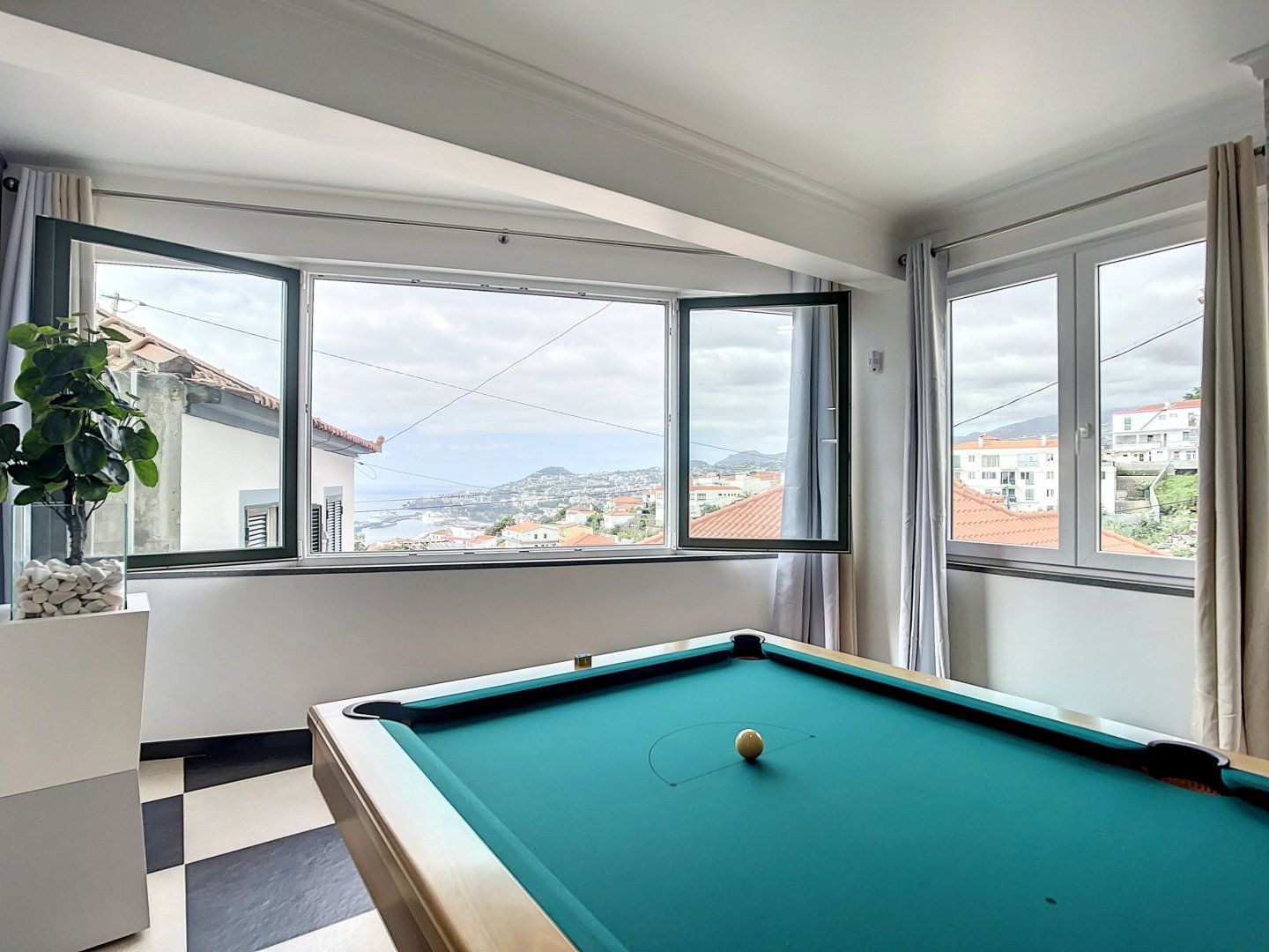The open-plan living and dining area is filled with streams of natural light, and we love the high ceilings and stylish décor. Kick back and relax on the plush sofas, inviting you to enjoy evenings of TV and wine. For a delicious family feast, step into the modern kitchen and cook up a storm, inspired by Madeira’s culinary traditions. You’ll be able to share your meals at the large dining table. Later, why not play some pool or step out onto the terrace and watch Funchal light up before you?