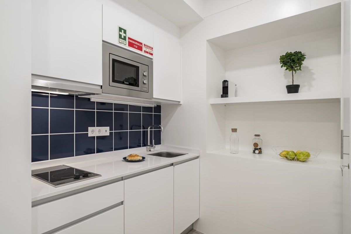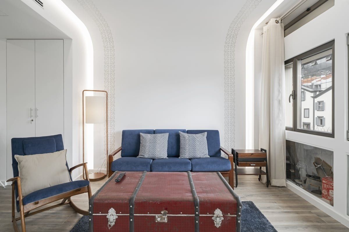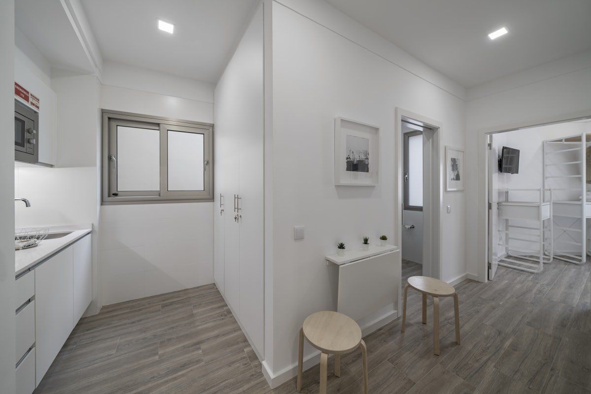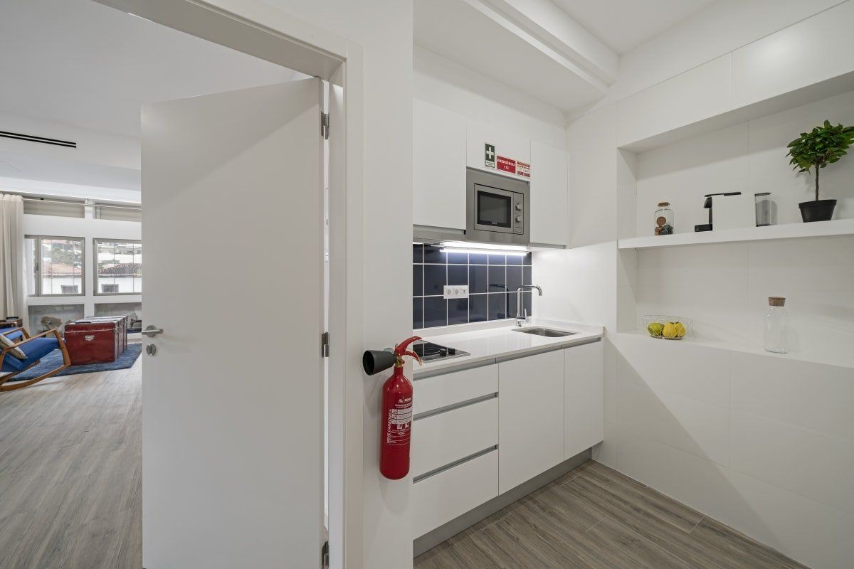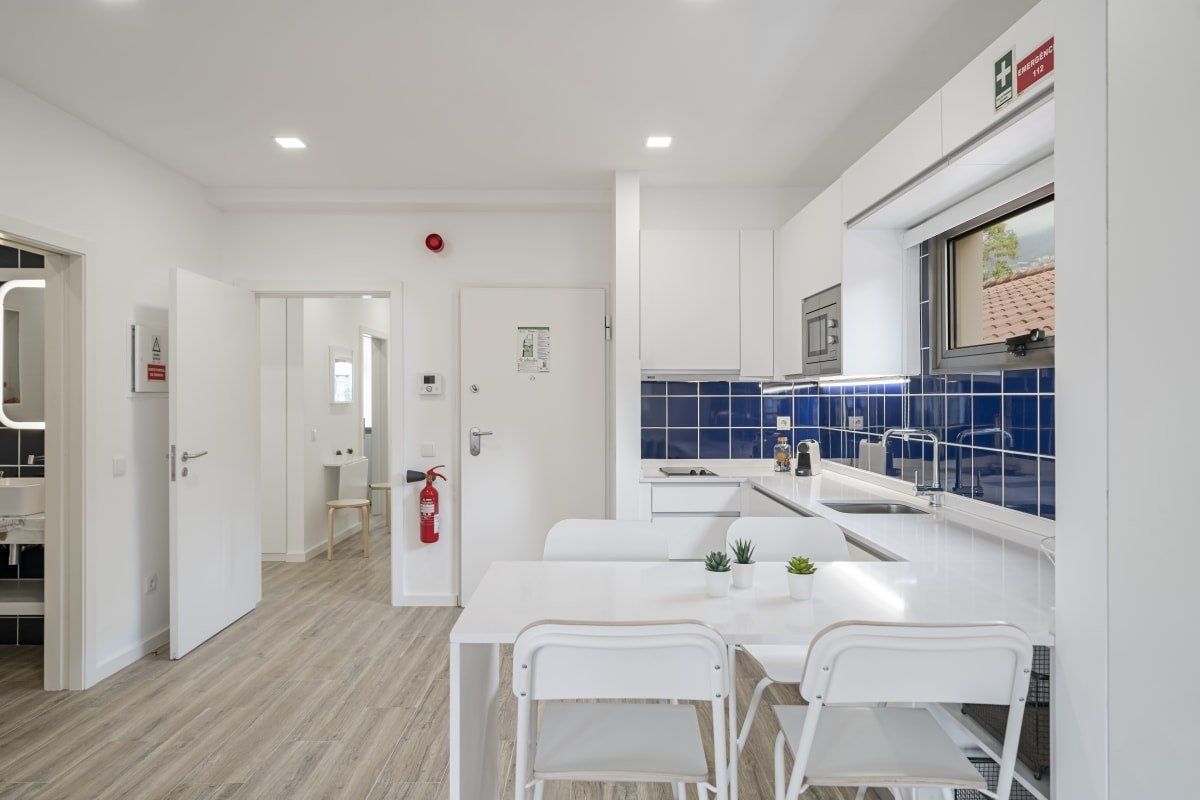 Formerly the city’s embroidery factory, the building has been expertly reimagined into six independent apartments. While an impressive painted mural and curiosity displays cases nod to this home’s past, everywhere else has been updated to offer pure modern comfort. Each crisp and contemporary apartment offers enticing bedrooms, sunny living areas and sleek kitchen spaces, with some rooms offering private sunny terraces for morning coffees and obligatory pastéis de Nata.