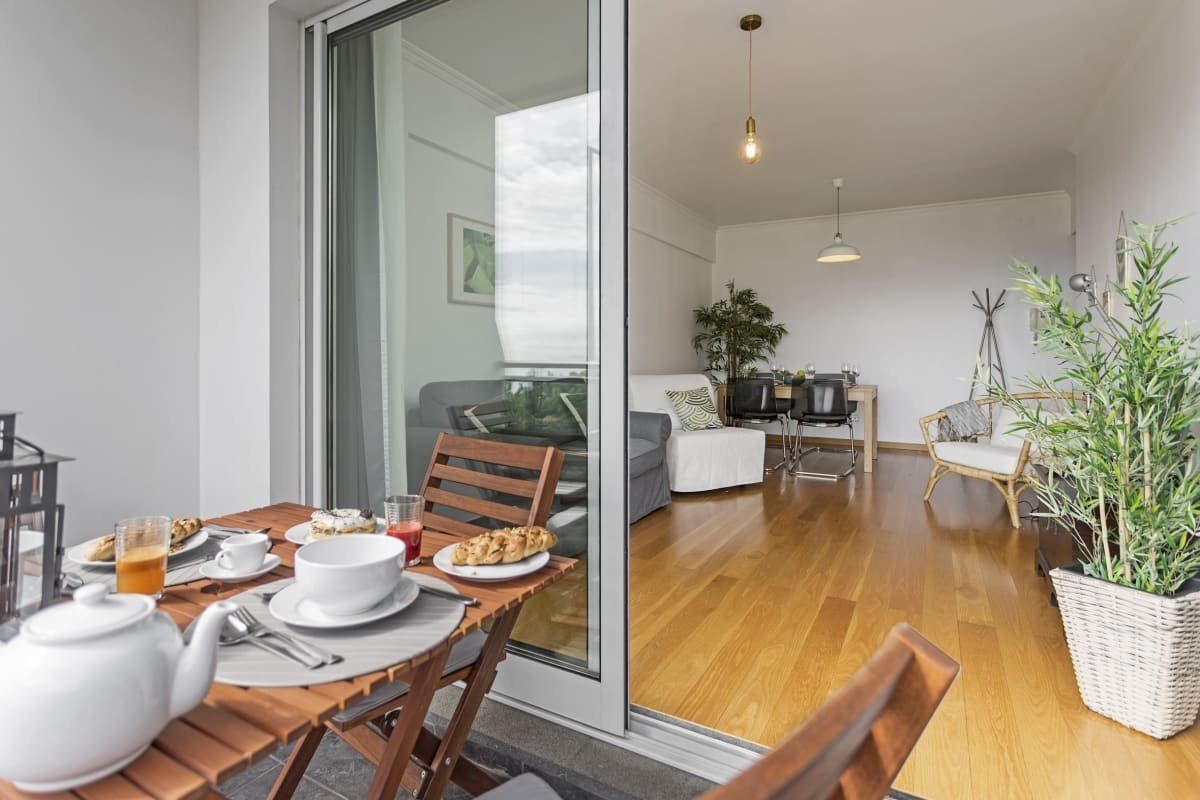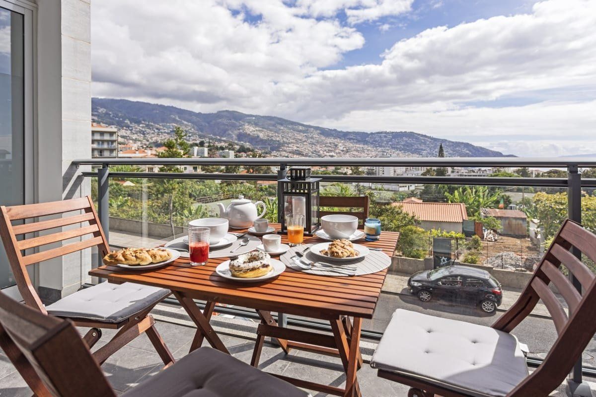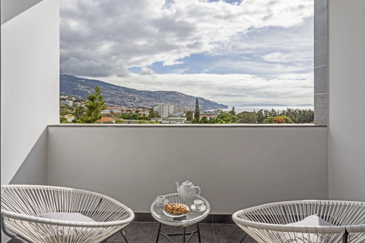 We adore the city and ocean views from this stylish apartment in Funchal. There are two balconies to enjoy a glass of Madeira wine on, or have breakfast while taking in the breathtaking vistas. Inside, we particularly love the bedroom with its macrame wall hanging, mustard throw and doors out onto the outdoor space – relax on an Acapulco chair with the first coffee of the day. When you're ready to explore, it's a five-minute drive or a thirty-minute walk to chic Funchal Marina, as well as the Sé Catedral with its stunning Mudéjar ceiling. For dining out, there are an array of eateries just over 200 metres away, or if you want to enjoy some Portuguese pastries – there's a bakery right next to this lovely home.