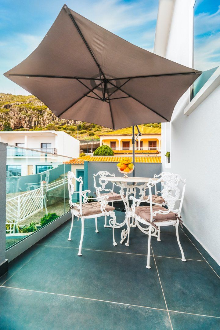 First of all, let’s talk about the view. The hanging egg chair on the balcony faces out over the shambling orange roofs of Machino, the glimmering waves of the Atlantic Ocean in the distance. If you prefer to enjoy the view with something cold and bubbly in hand, consider firing up the Jacuzzi on the balcony. A little bistro table for two provides the perfect spot for sundowners.