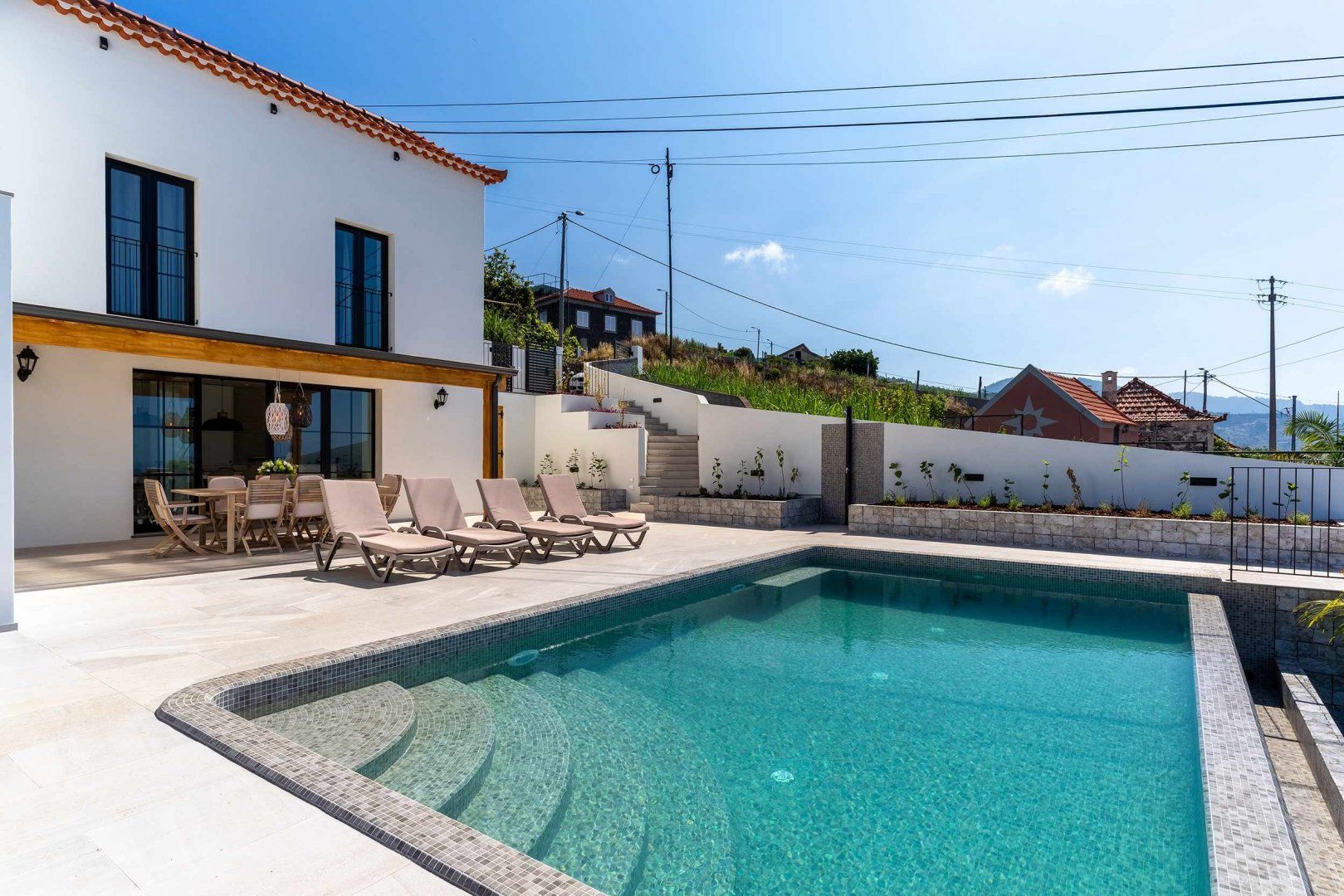 Begin your day slowly on the balcony, take leisurely dips in the swimming pool (heated upon request) and spend lazy afternoons reading in the shade. And for those in search of a little more action, make your way to the home gym or explore the island’s atmospheric coastline. You’ll find the nearest beach is just a short drive away, while the hiking trails of Paul da Serra are also within easy reach.