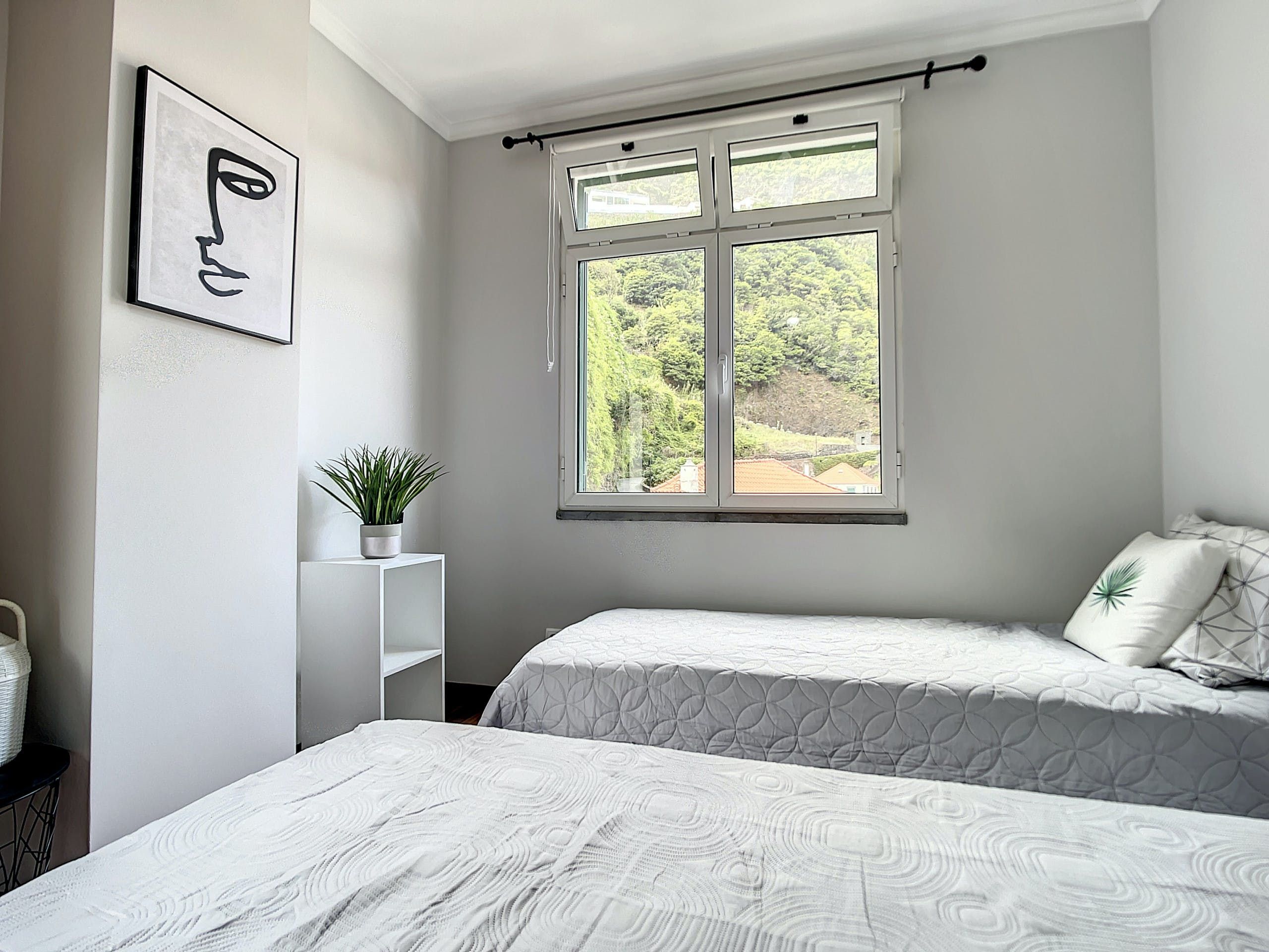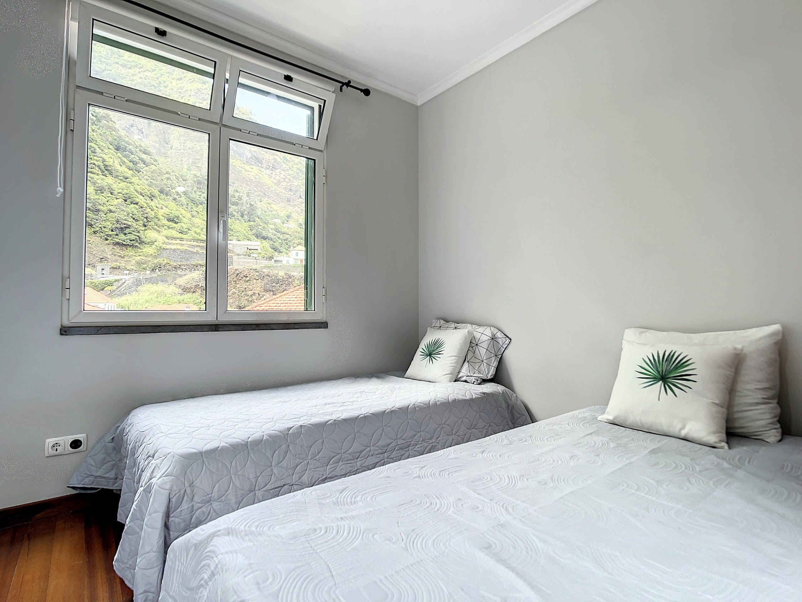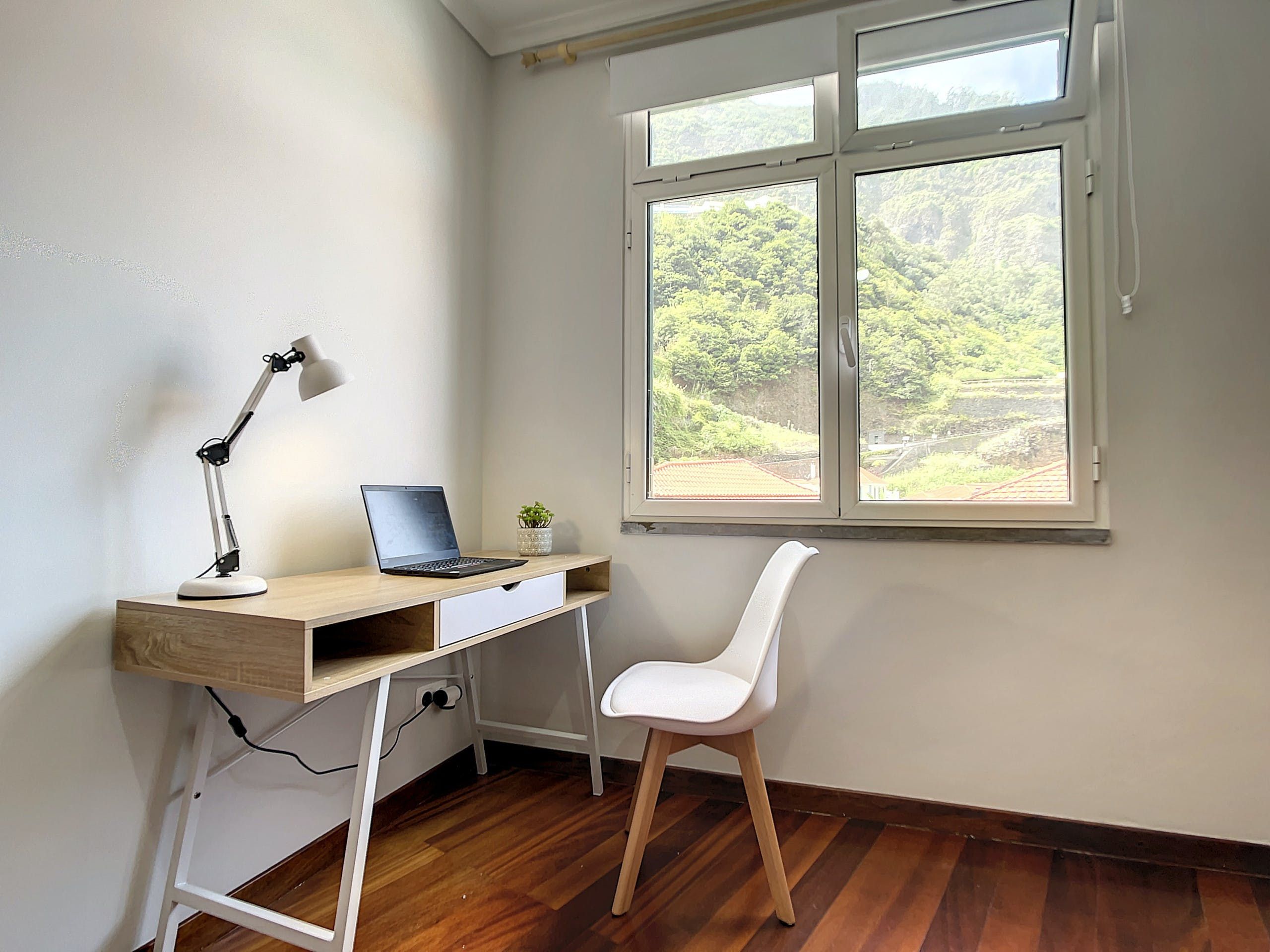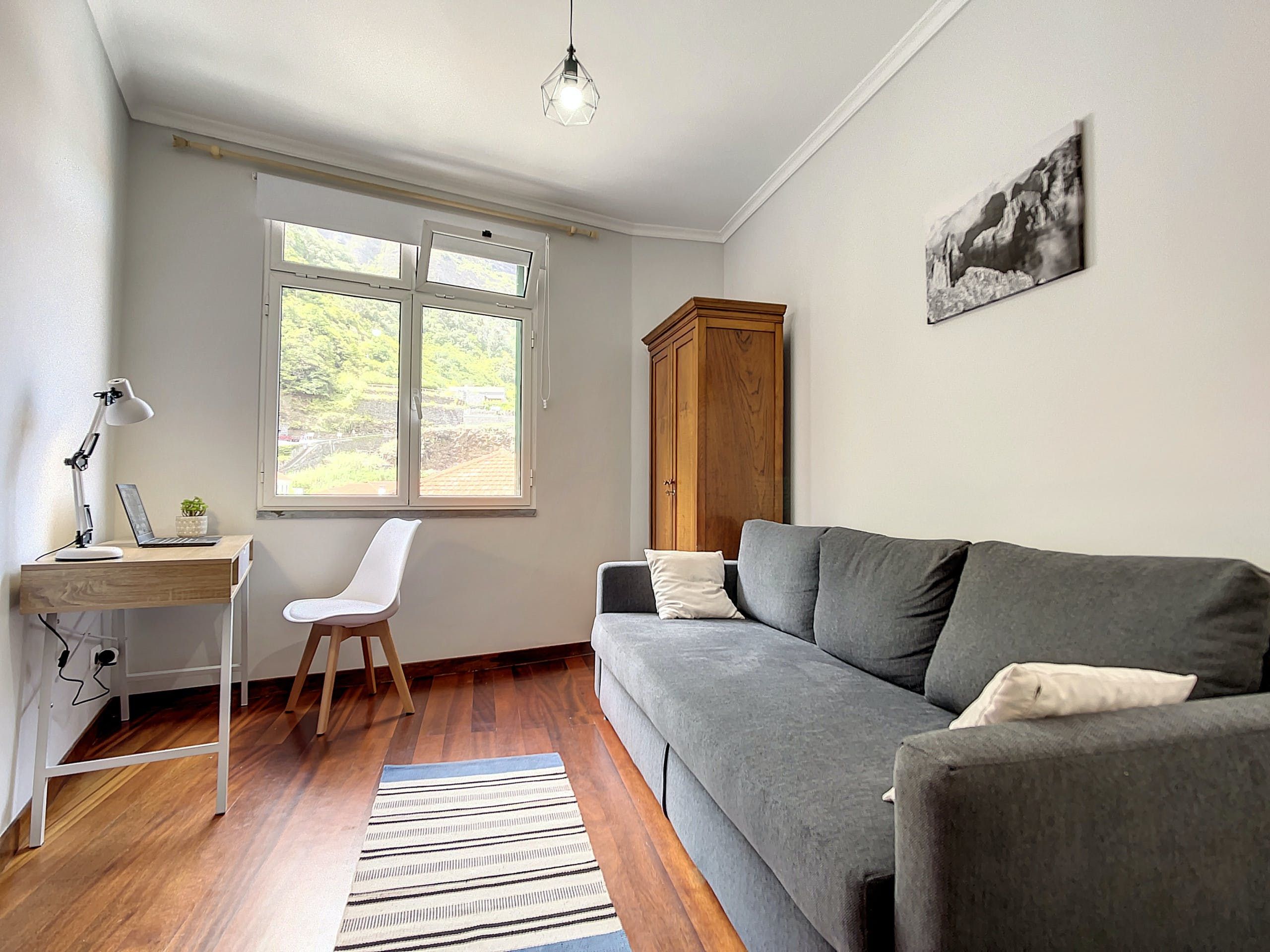 The views from this São Vicente apartment are breathtaking. From the terrace, living room and workspace, guests can drink in marvellous mountain vistas. This home is an ideal base for a family or friends exploring the North Island of Madeira. You can walk to restaurants and a supermarket, but we recommend hiring a car to get around easily – lovely Seixal Sand beach is only a ten-minute drive away. The natural pools of Porto Moniz are eighteen minutes away – this is a great choice for nature lovers. Two guests will be sleeping on a sofa bed in bedroom three, which doubles as a workspace.