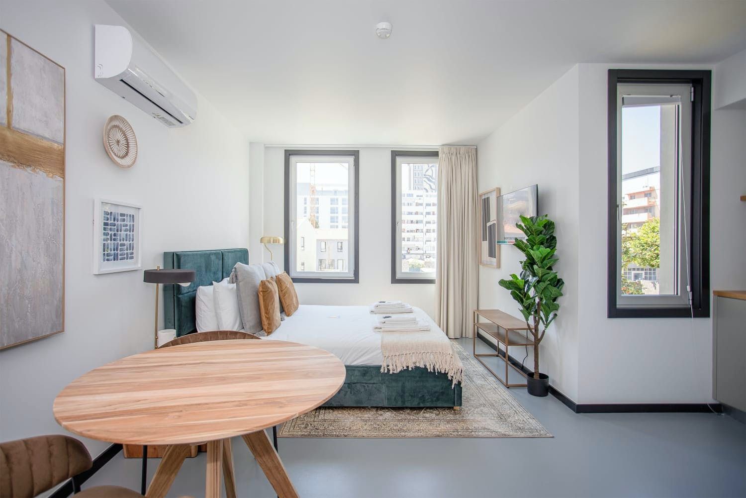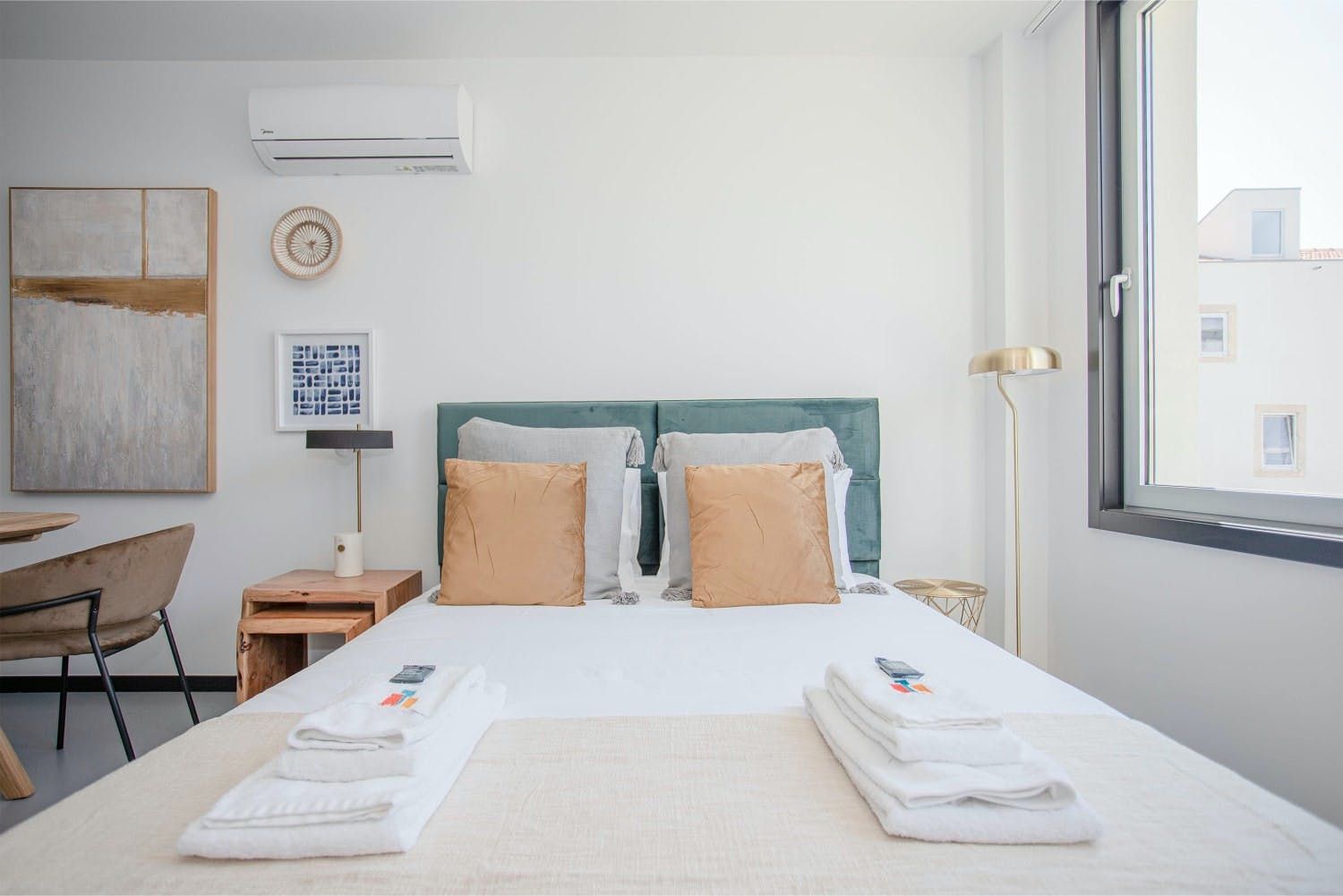 Though compact, the space has been curated with a keen eye for design, with tall windows allowing plenty of sunlight to flow in, and a pared-back contemporary decor that feels wonderfully welcoming. We love the soothing pops of blue and green in the furnishings and artwork, creating a space that feels instantly inviting. Start mornings with a relaxing soak under the bathroom’s rainfall shower before enjoying fresh coffee and pastéis de nata around the chic dining table. At night, the comfortable bed beckons a restful night’s sleep, sure to leave you ready for another day of sightseeing adventure.