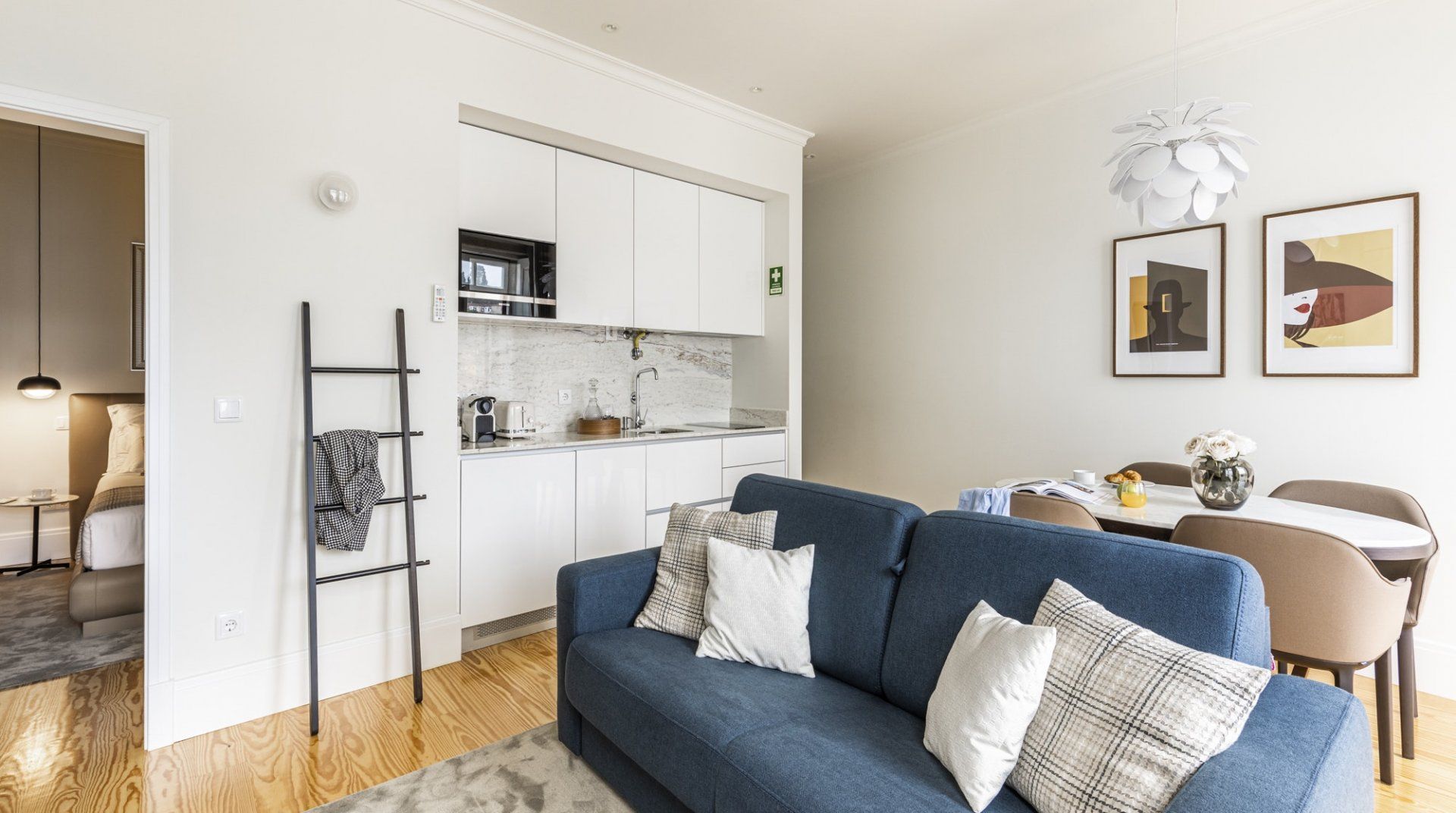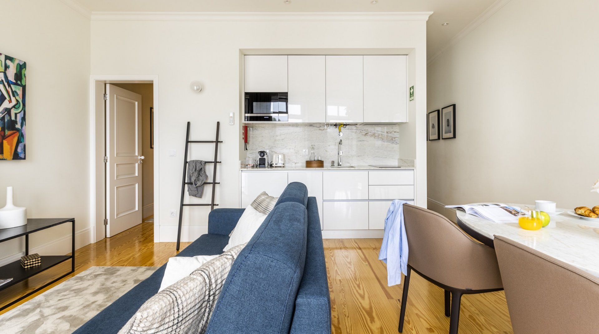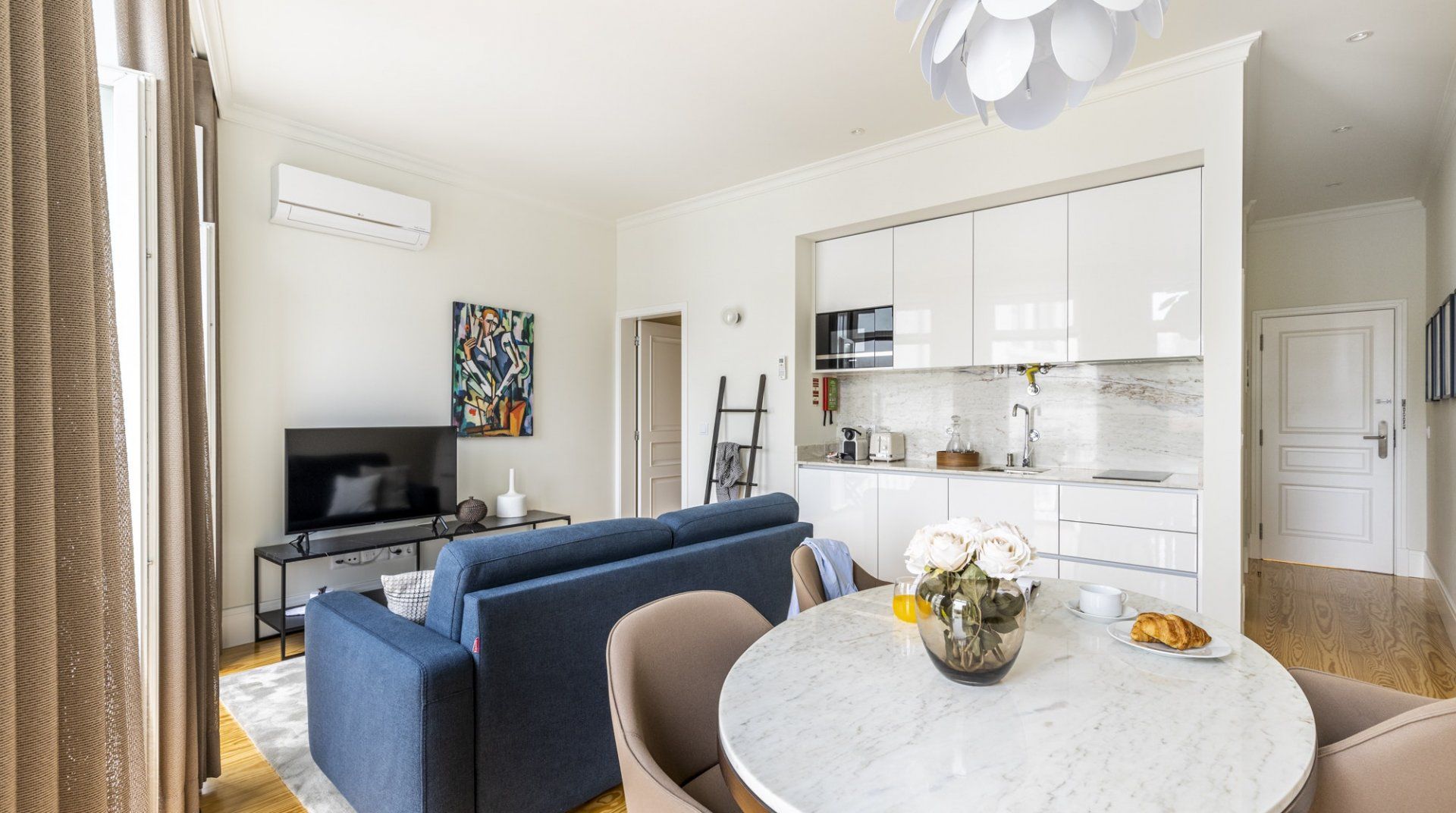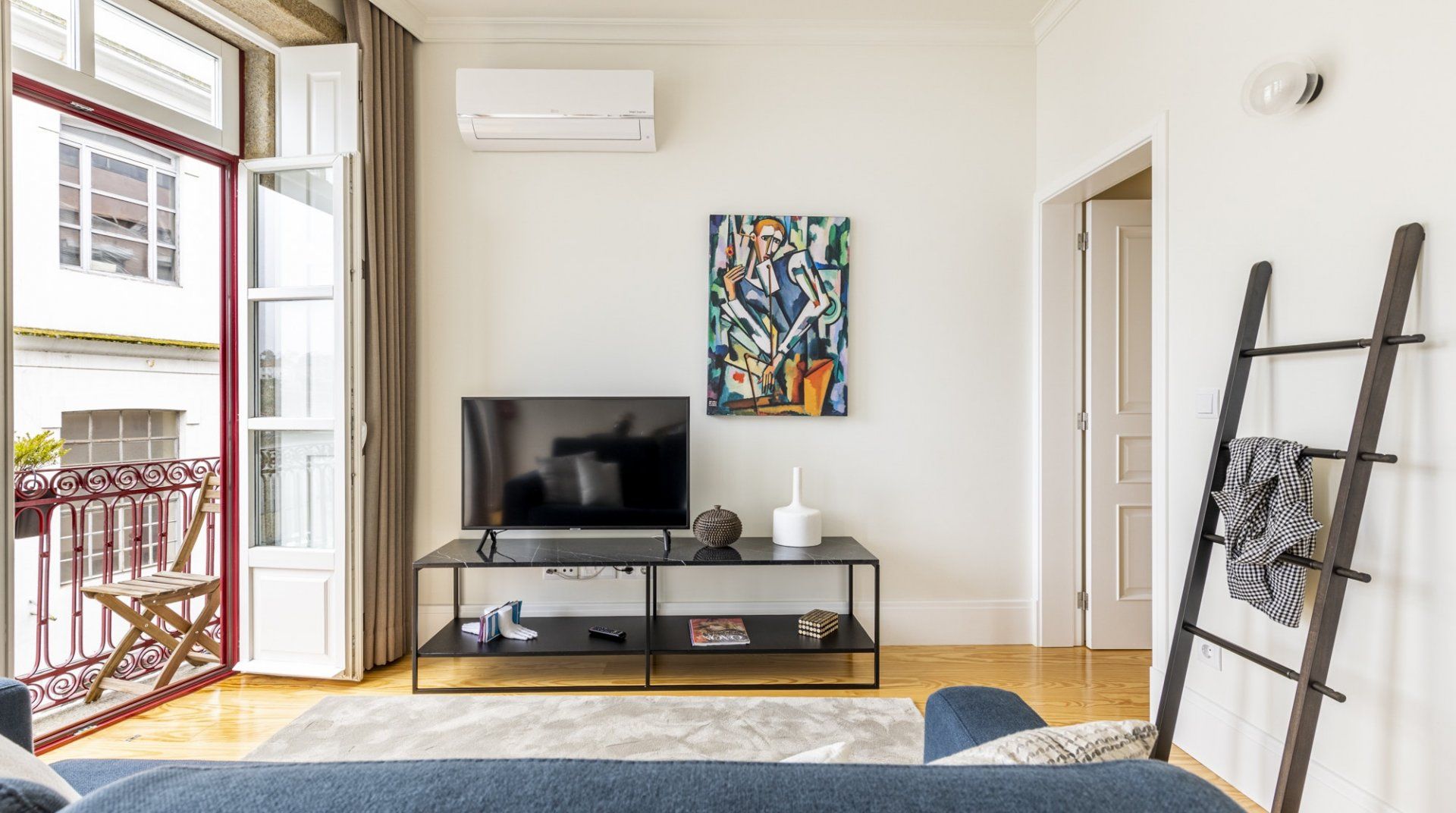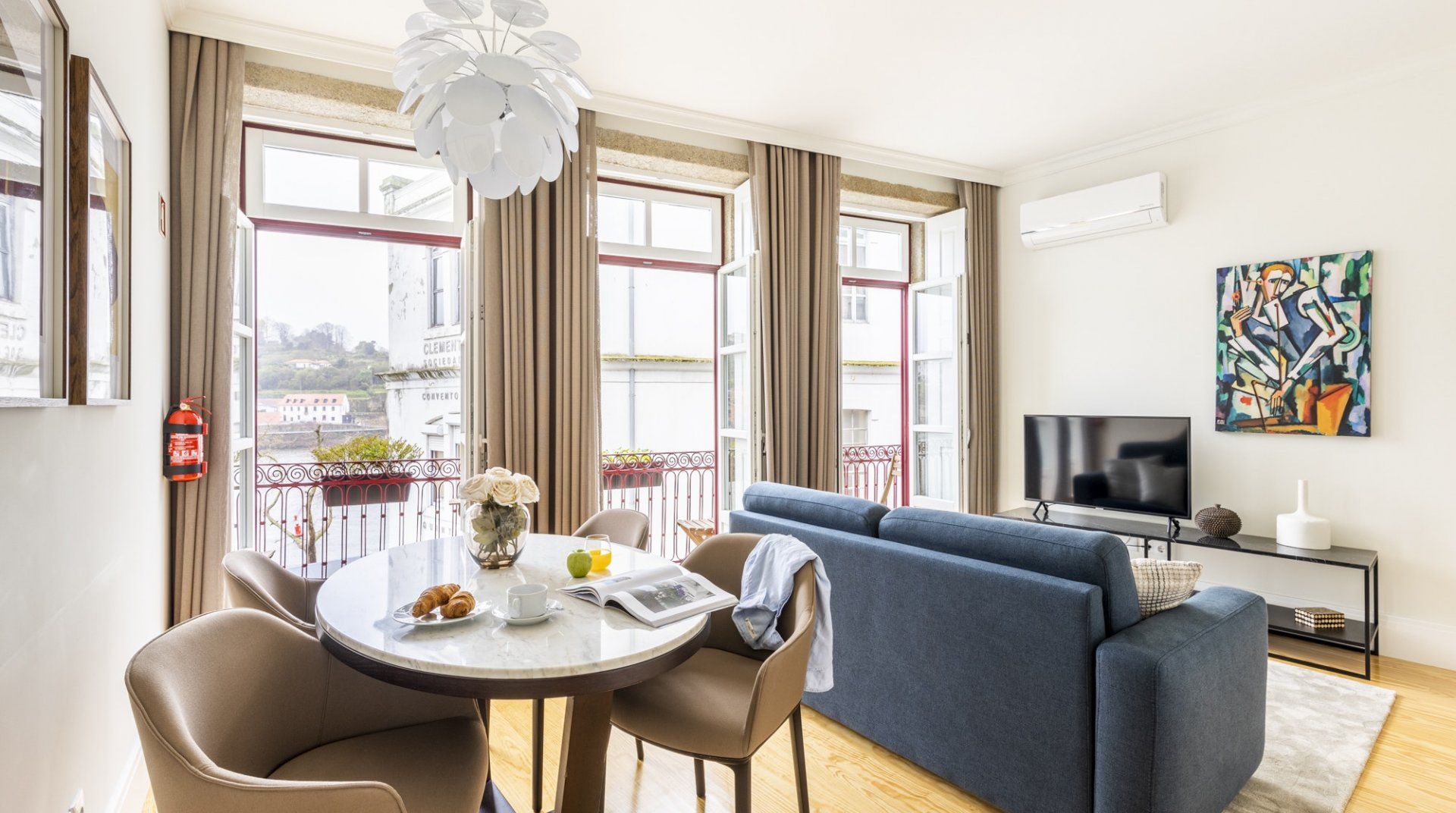 Situated in a recently renovated building in a historic part of Porto, Rio & Agua is well-lit, comfortable and elegant. The neighbourhood is quiet, but the bustle of the city centre is roughly a twenty-minute walk away. The river is a few steps from the apartment, and the balcony gives you lovely views of it. This home is more suited to a city getaway than a long stay as it doesn’t have a washing machine, but aside from that, it’s a convenient and well-designed base for all kinds of travellers.