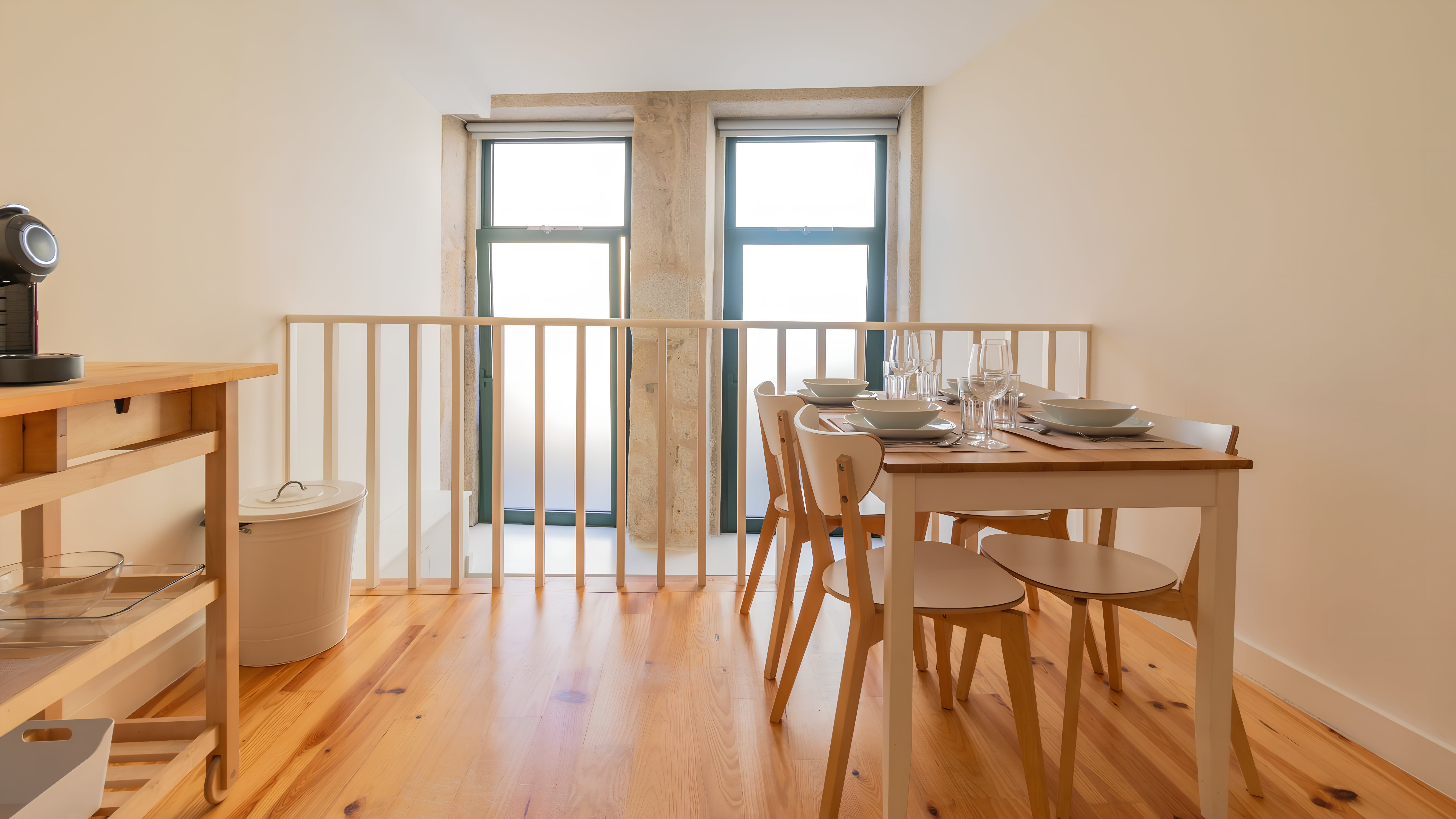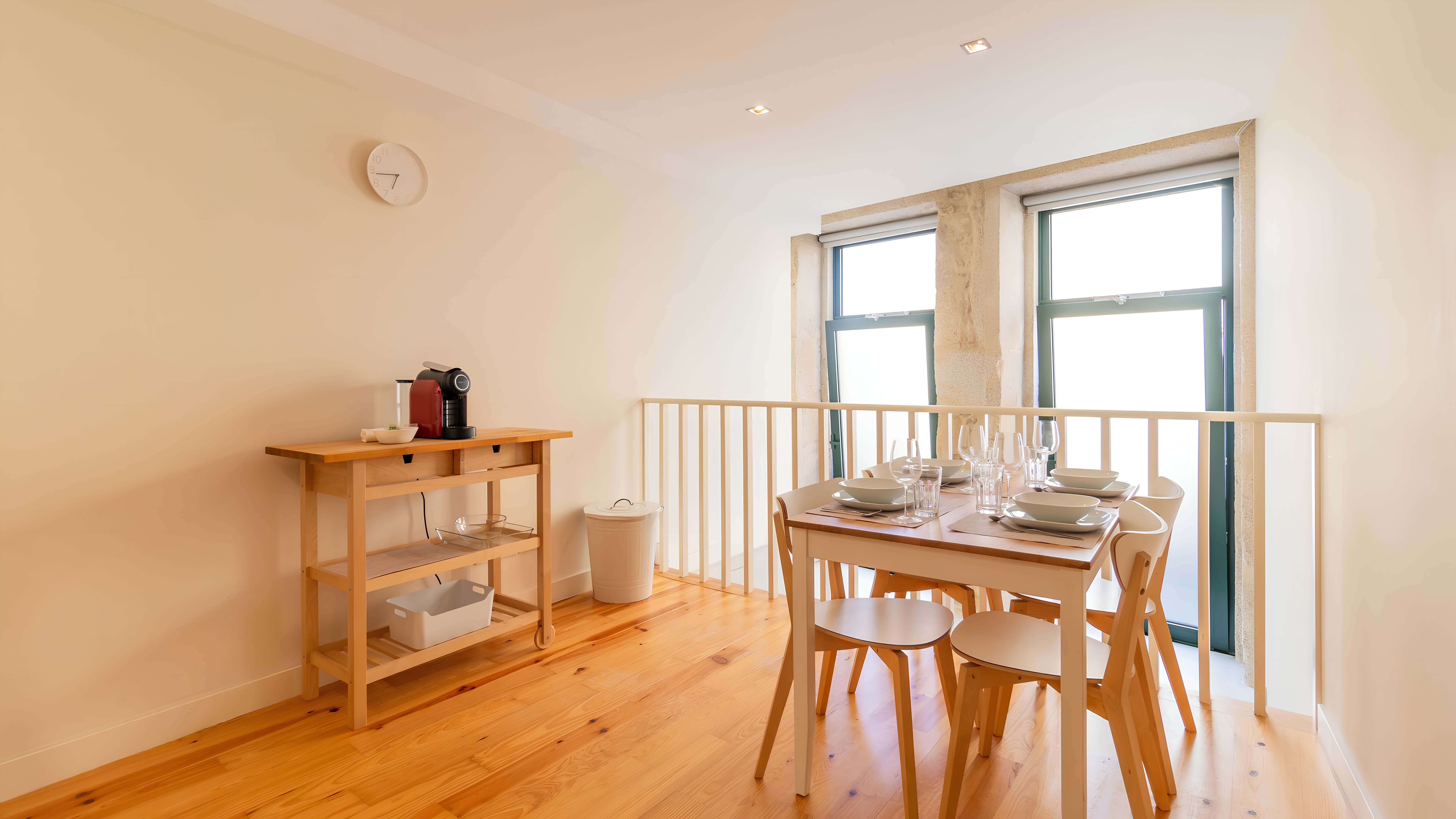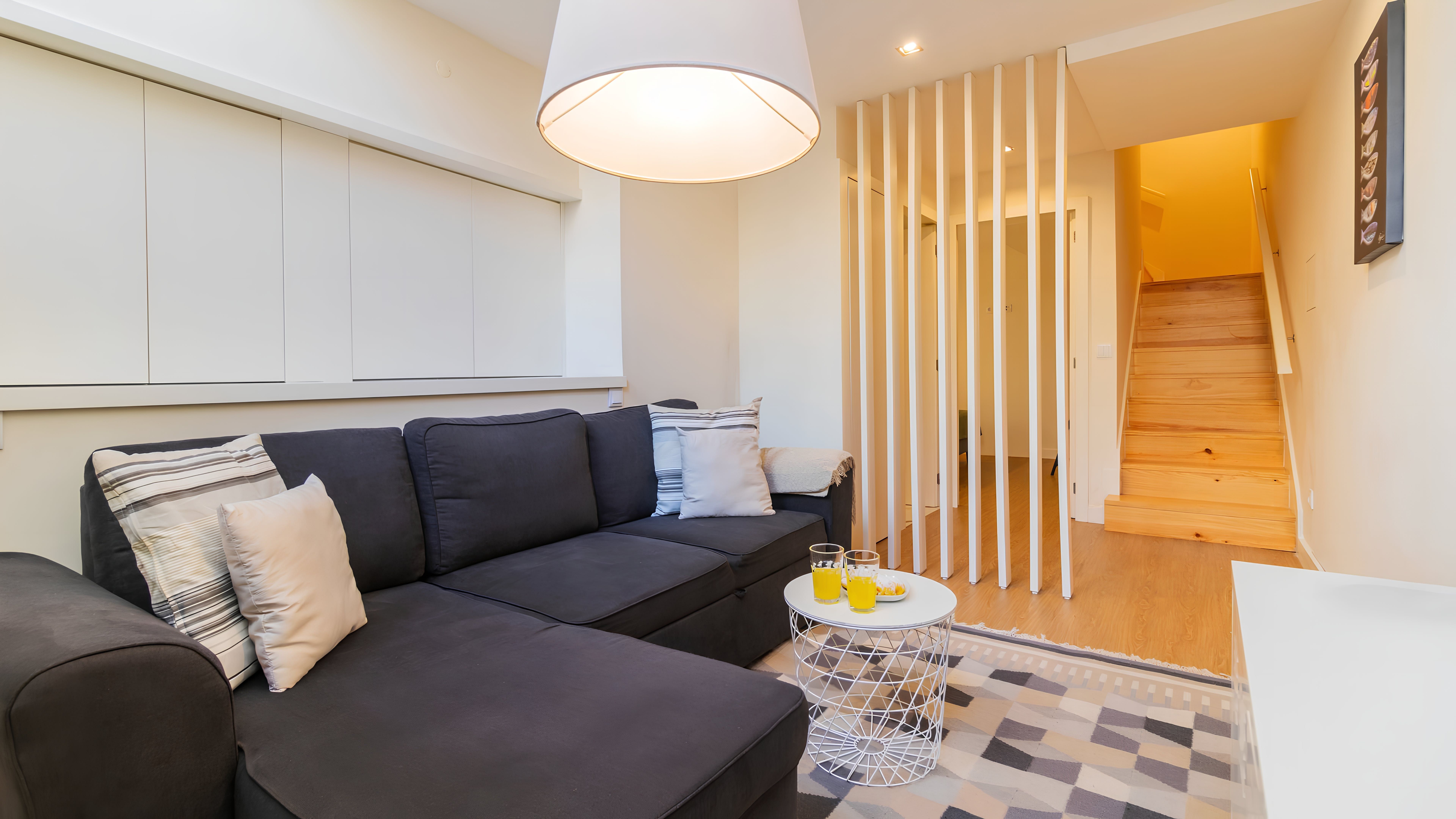 Situated a stone's throw from Porto's heart, this apartment is just a fifteen-minute walk from the grand Avenida dos Aliados. Or go for a stroll along the River Douro, which is ten minutes on foot. This home is set over two levels, with a bright living room and bedroom on the lower floor, while above that lies the kitchen diner. We'd say the kitchen is quite compact, but it's well-equipped should you want to try cooking some Portuguese classics.
