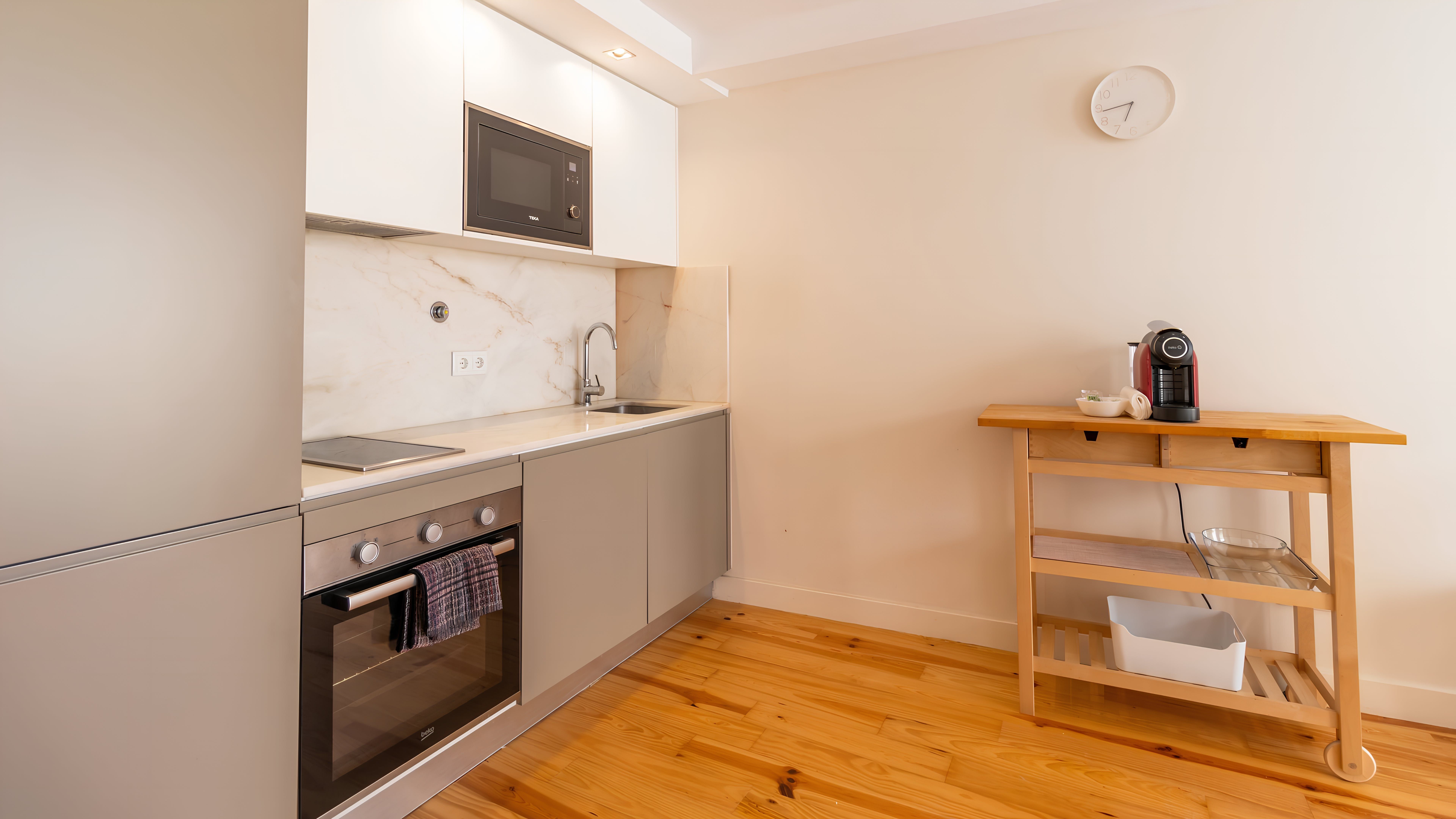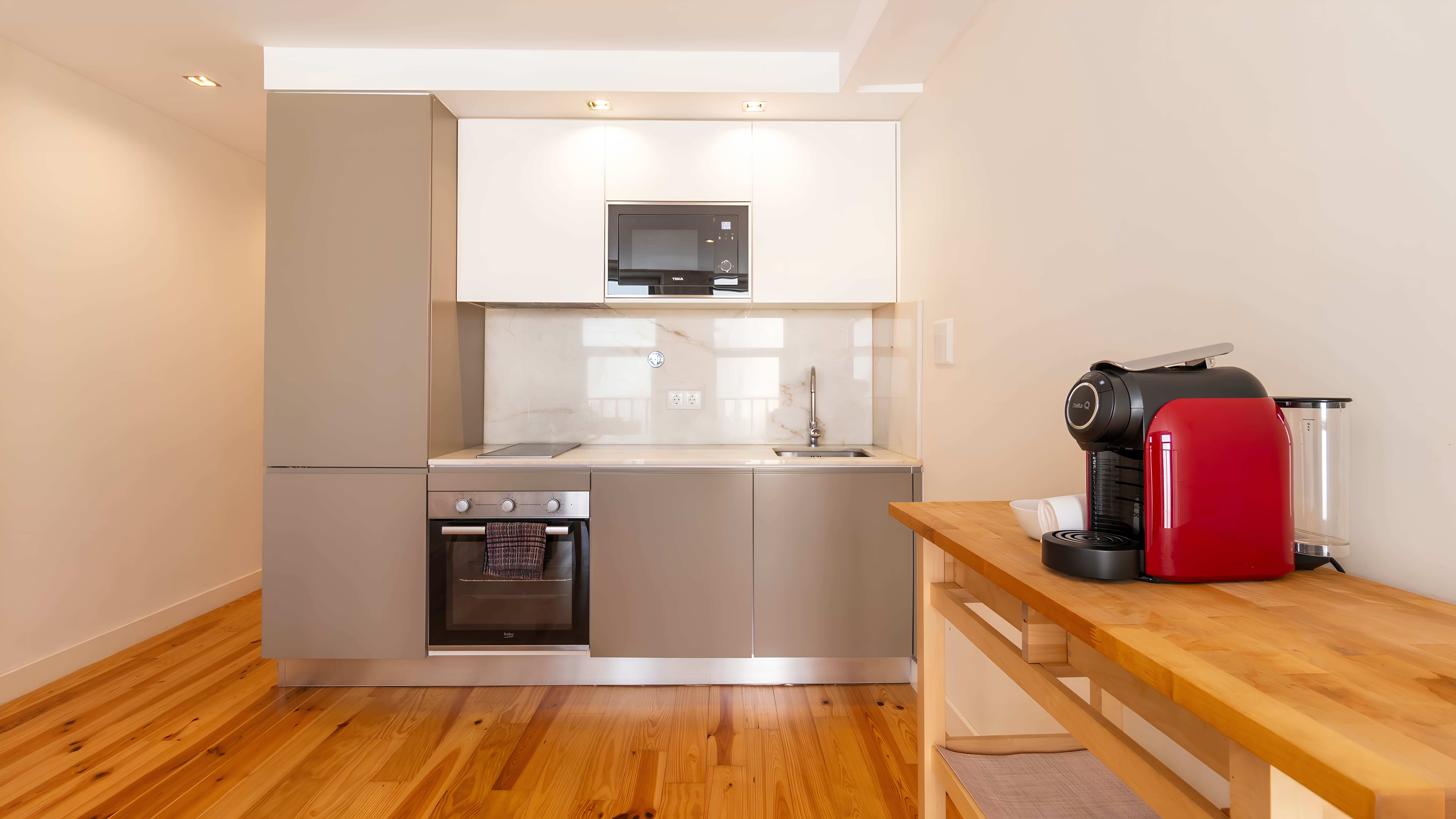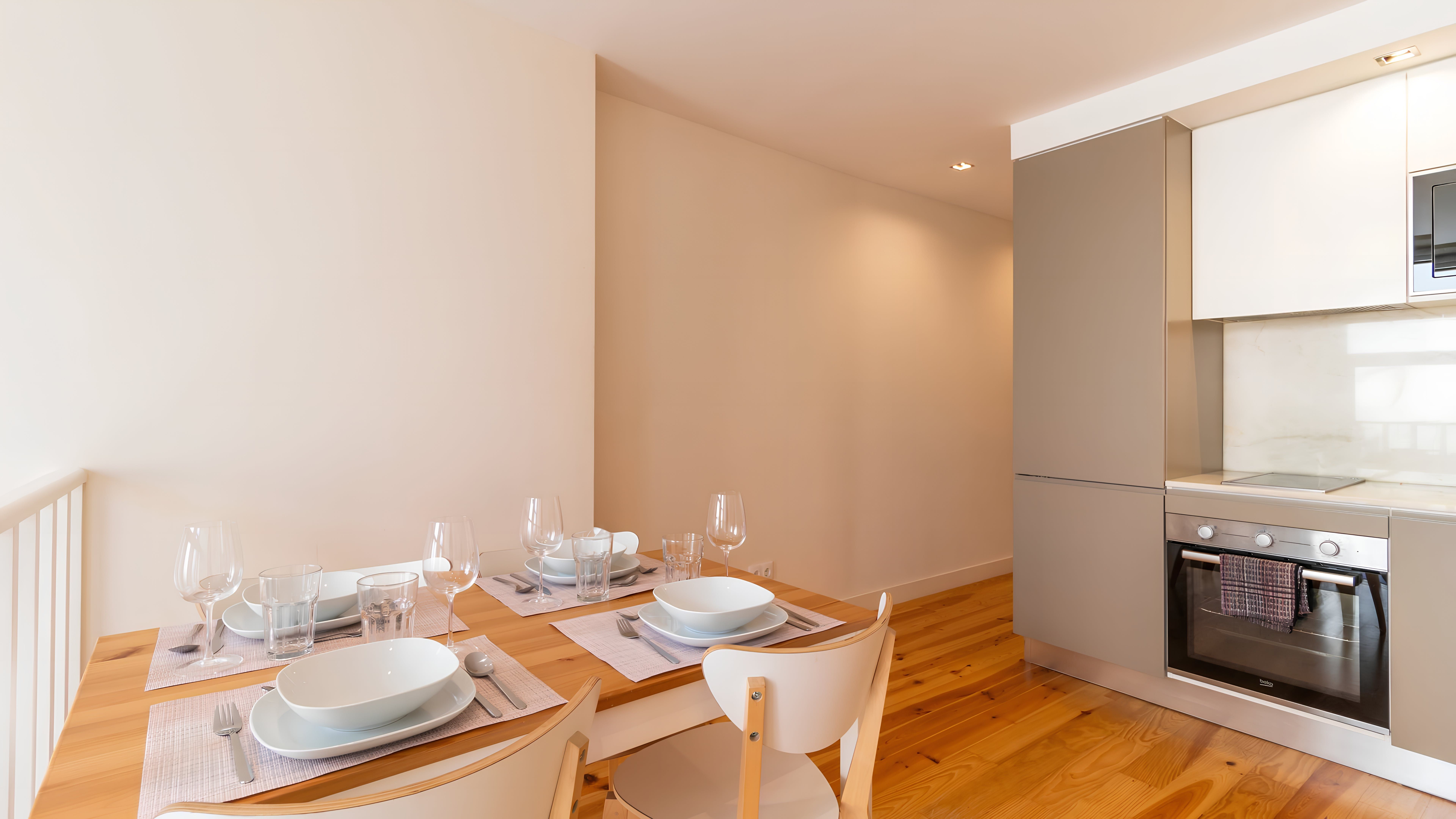 Situated a stone's throw from Porto's heart, this apartment is just a fifteen-minute walk from the grand Avenida dos Aliados. Or go for a stroll along the River Douro, which is ten minutes on foot. This home is set over two levels, with a bright living room and bedroom on the lower floor, while above that lies the kitchen diner. We'd say the kitchen is quite compact, but it's well-equipped should you want to try cooking some Portuguese classics.