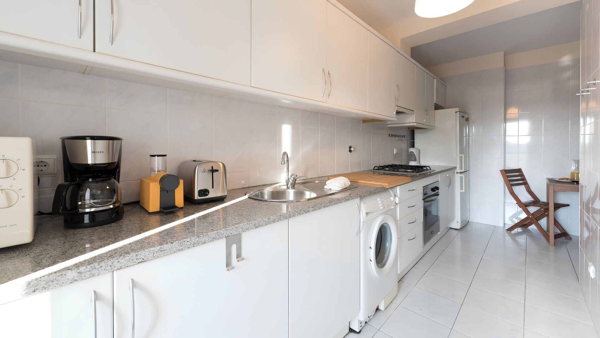 This apartment is the perfect place to experience all that Porto has to offer. The home itself lacks thoughtful design, and the kitchen is dated, though everything works well. If you’re easily awoken, you might want to bring an eyemask, as the bedroom curtains let in a lot of natural light. The plus, however, is the free on-site parking, which is a rarity in this area. If you’d prefer to stretch your legs, the Igreja do Carmo and the famous Livraria Lello are within walking distance.