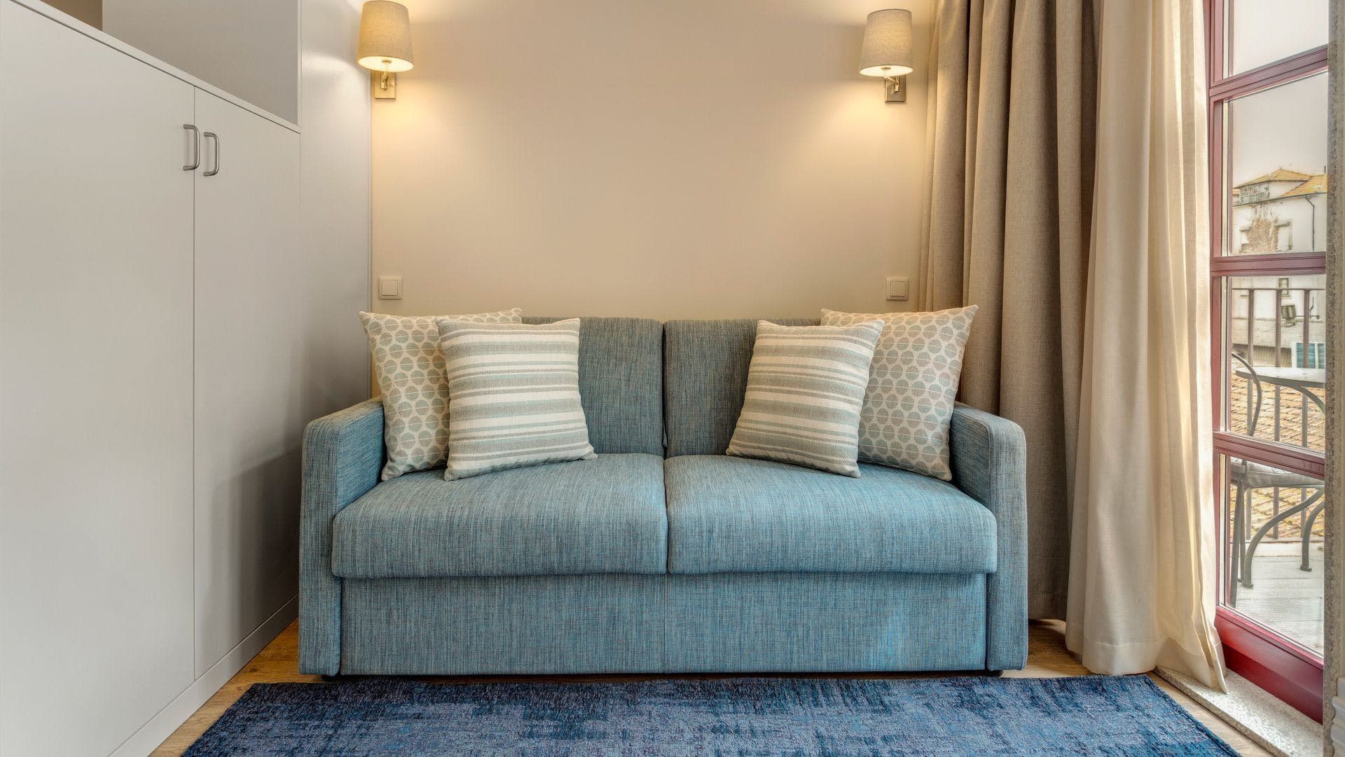 Pour a glass of wine in the modern kitchen and take it onto the balcony – we love the beautiful views over the rooftops of Porto and the D. Luís I Bridge – it looks incredible lit up at night. As dusk falls, head back through the French doors and relax on the comfy sofa before heading out for the evening.
