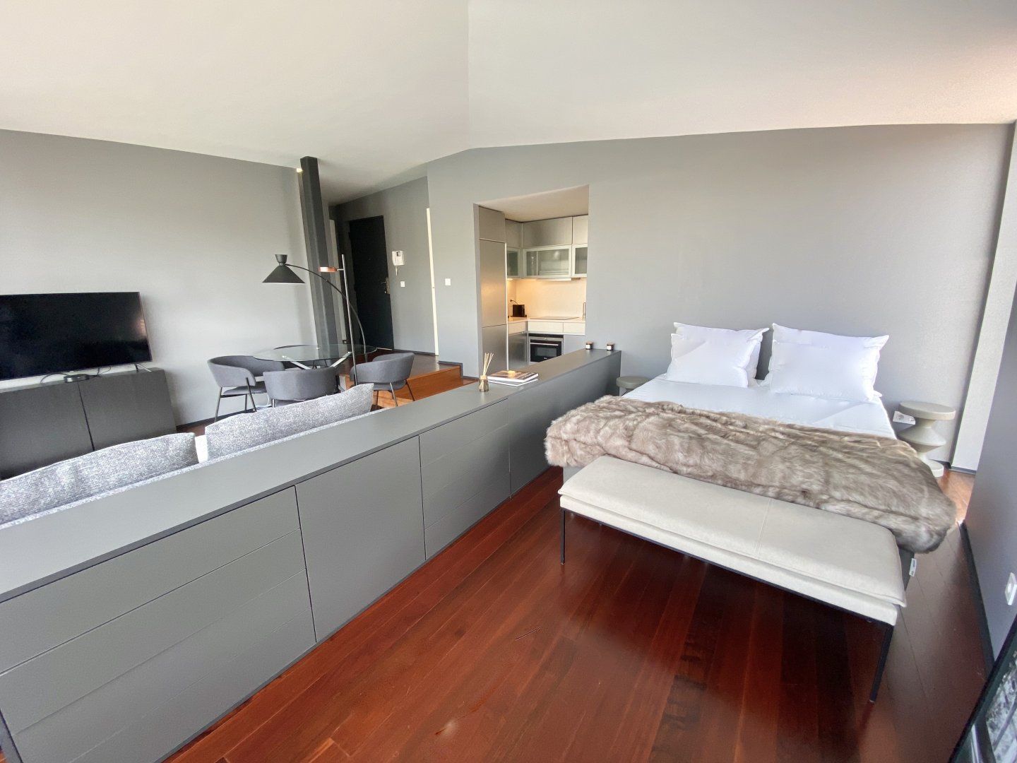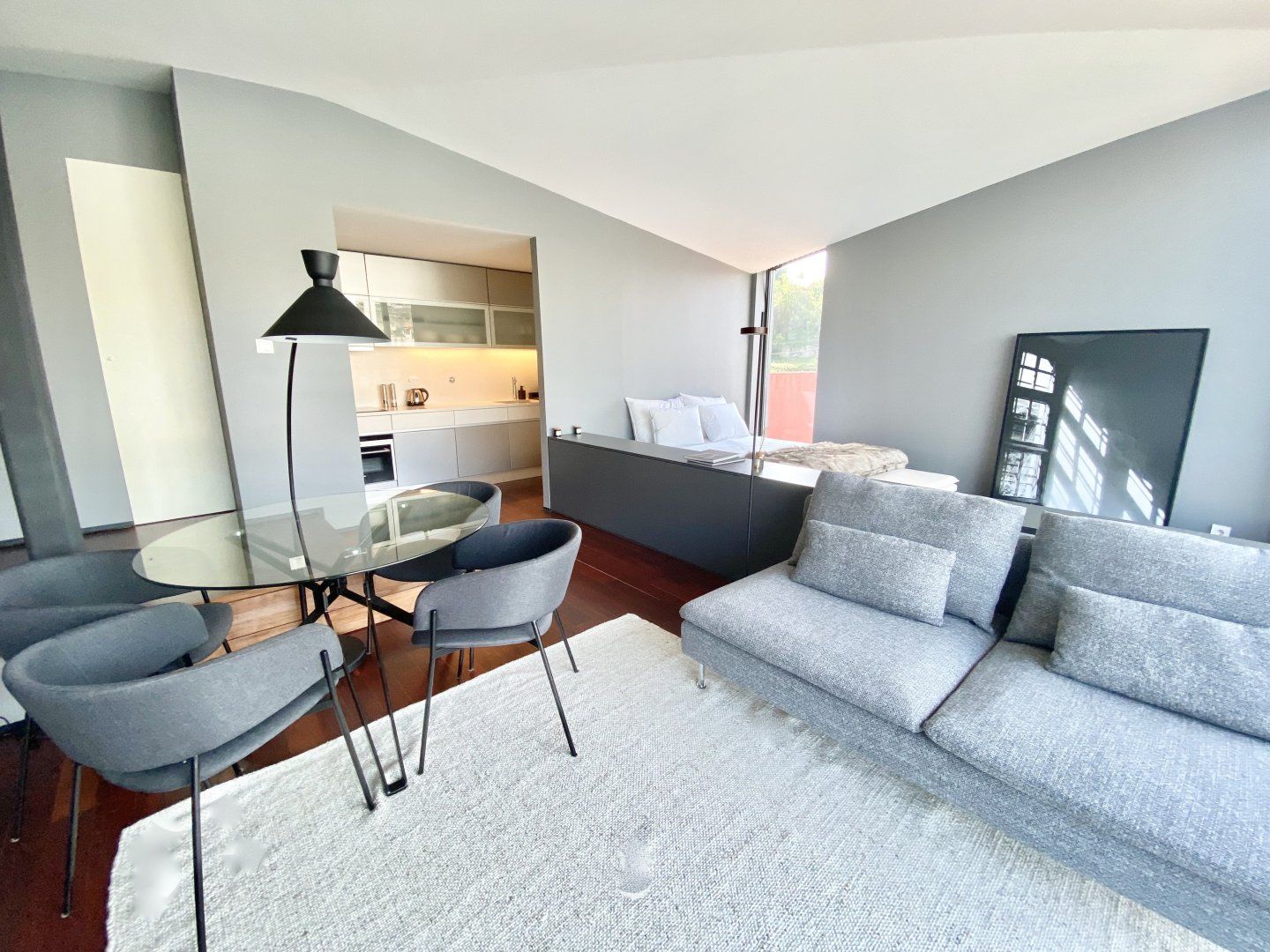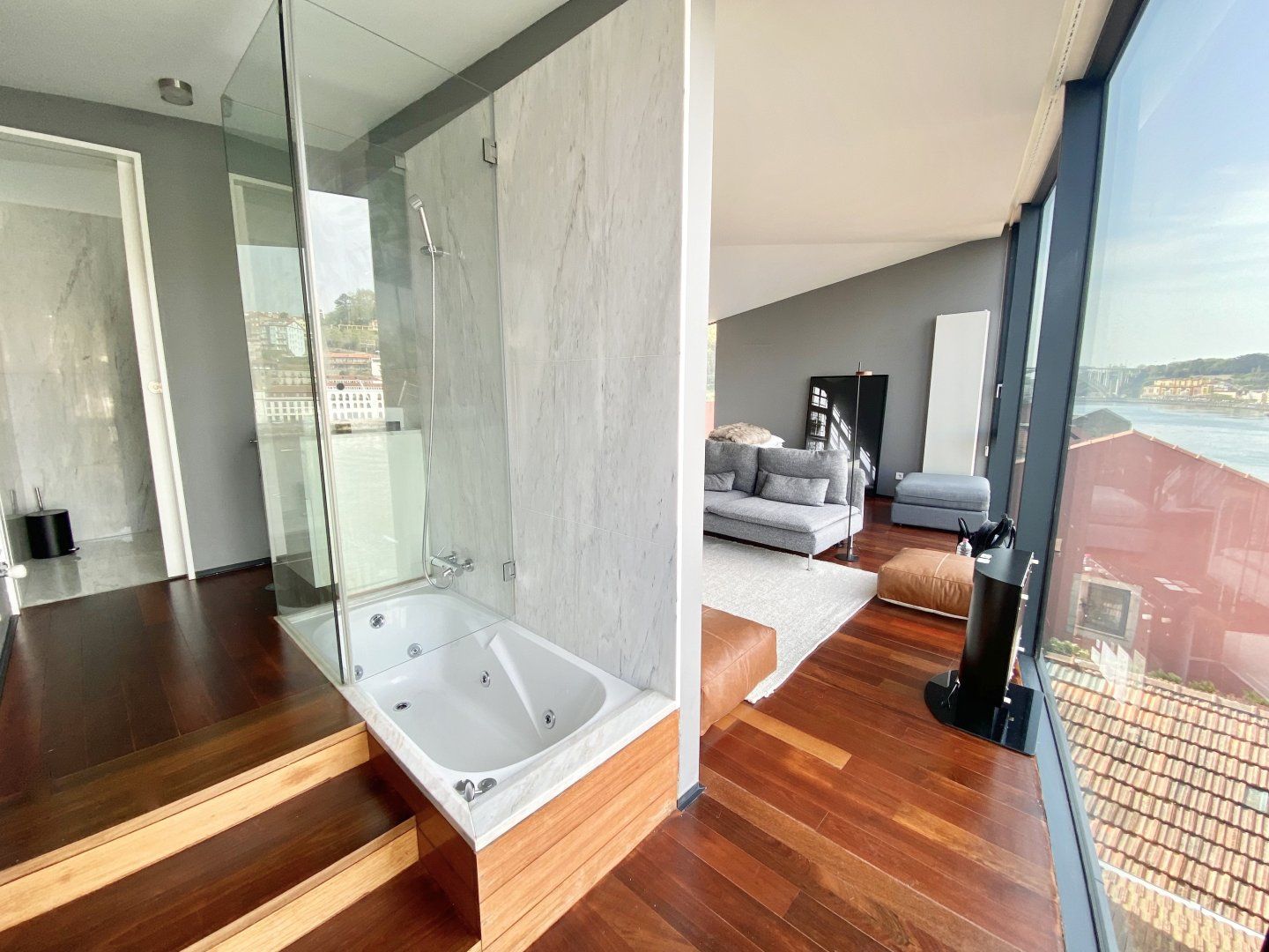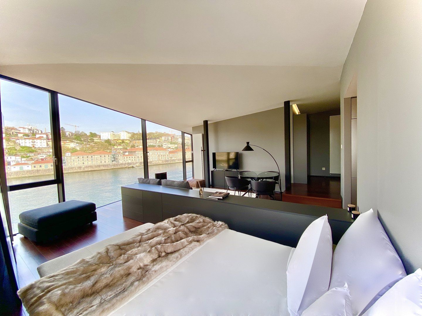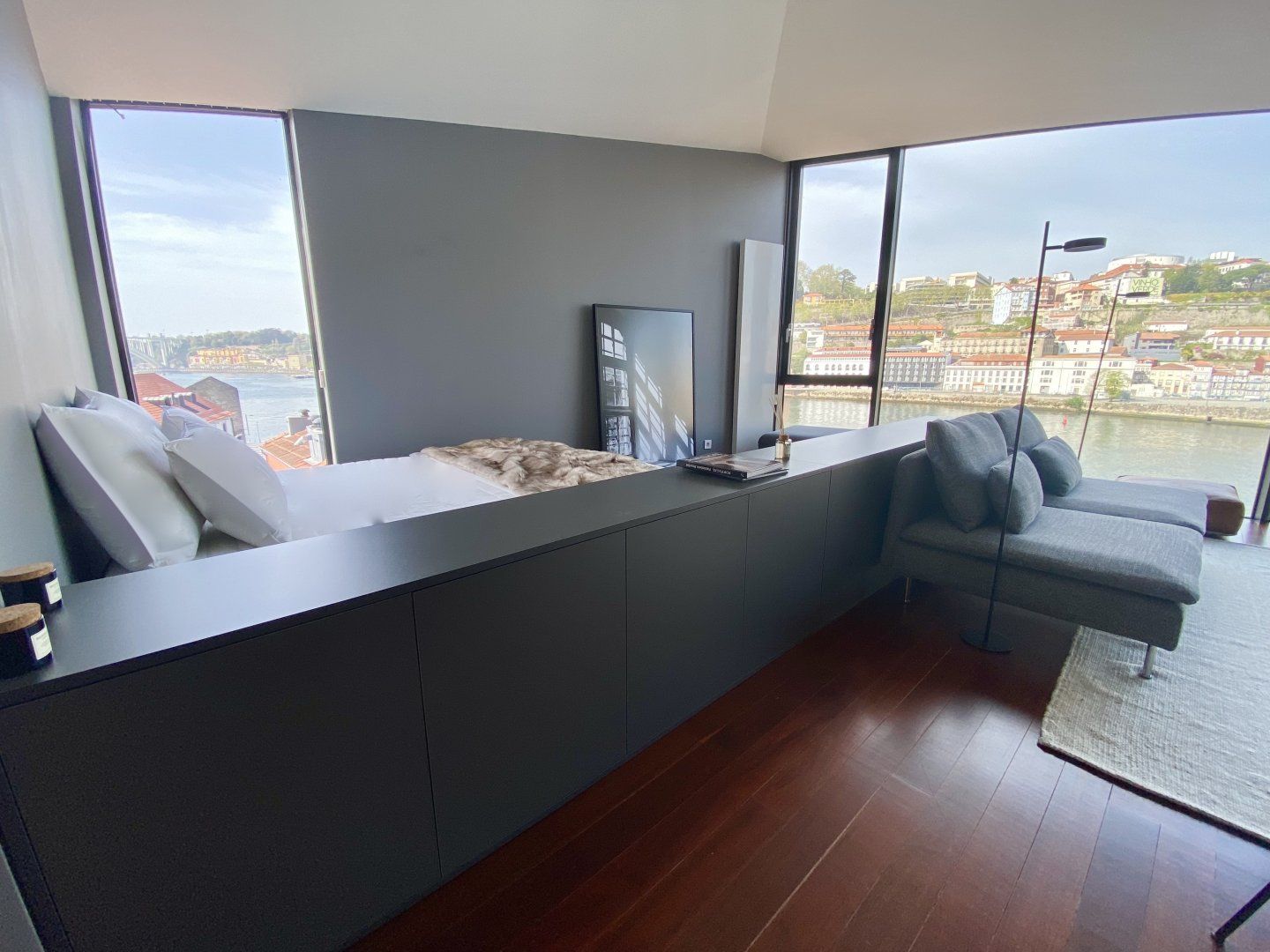 Take in the incredible vistas of the Rio Douro and Ribeira district from the floor-to-ceiling windows in this romantic apartment located in Cais de Gaia. When the Porto weather turns chilly, snuggle up in the faux fur throws by the fireplace. We adore this cosy home, especially as night falls and Porto is all lit up – it's magical.