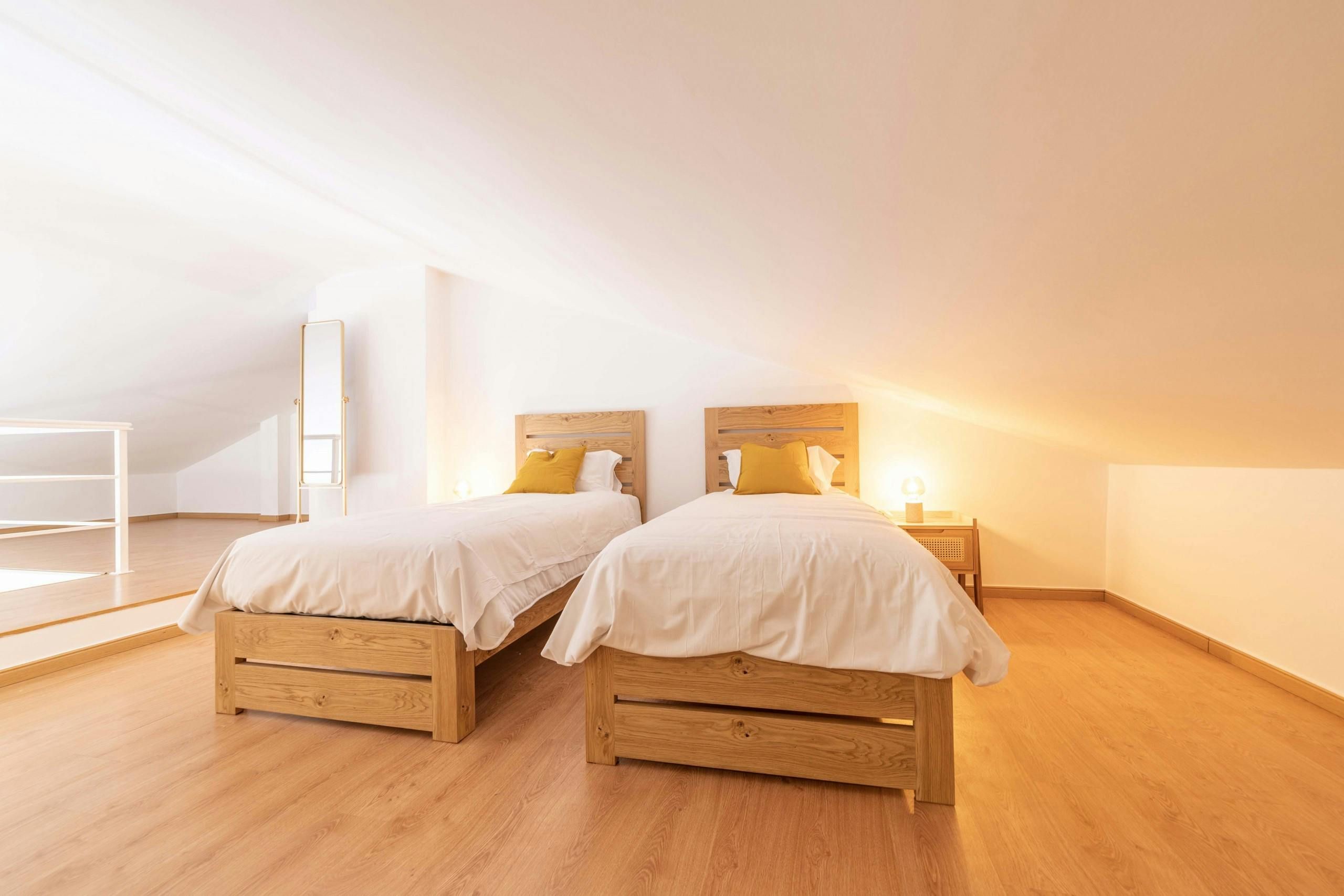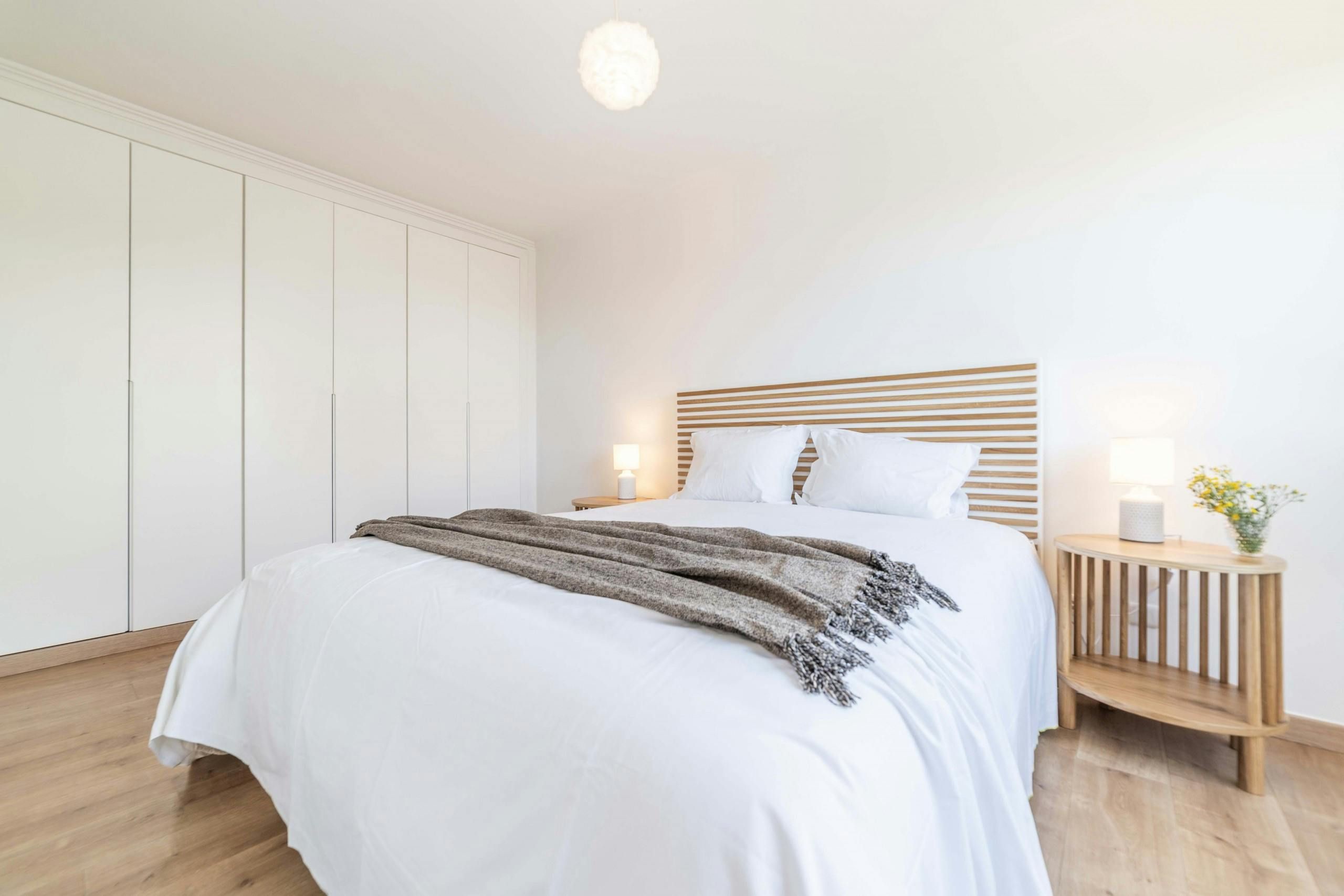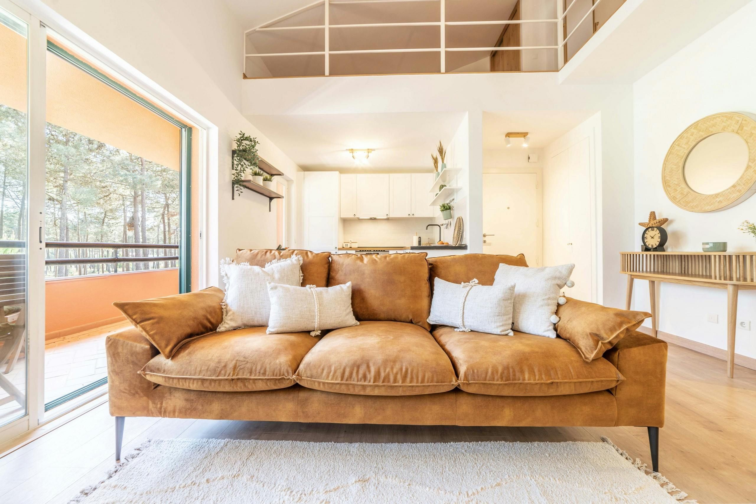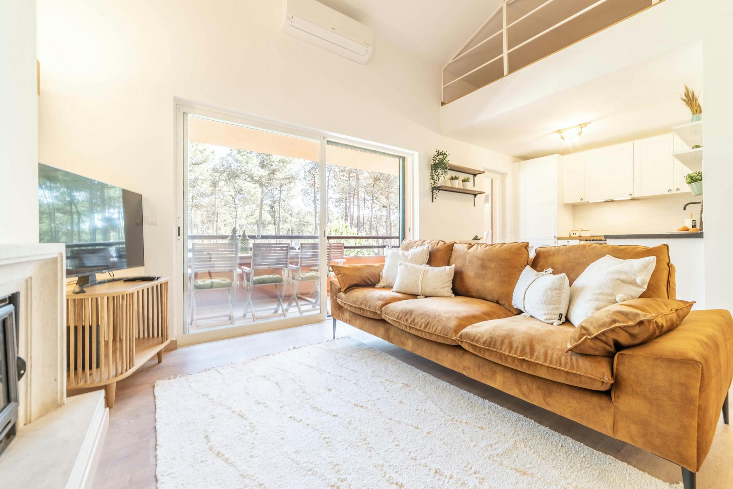 Introducing Apartment Bela Vista, nestled within the renowned Aroeira Golf Resort. This exceptional holiday rental offers a multitude of amenities, including two remarkable 18-hole championship golf courses, four tennis courts, a tropical swimming pool, and a vibrant shopping mall. As you step inside, the contemporary design and abundant natural light create a warm and inviting atmosphere. The highlight of this splendid abode is the breathtaking view overlooking one of Europe's finest golf courses, providing an idyllic setting for relaxation and outdoor activities. The main floor features a fully equipped kitchen, an open-plan living and dining area, a cozy bedroom with a double bed, and a bathroom with a relaxing bathtub. Upstairs, there is a mezzanine area with two single beds and one trundle bed, as well as another bathroom with a refreshing shower. Outdoor amenities include a balcony with a dining table and barbecue area, a laundry balcony, and convenient parking availability. Come experience the perfect blend of luxury and tranquility at this picturesque holiday retreat.