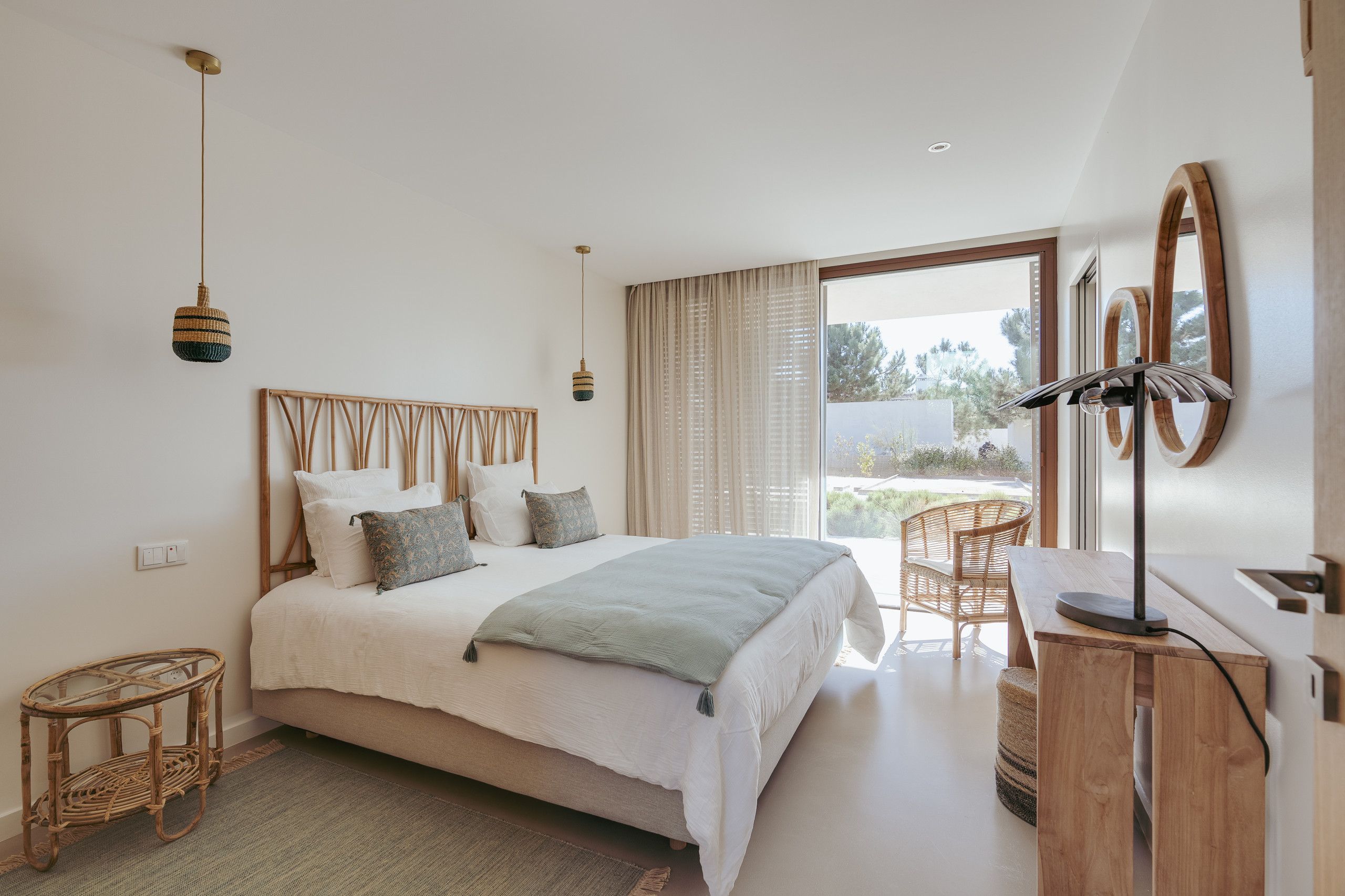 Peace, privacy and beautiful views – this home welcomes you to enjoy it all from the heart of Comporta. You can also savour blissful swims in the pool, lazy afternoon siestas in the shade and long barbecue meals served on the terrace. Daily housekeeping is included in your stay and your host can help organise extras like private chefs and yoga sessions for an additional fee. You might never want to leave this sanctuary, but you can walk to the nearest restaurants and it’s just 1 kilometre to the nearest beach.