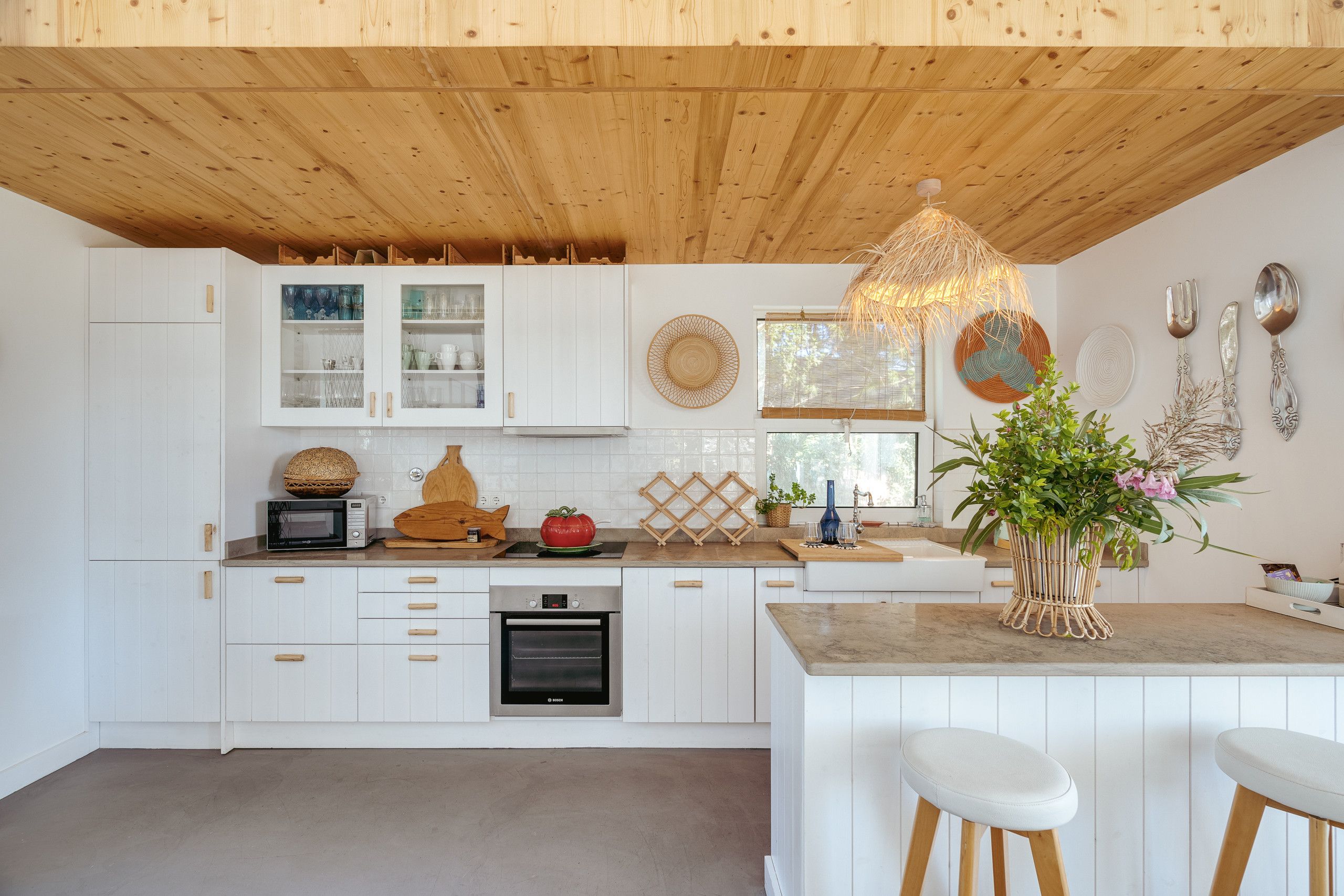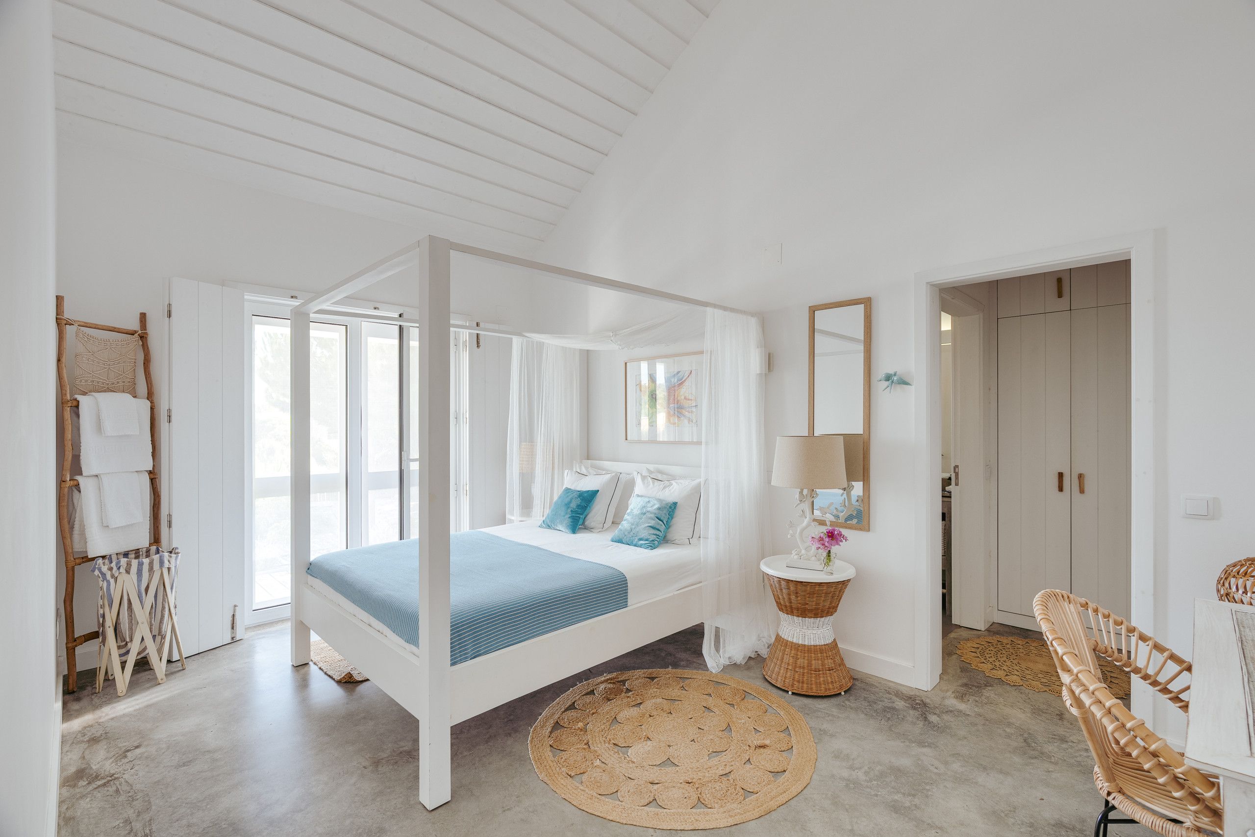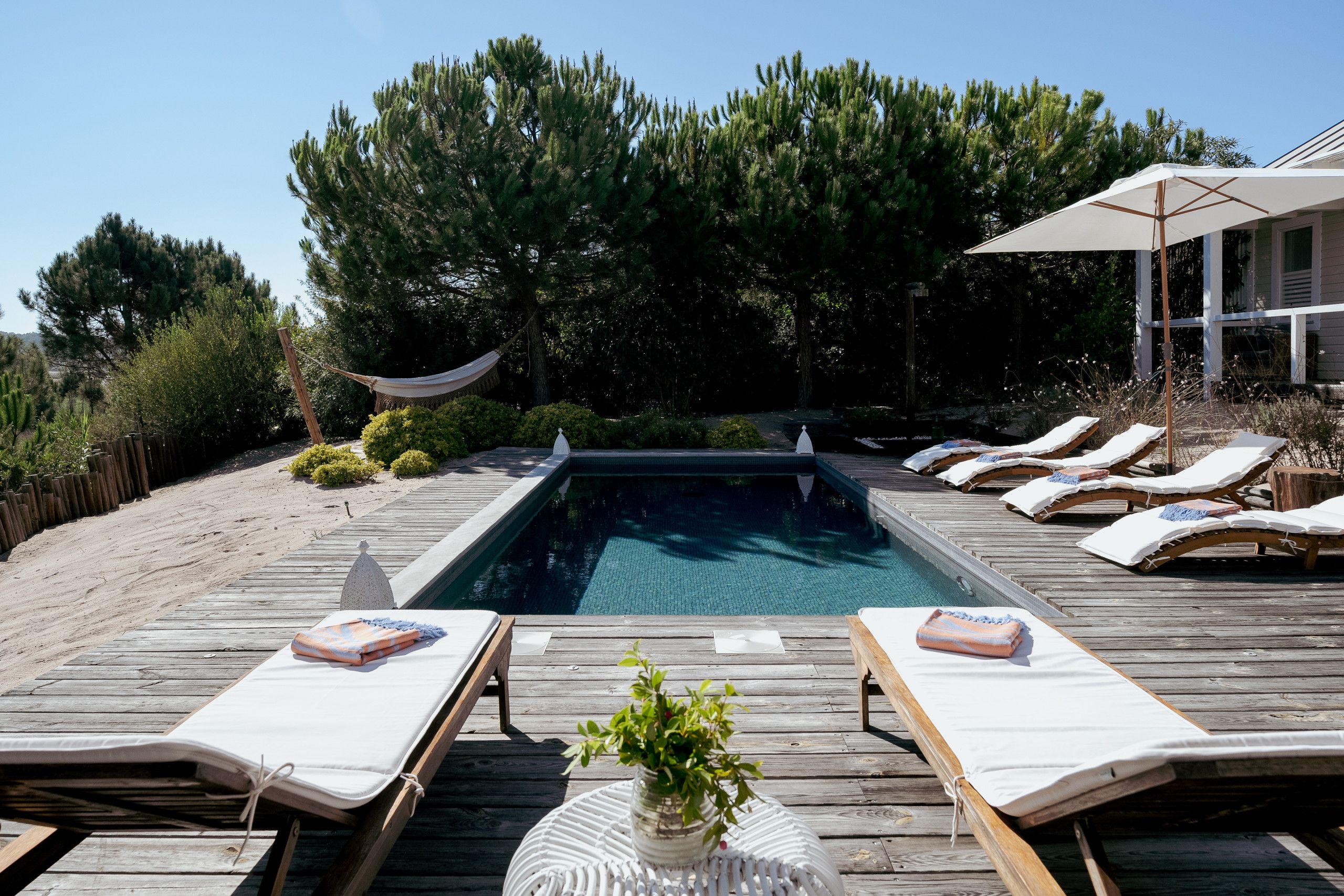 This pristine villa is ideal for exploring the luxury beach town of Comporta. Set in the village of Carvalhal, you're only a short walk from local restaurants and a five-minute drive to the sandy beach. Inside, the interiors have coastal boho down to a fine art, with white walls, blue accents and natural textures. The mezzanine level above the kitchen makes for a cosy den that kids will love. At full capacity, eight guests will share two bathrooms, so some coordination may be needed. But with a private pool and a garden overlooking green fields, there are worse places to wait for a shower.