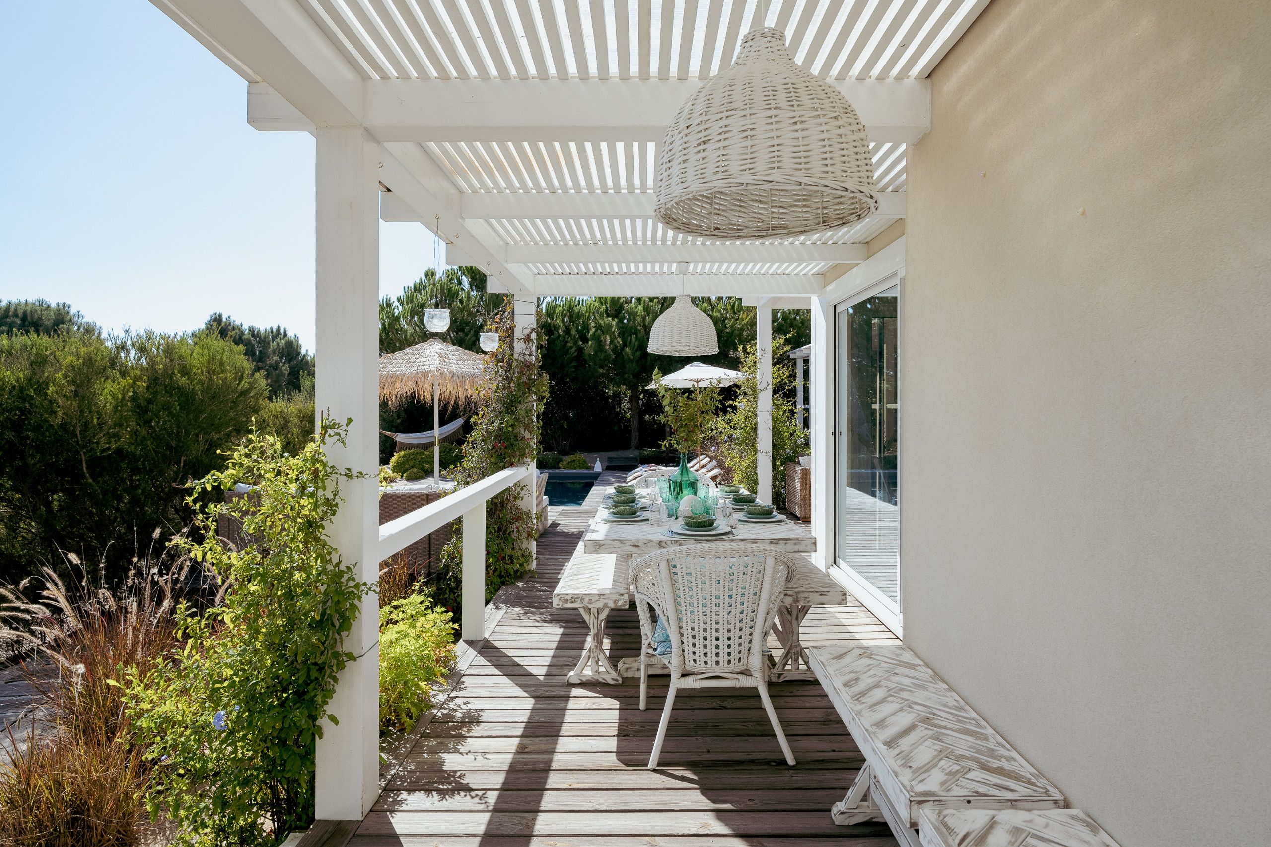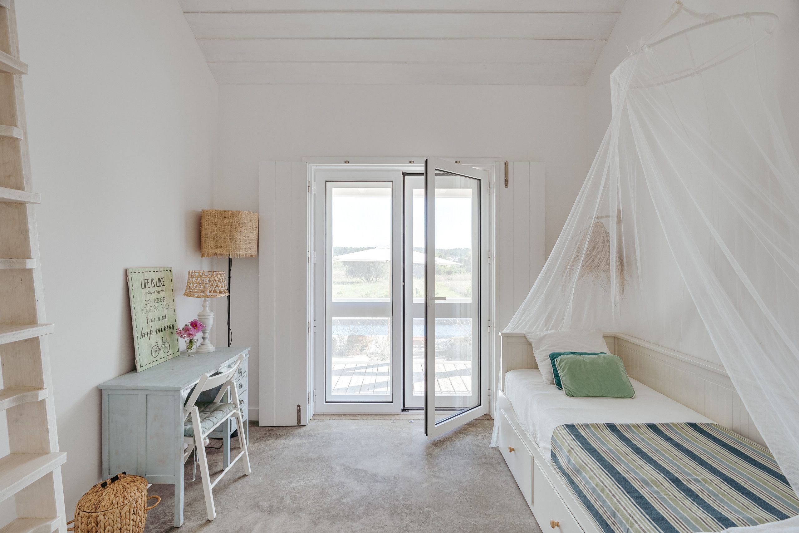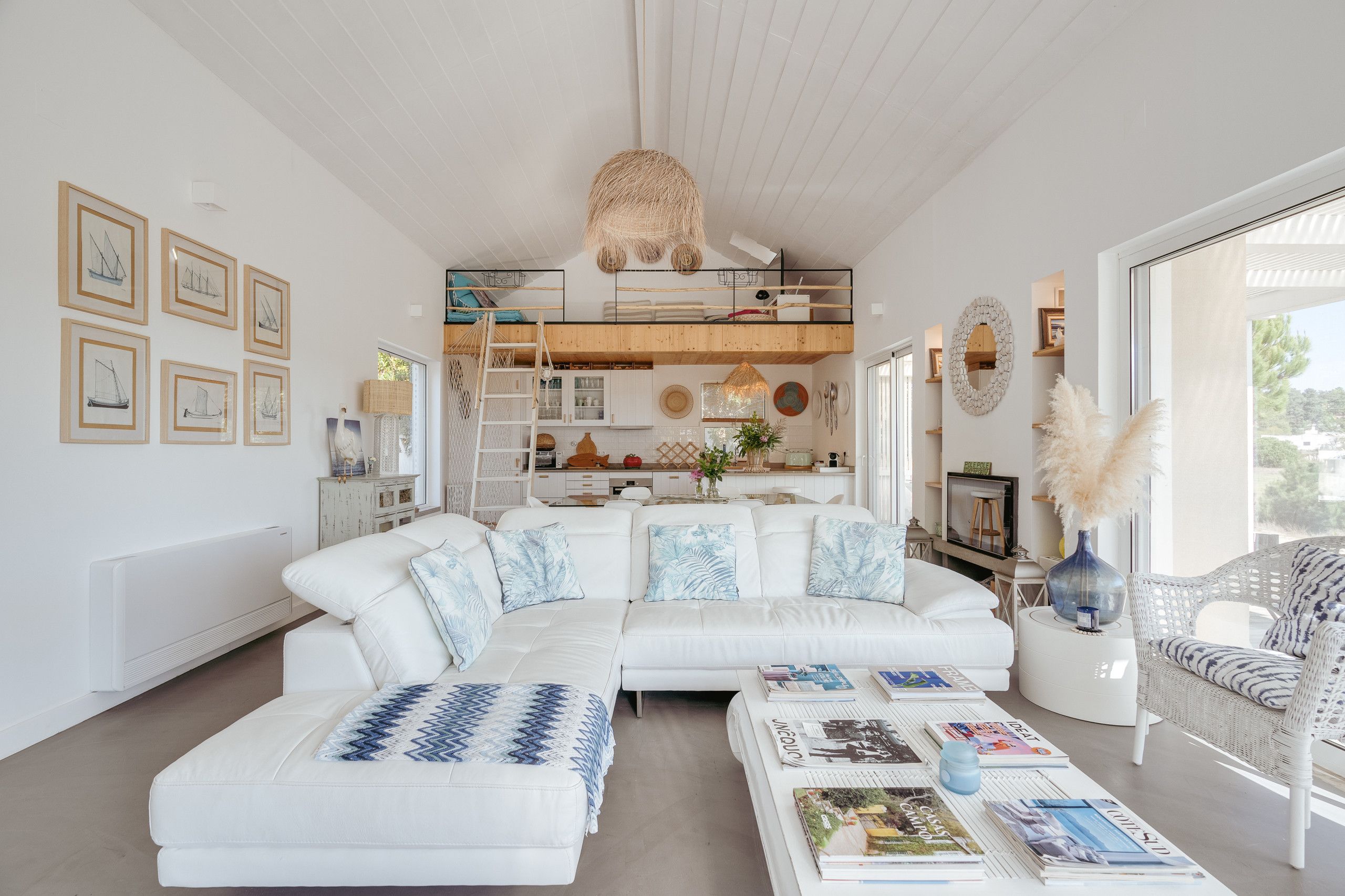 This pristine villa is ideal for exploring the luxury beach town of Comporta. Set in the village of Carvalhal, you're only a short walk from local restaurants and a five-minute drive to the sandy beach. Inside, the interiors have coastal boho down to a fine art, with white walls, blue accents and natural textures. The mezzanine level above the kitchen makes for a cosy den that kids will love. At full capacity, eight guests will share two bathrooms, so some coordination may be needed. But with a private pool and a garden overlooking green fields, there are worse places to wait for a shower.