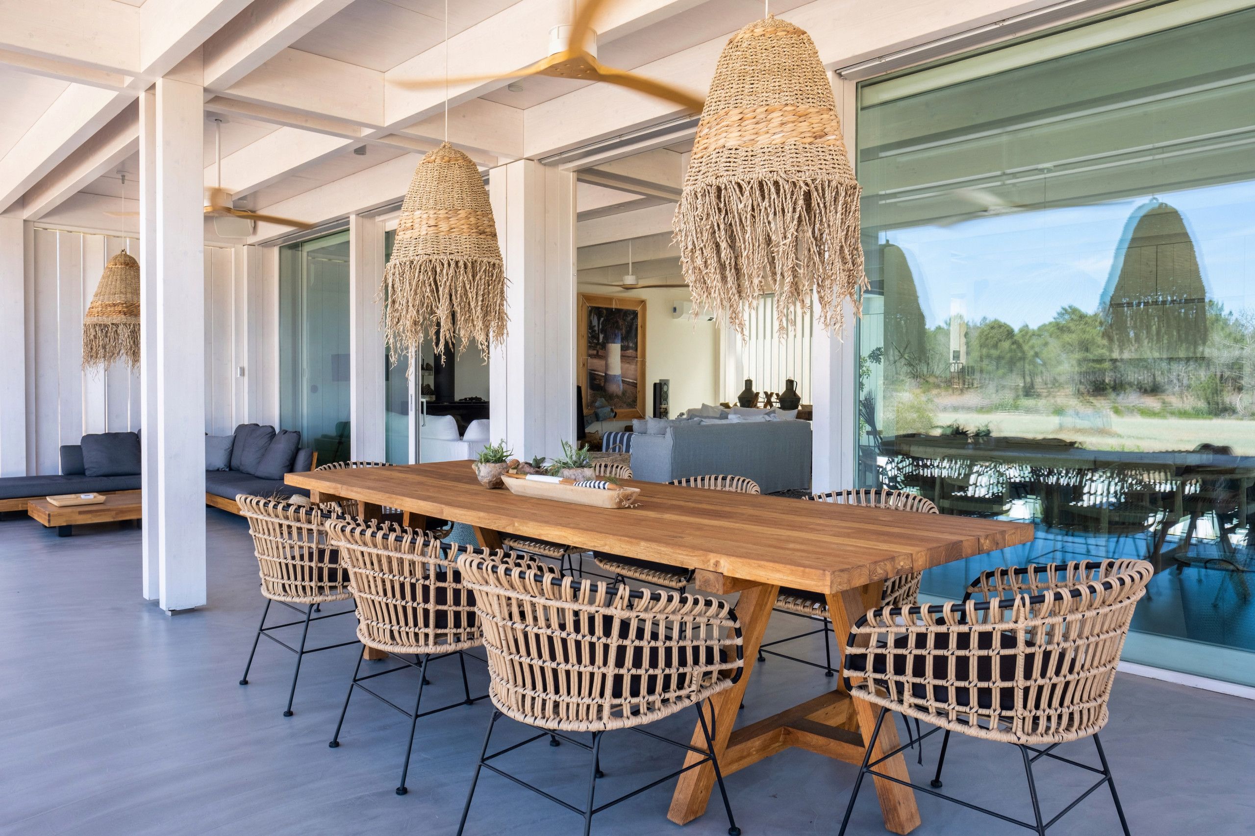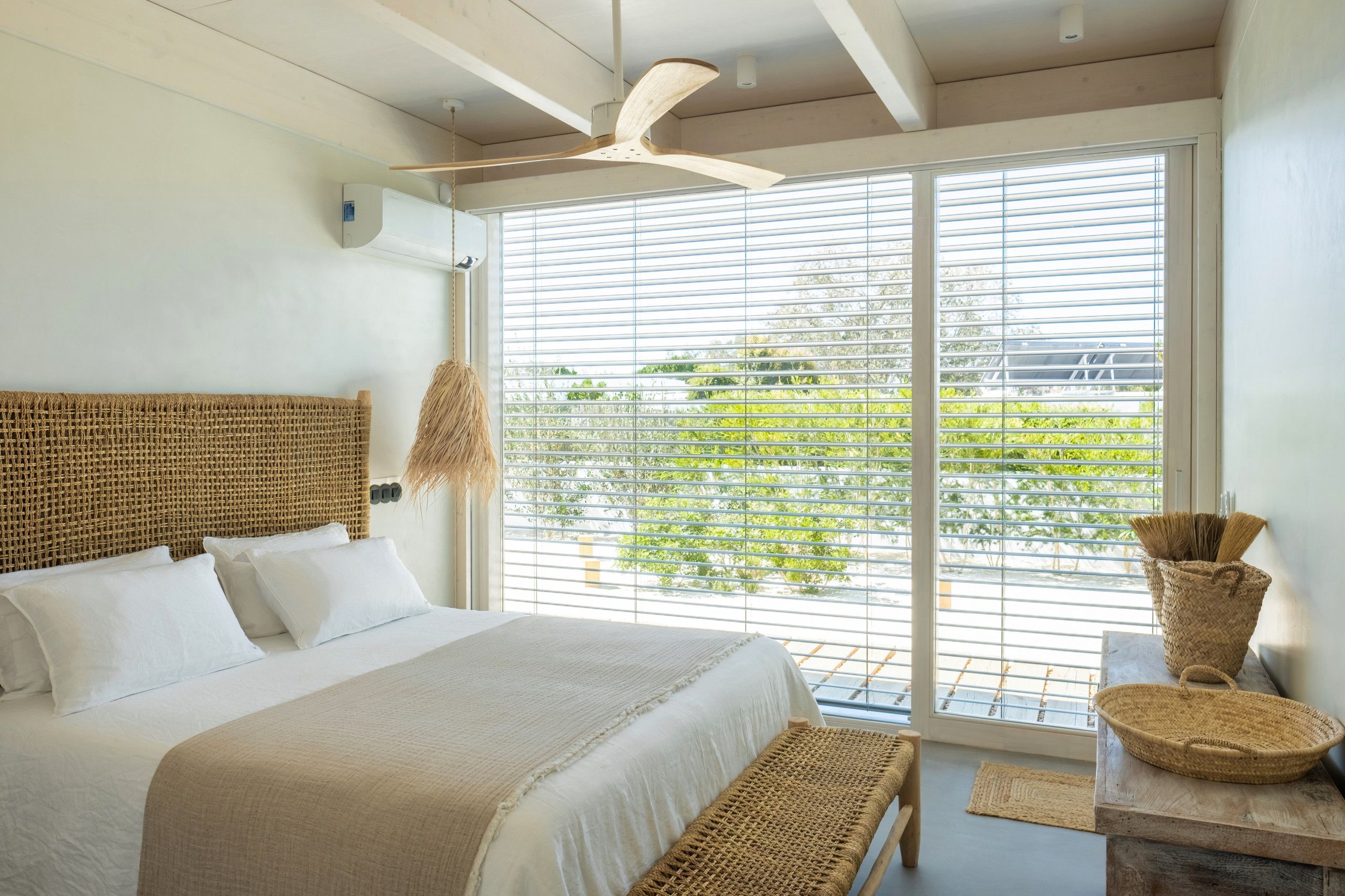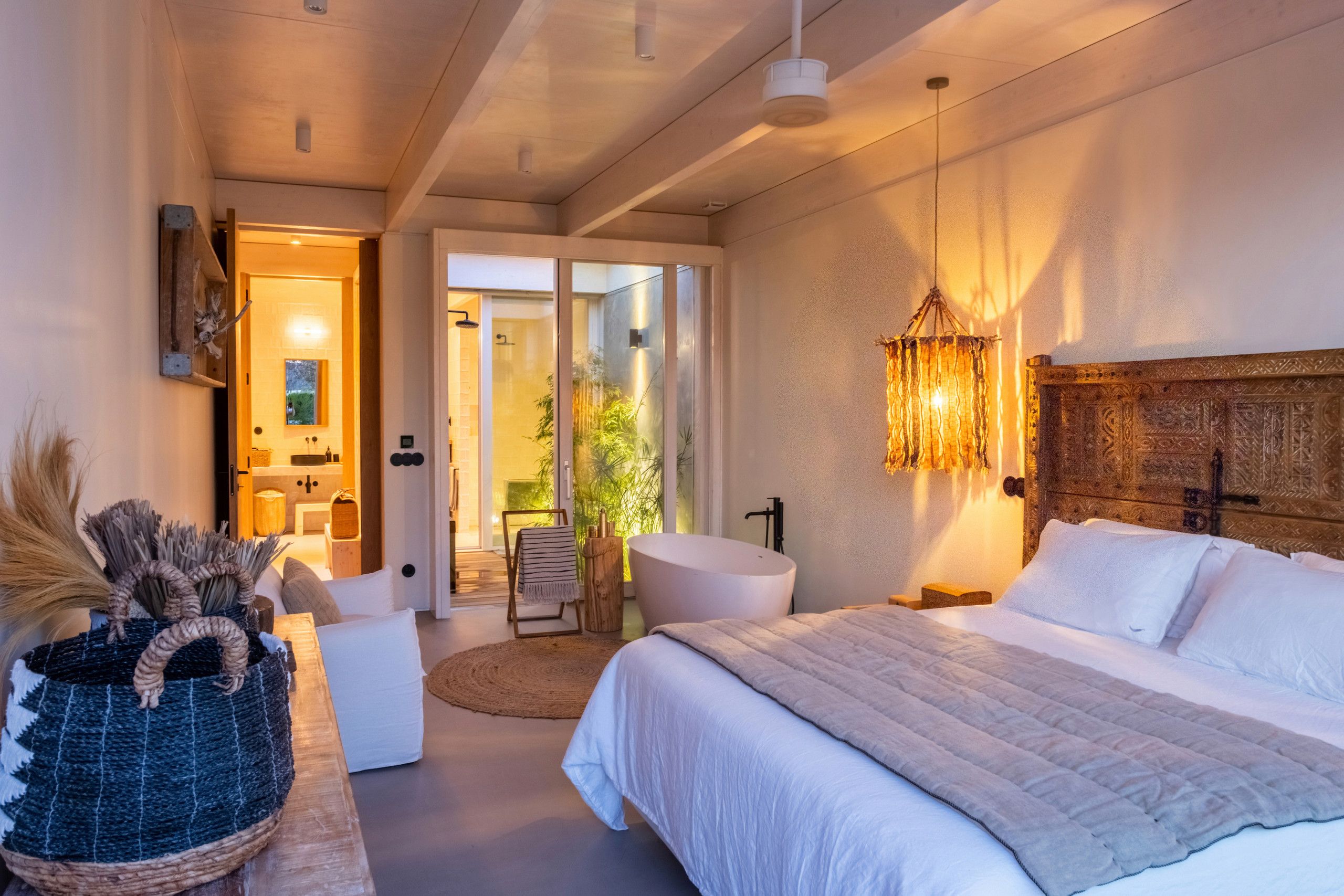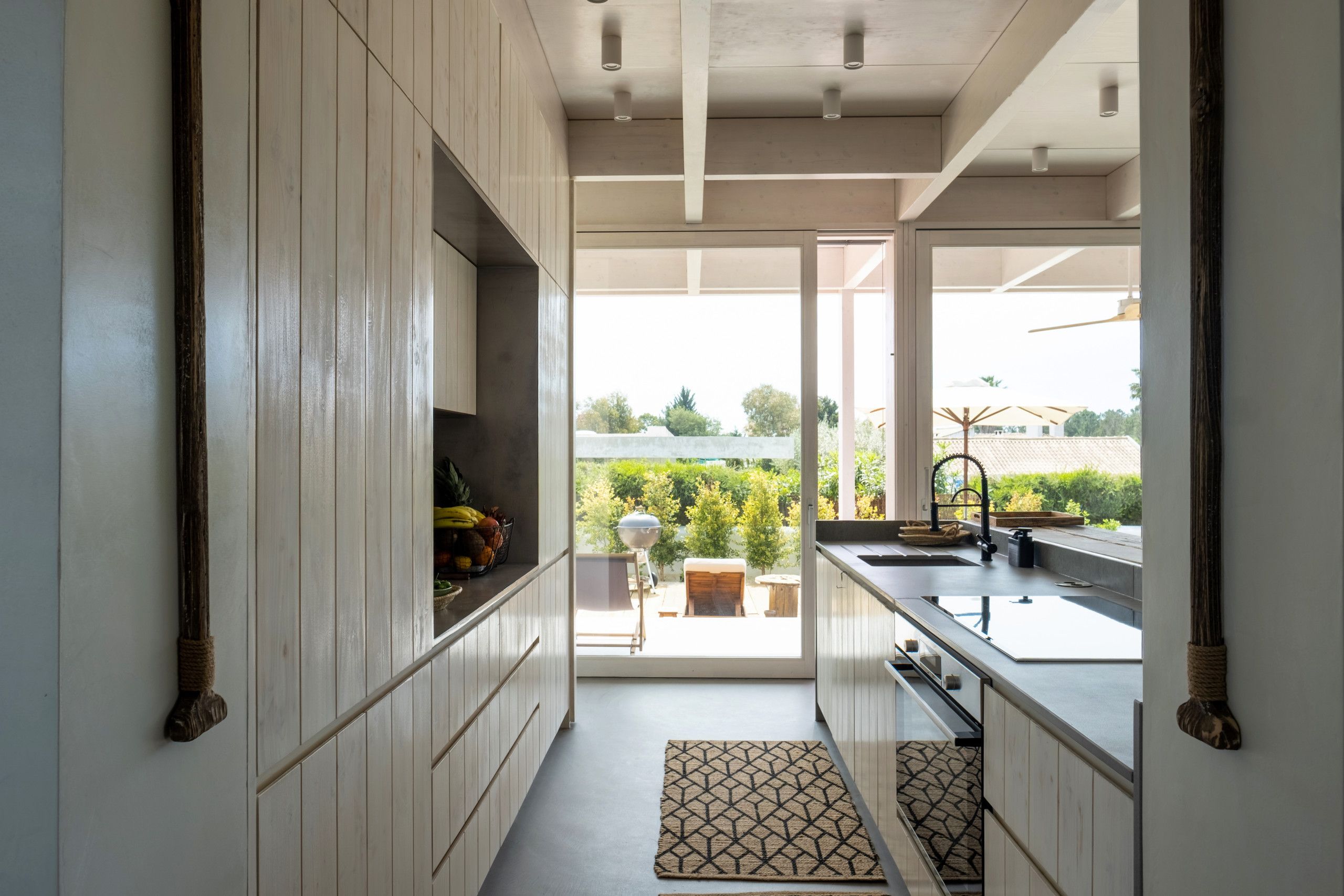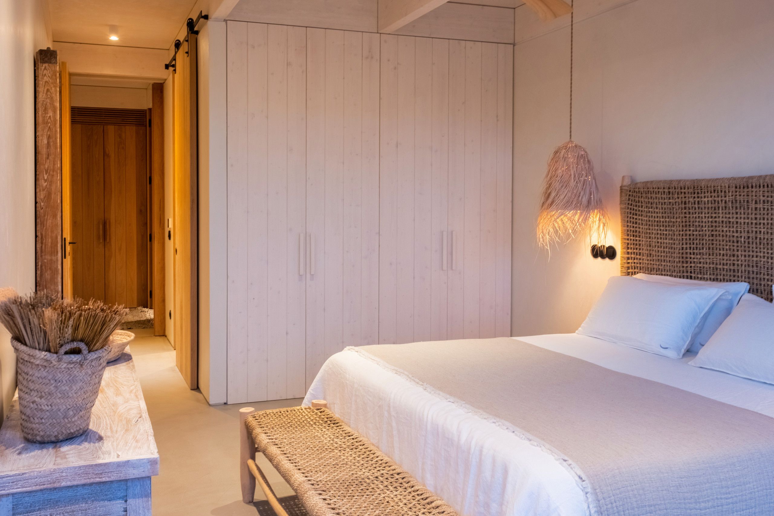 Found to the south of Comporta, this stunningly designed and furnished villa is perfect for families and friend groups seeking an idyllic coastal retreat. The home flows elegantly from living room to dining area to kitchen, each of which is bright, expansive, and fully equipped. The four bedrooms are just as comfortable, with two sharing a bathroom from either side and one downstairs triple room ideal for any younger guests who don't mind sharing. The heated pool area is stunning, more for aesthetic relaxation than morning lengths, while the adjoining alfresco dining table is one of many outdoor areas on the premises that are great for unwinding with a book and a beverage. If you have a day trip in mind, you can also reach the local beach in around fifteen minutes by car.