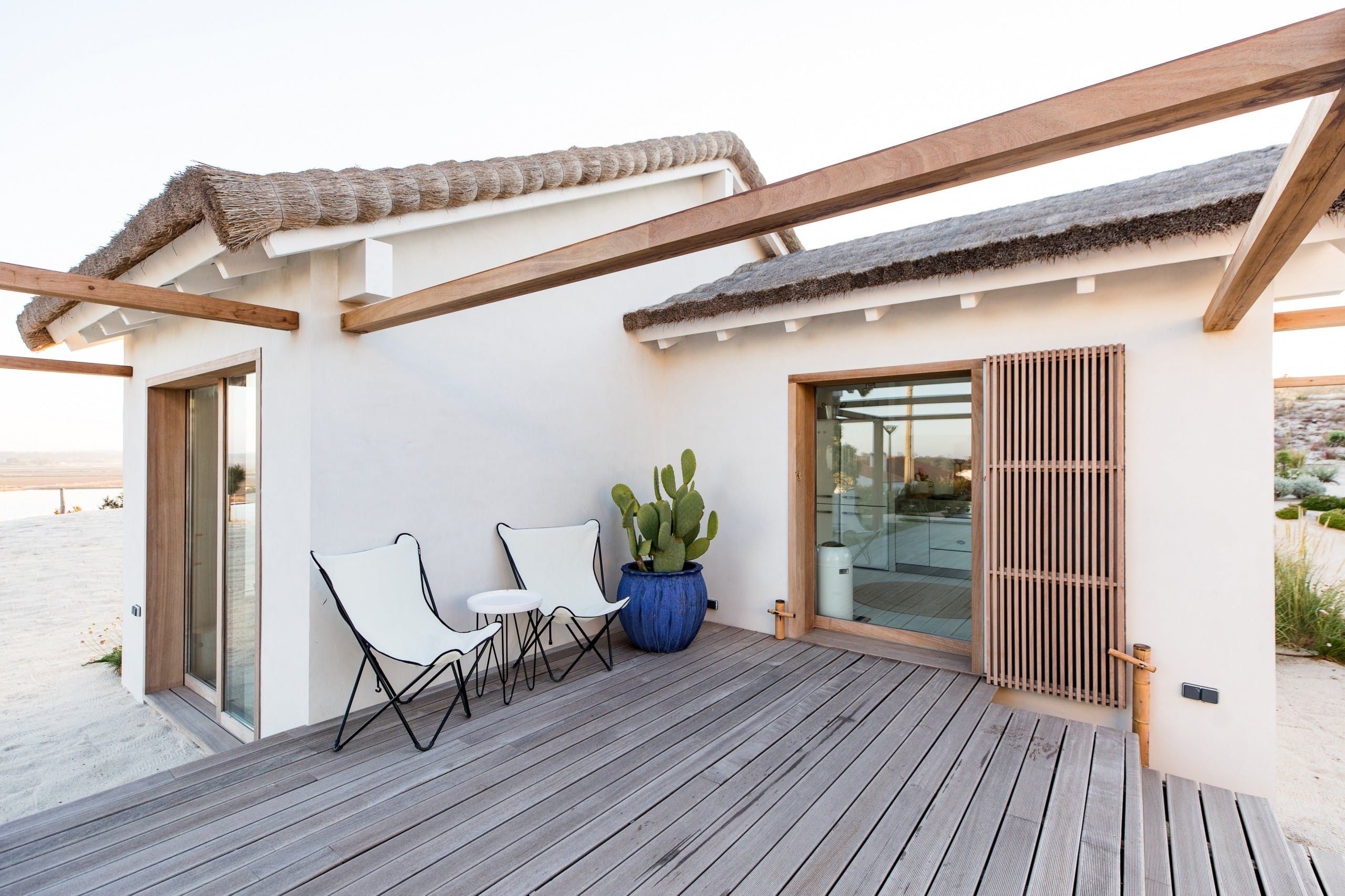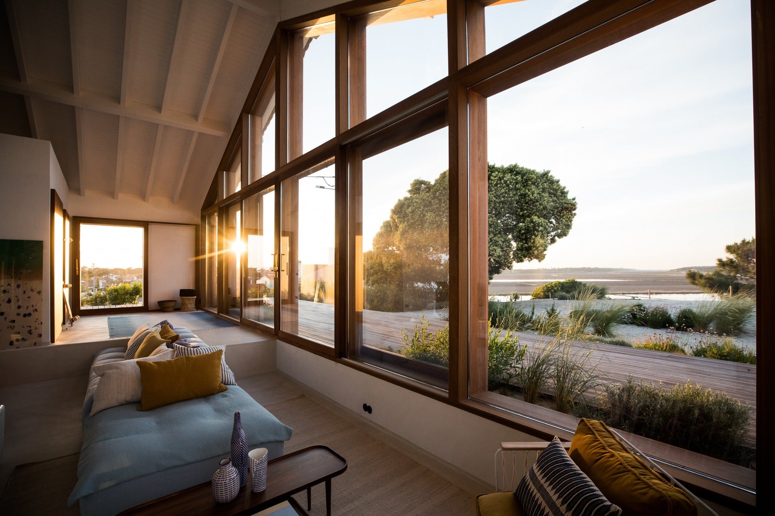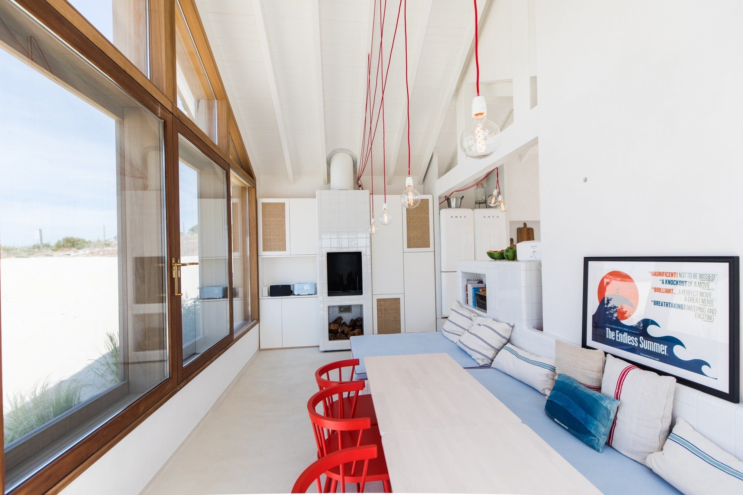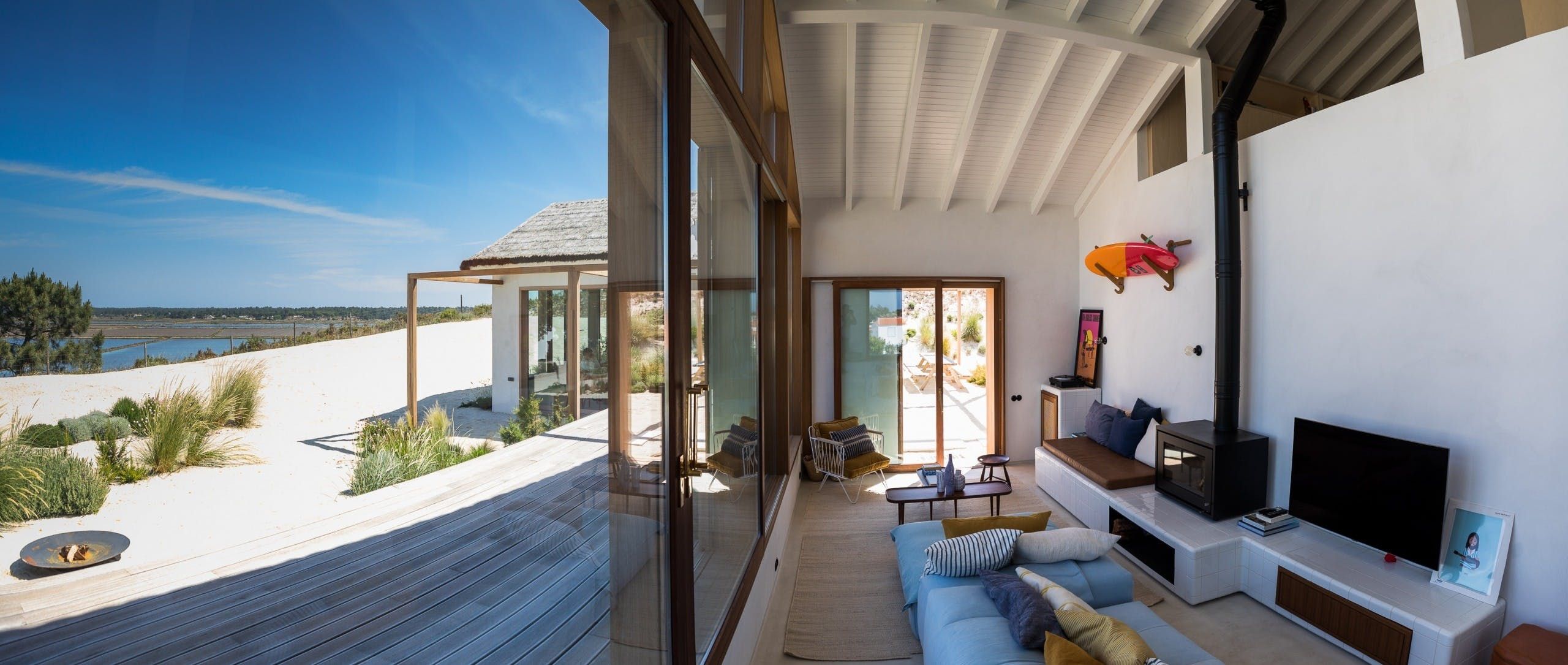 It's pretty clear what was at the top of the list for the architect that designed this intriguing home in Comporta – natural light and lots of it. Enormous walls of glass line the sides of the home and the dazzlingly white interior design only accentuates this plentiful natural asset. These huge windows also have the added benefit of looking out to peaceful views of local rice fields, too.