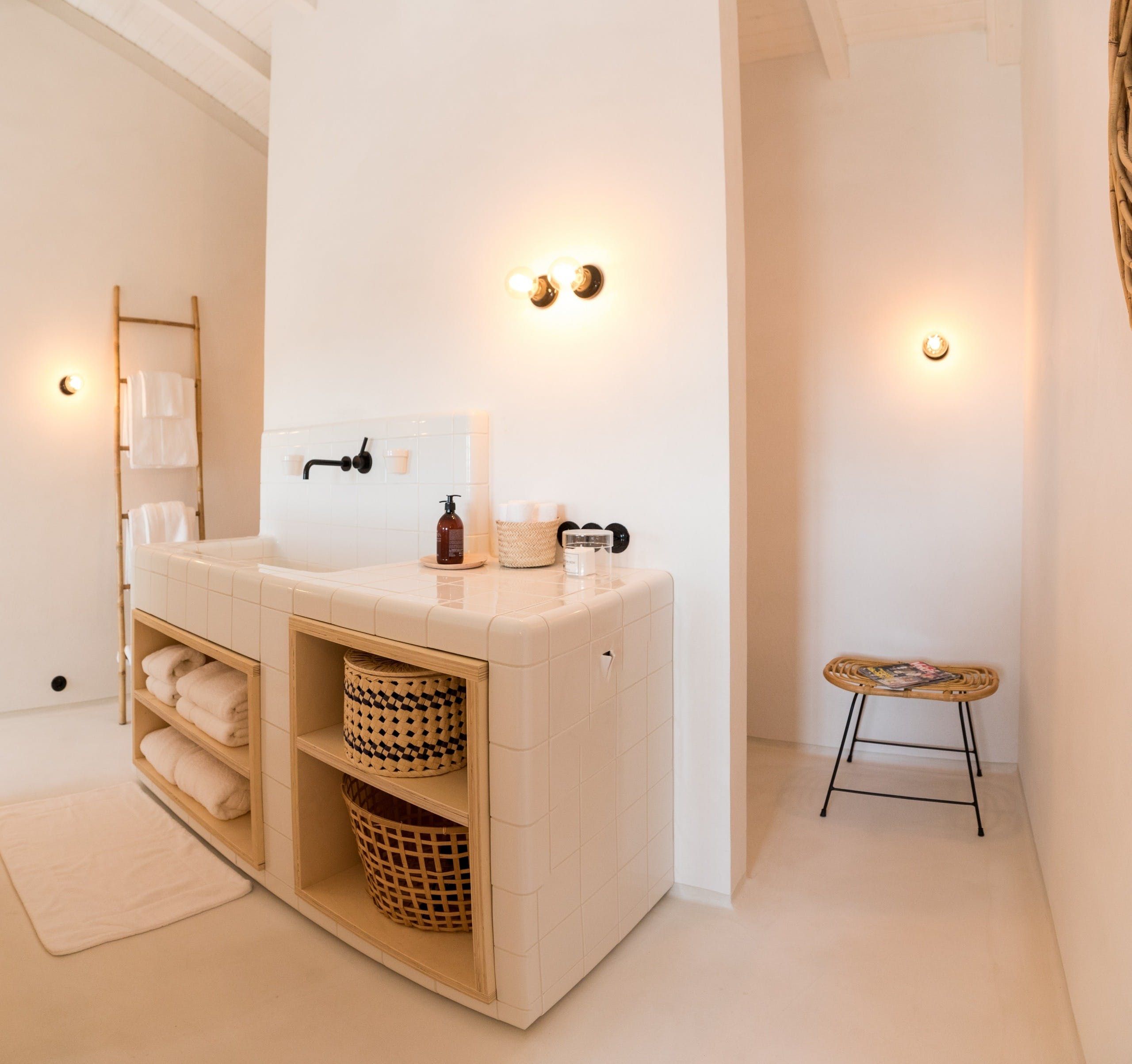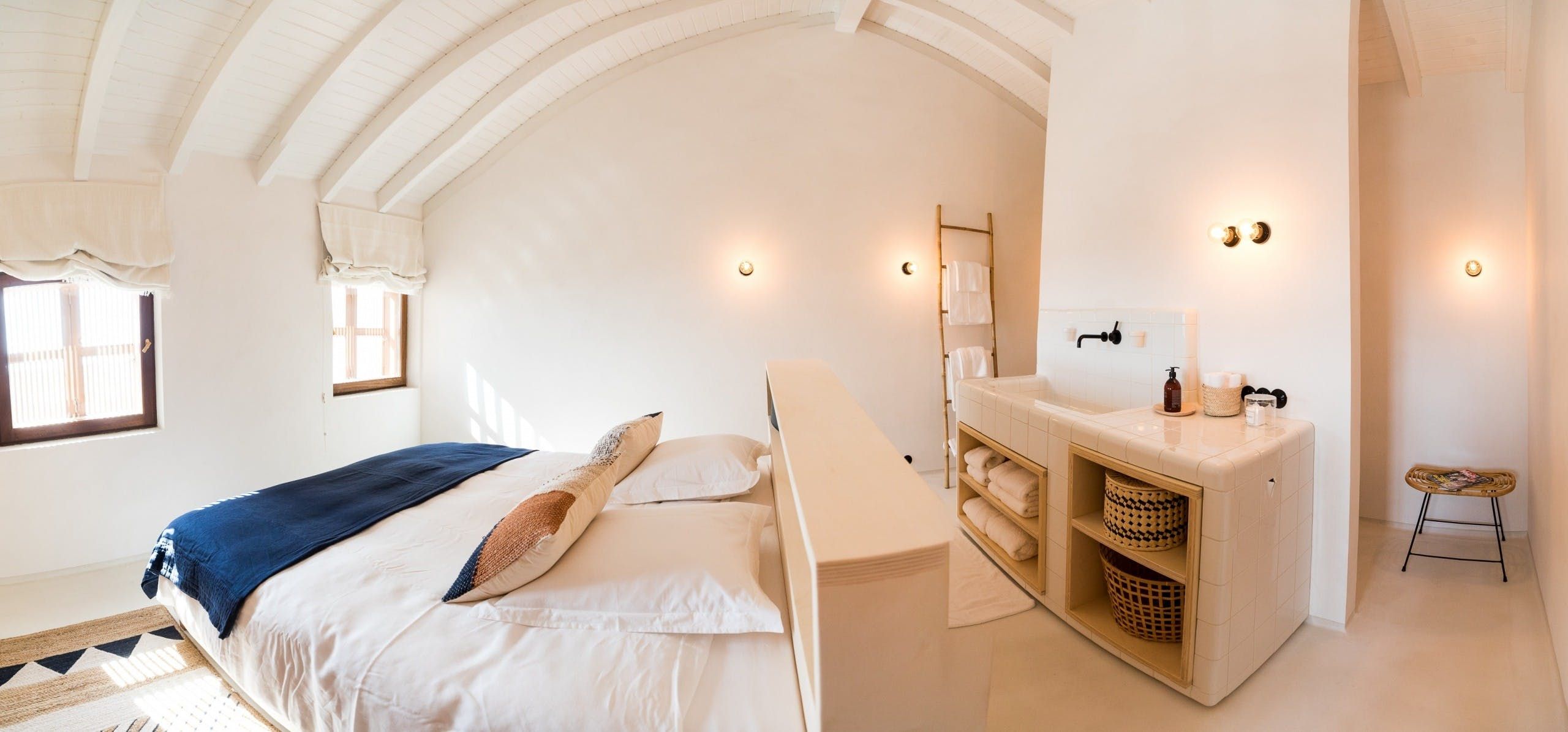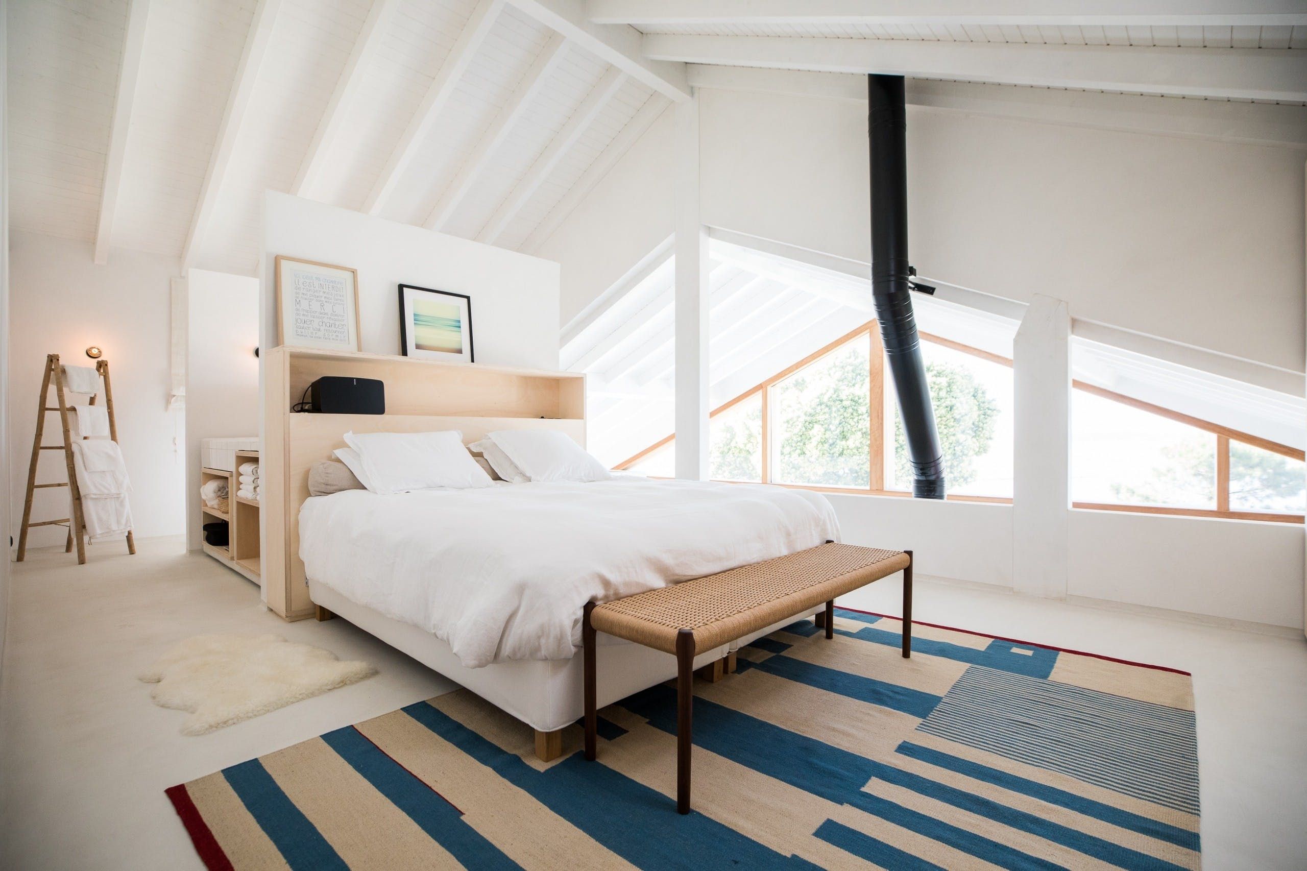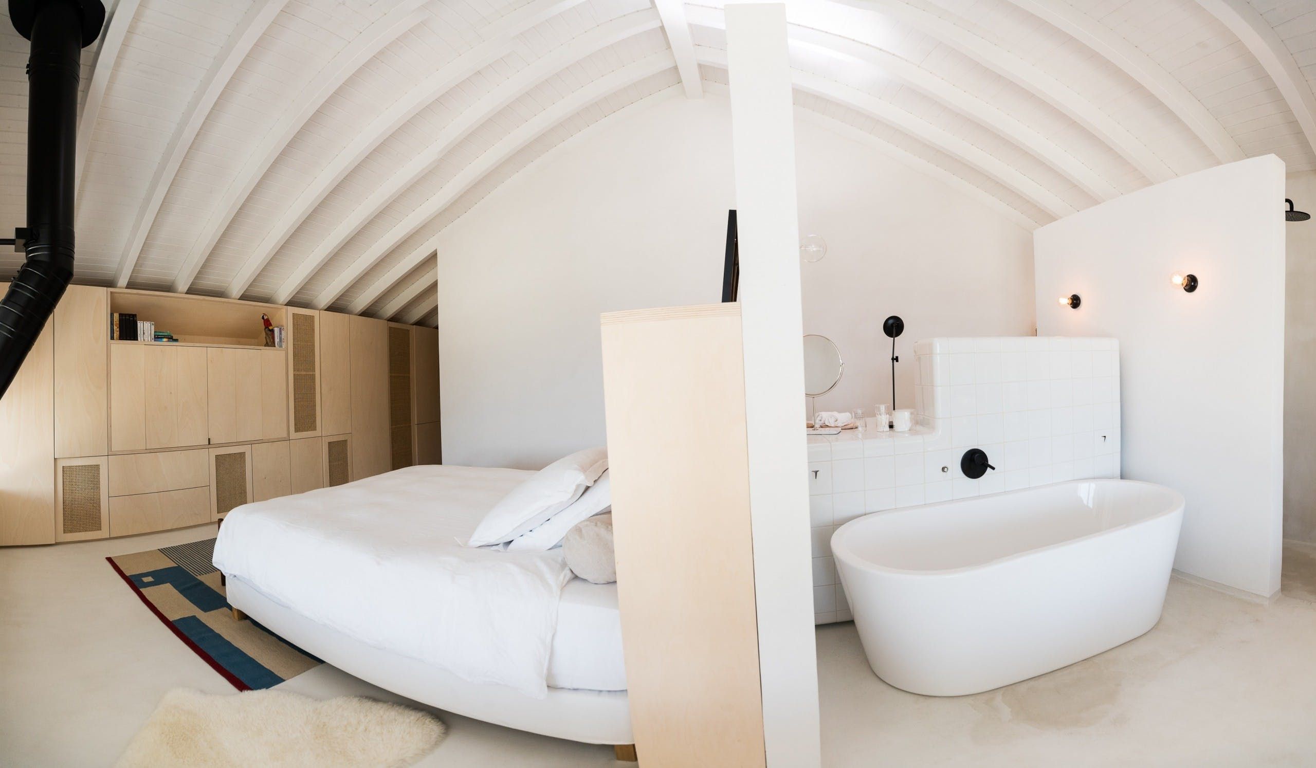 It's pretty clear what was at the top of the list for the architect that designed this intriguing home in Comporta – natural light and lots of it. Enormous walls of glass line the sides of the home and the dazzlingly white interior design only accentuates this plentiful natural asset. These huge windows also have the added benefit of looking out to peaceful views of local rice fields, too.