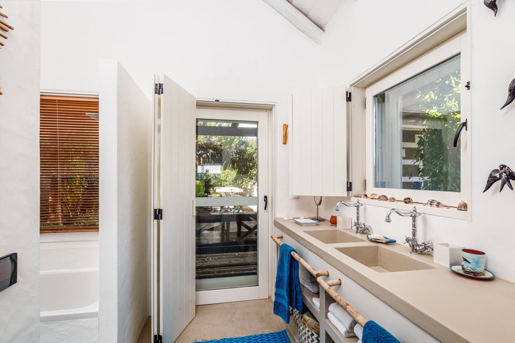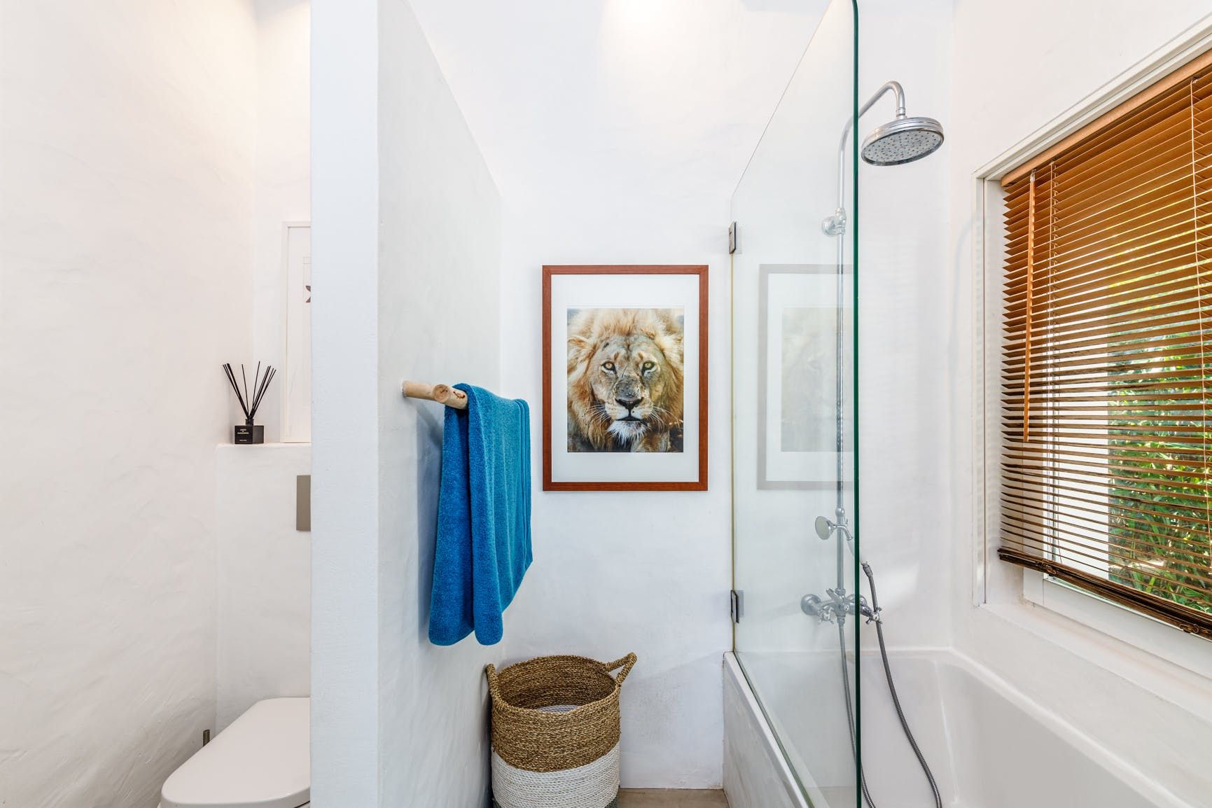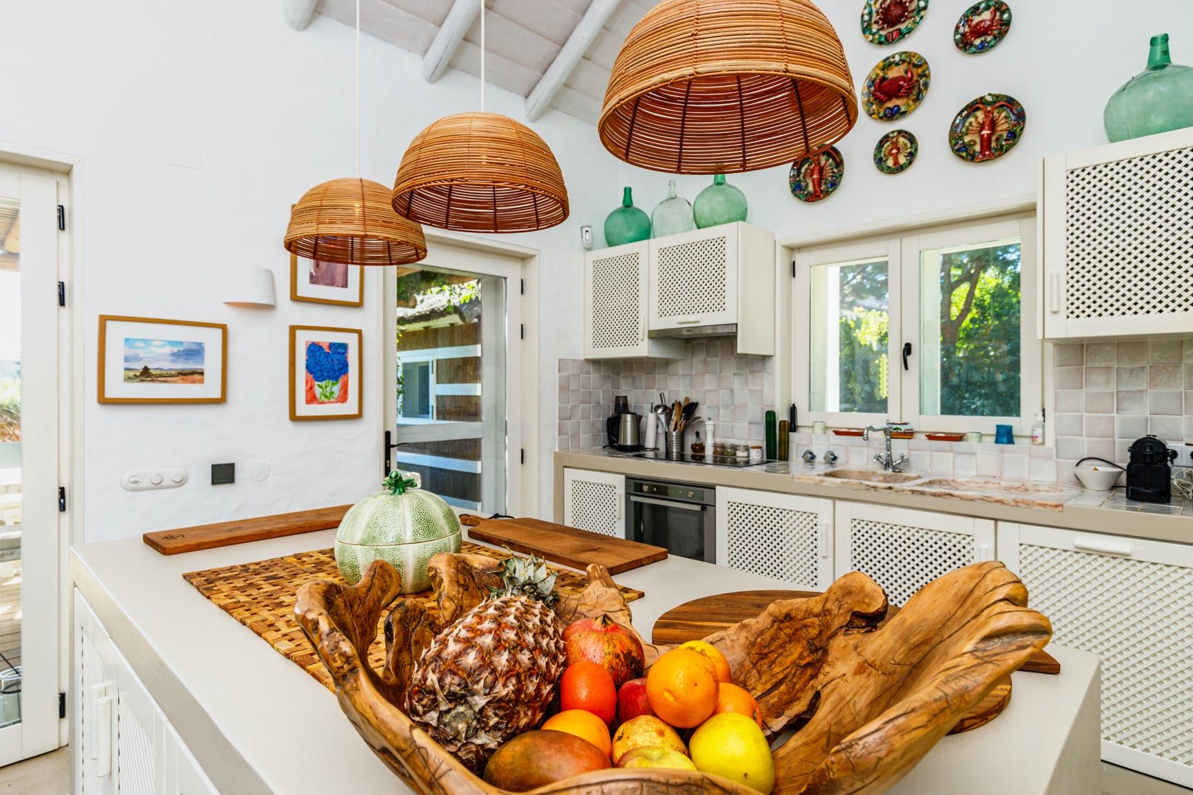 What makes this home particularly special, perhaps, is that it comprises three separate, single-level villas, meaning every bedroom has its own terrace and easy access to the emerald green swimming pool that takes centre stage in the courtyard. This means there's plenty of privacy, whether you want to take a moment to meditate in the morning sunshine or sip a cup of coffee in a comfy chair. The villas are surrounded by lush green gardens, complete with a barbecue and patio area that was designed with alfresco feasts in mind – truly a treat to come home to after a day of exploring.