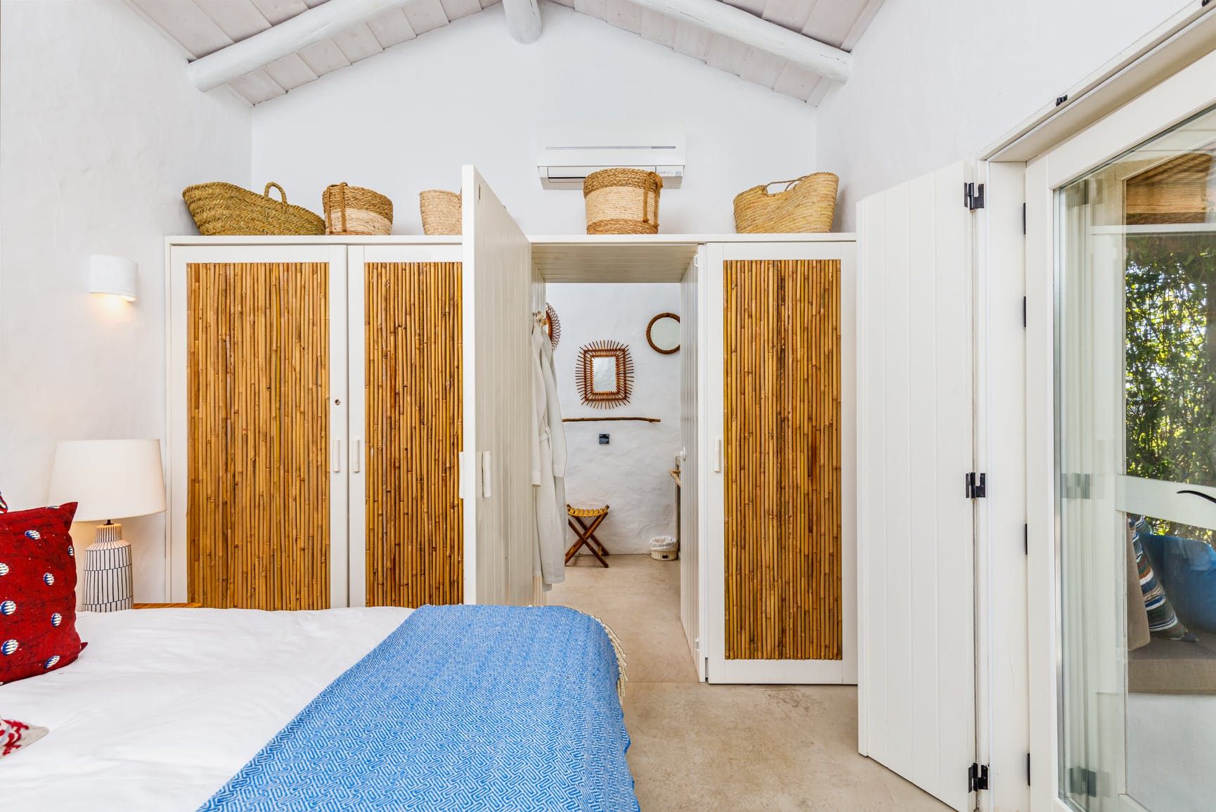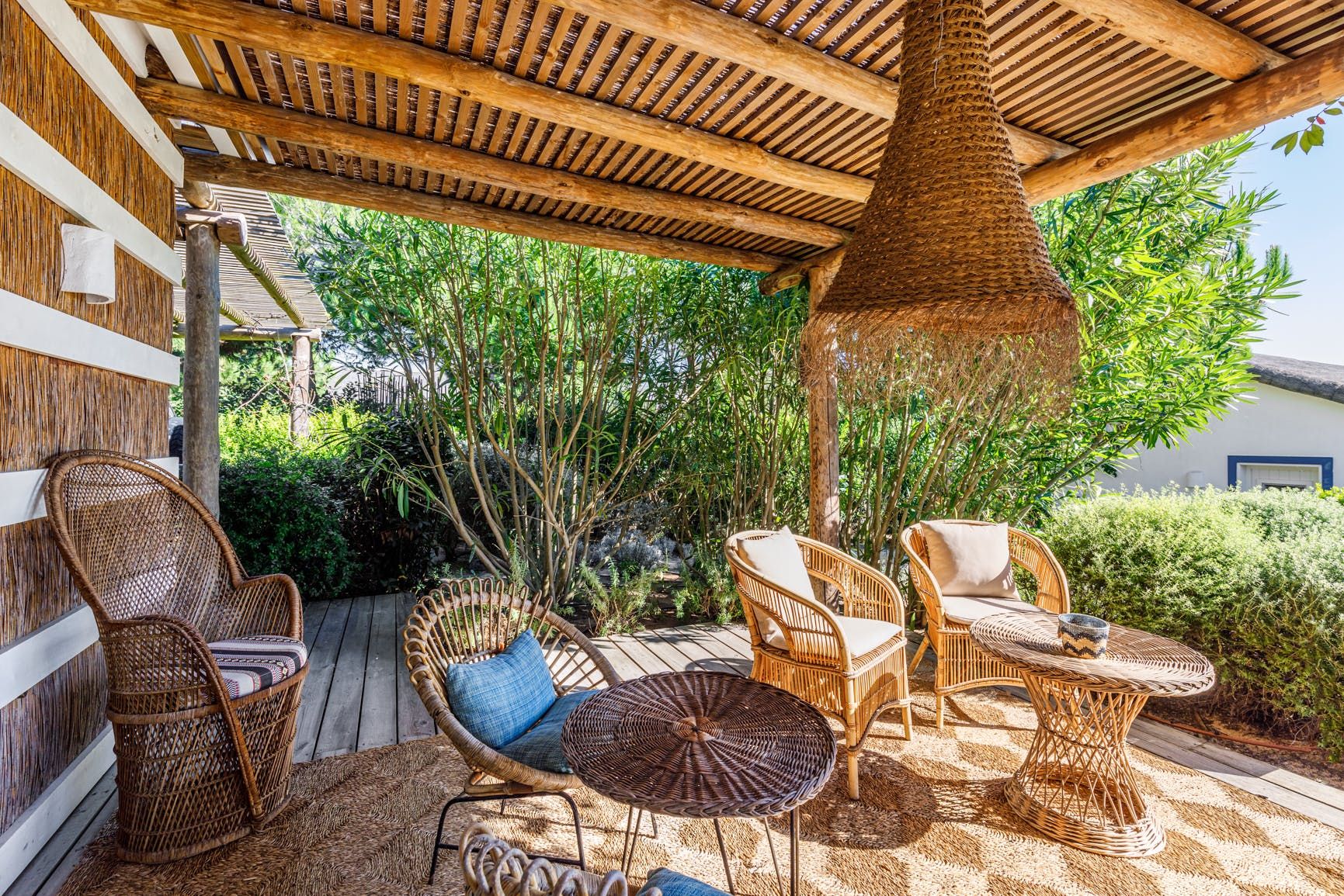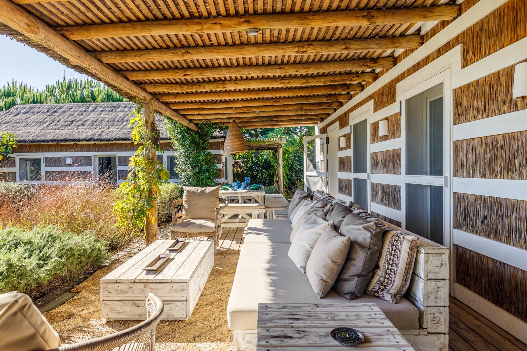 In the beautiful village of Comporta, among the sandy beaches and grass-topped dunes, the stripey green rice fields and yellow carpets of flowers, this home offers a secluded retreat on Portugal's west coast. The exterior is classic Comporta, with woven roofs and a laid-back cabana-style.