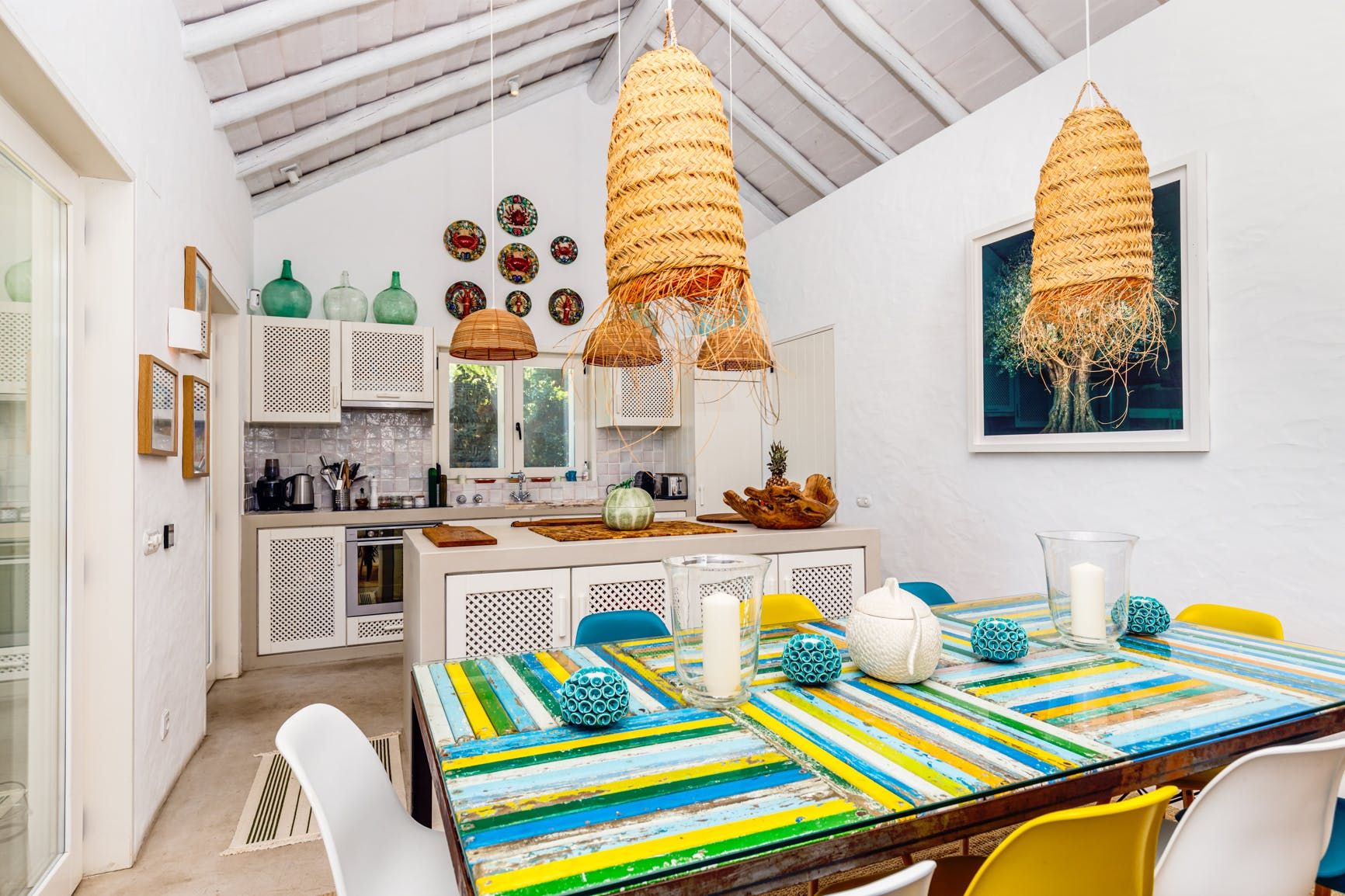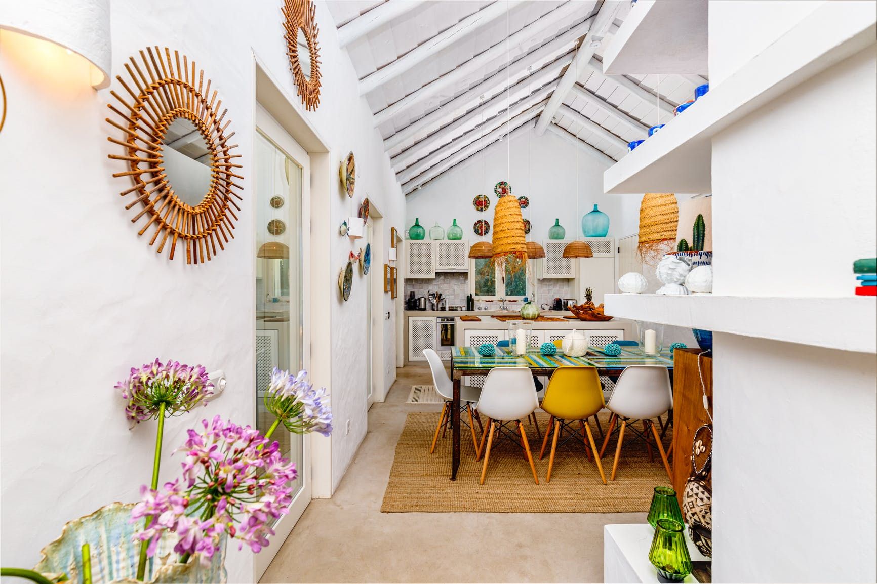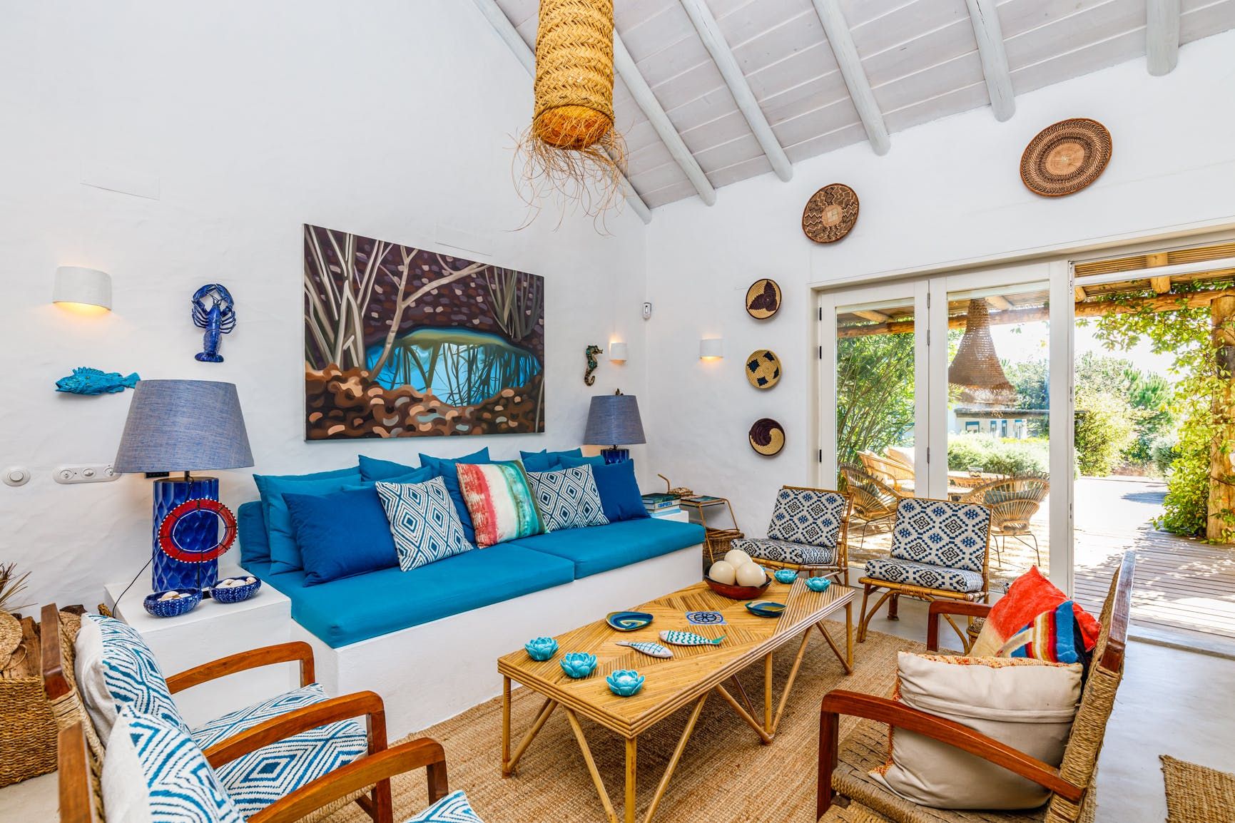 In the beautiful village of Comporta, among the sandy beaches and grass-topped dunes, the stripey green rice fields and yellow carpets of flowers, this home offers a secluded retreat on Portugal's west coast. The exterior is classic Comporta, with woven roofs and a laid-back cabana-style.
