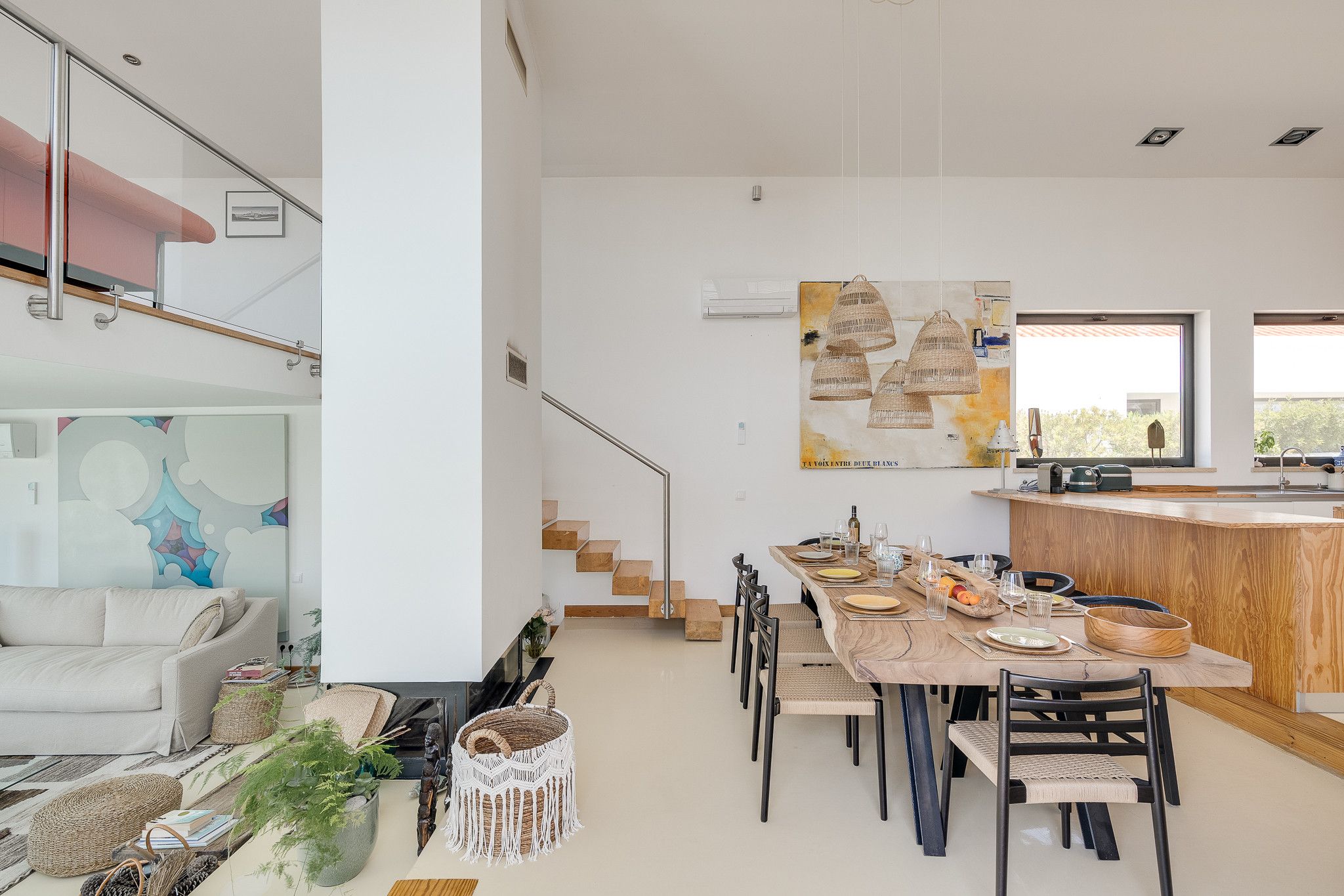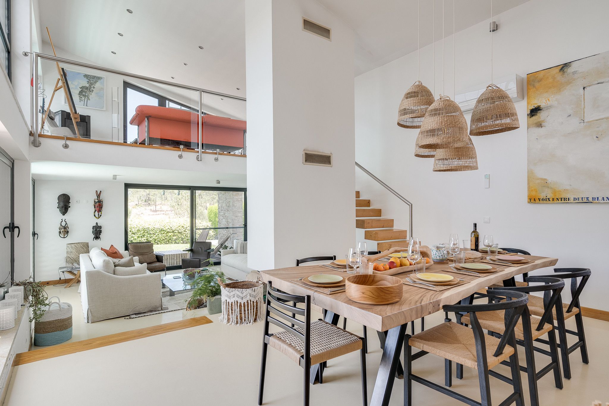 Just a short stroll from the beach, this contemporary home opens its doors to a laidback coastal getaway. Outside, there’s a heated pool for refreshing swims and a terrace for alfresco dining and drinks. Inside, the rooms are just as inviting with a living area and a fire for cosy gatherings, a mezzanine level with a desk for remote workers and three thoughtfully designed bedrooms (each with an en-suite bathroom). Daily housekeeping is included in your stay and your host is on hand to help organise special extras like bike rentals and private chefs. You’ll also find the nearest restaurants and shops within easy driving distance