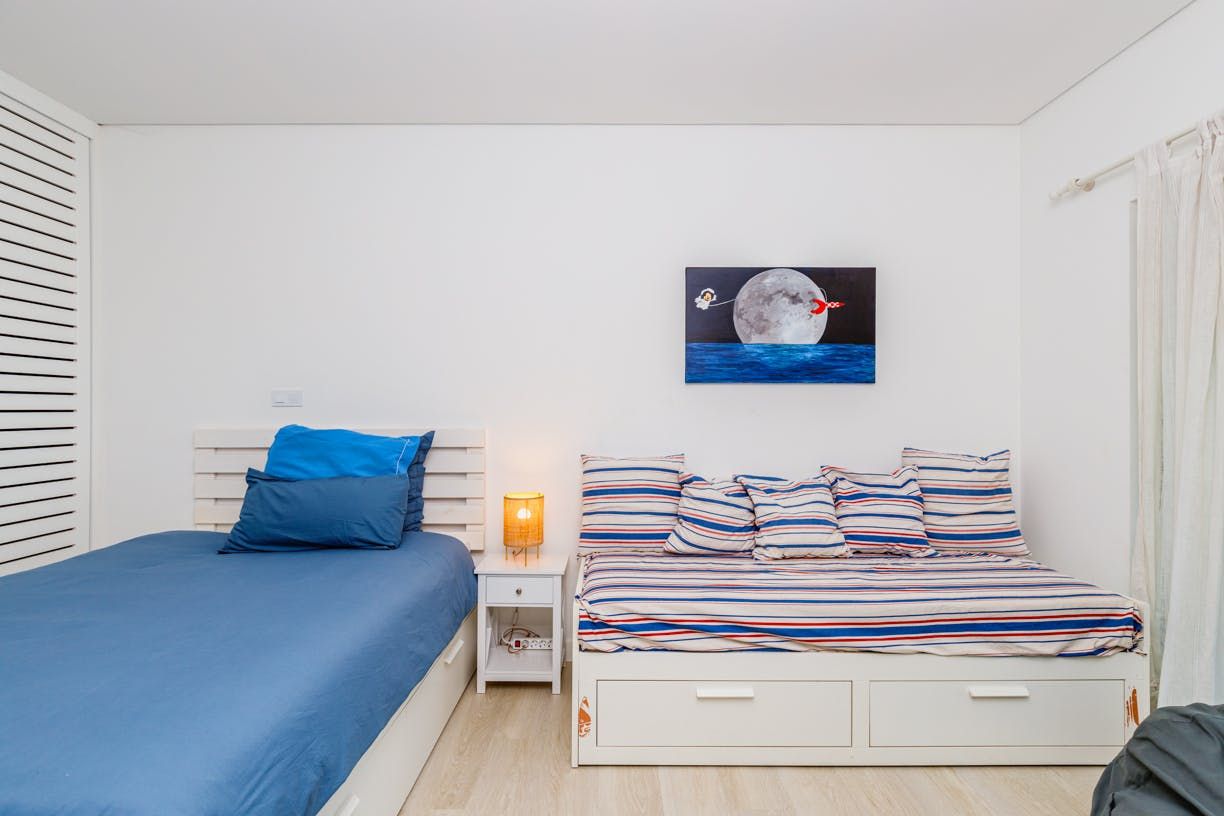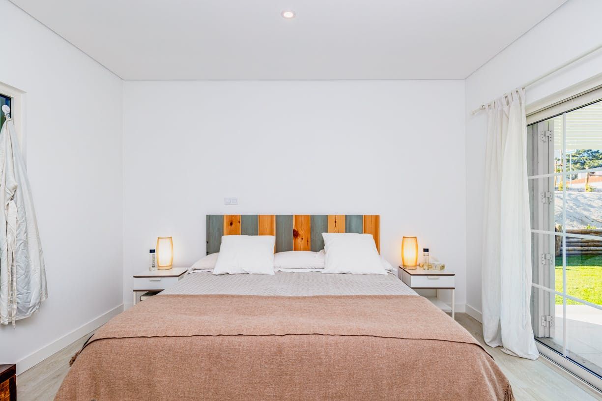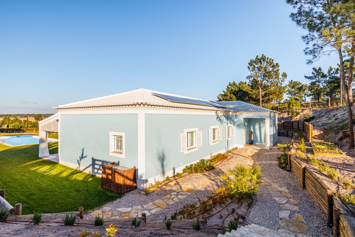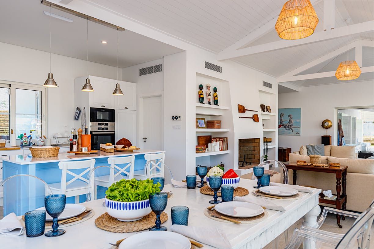 Set back 800 metres from Carvalhal Beach, this villa centres around outdoor living with a private pool and shaded seating spots. Inside, we love how the American-style kitchen and open fireplace create a relaxed ambience for itinerary planning. With children's singles in bedrooms three and four, this home is better suited for family holidays than friend groups. Fancy a treat? Hire a buggy and ride by the rice paddies. While the nearest restaurant is 300 metres away, you can have a professional chef take care of dinner.