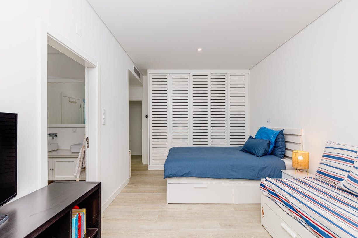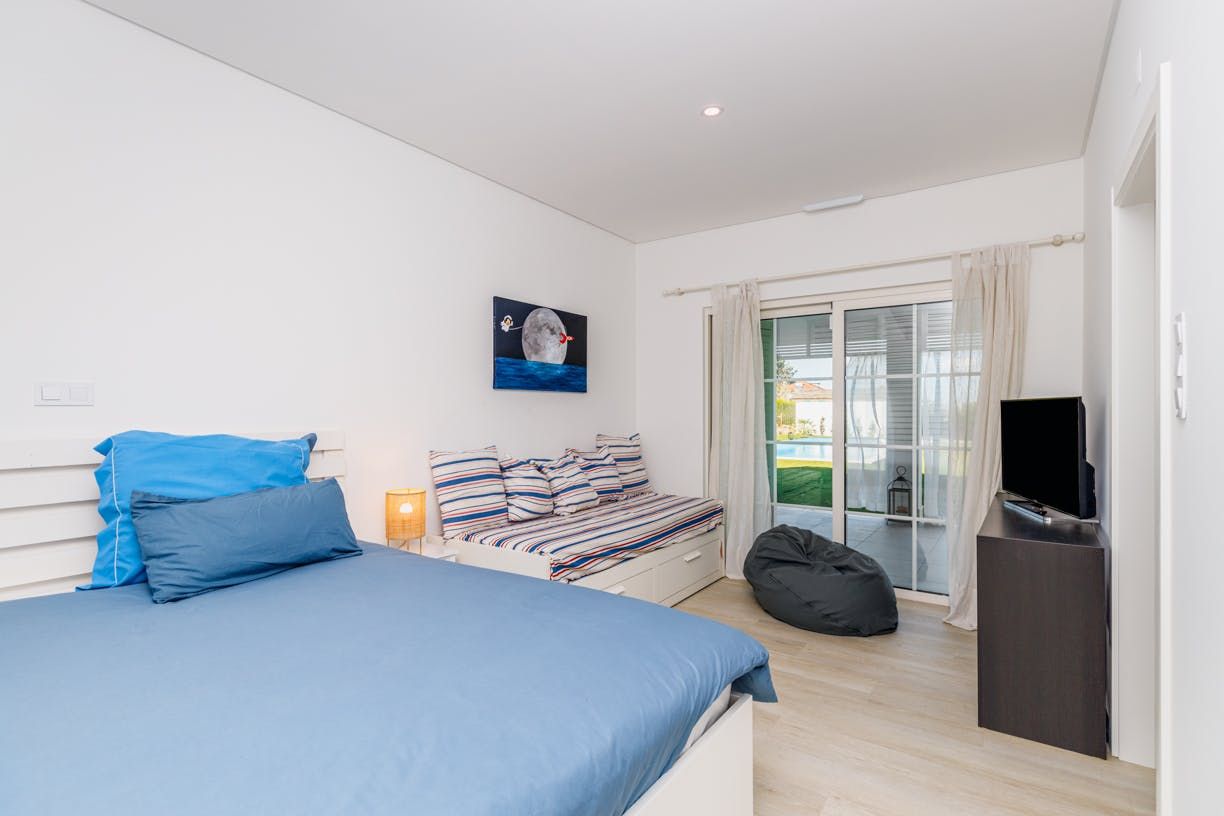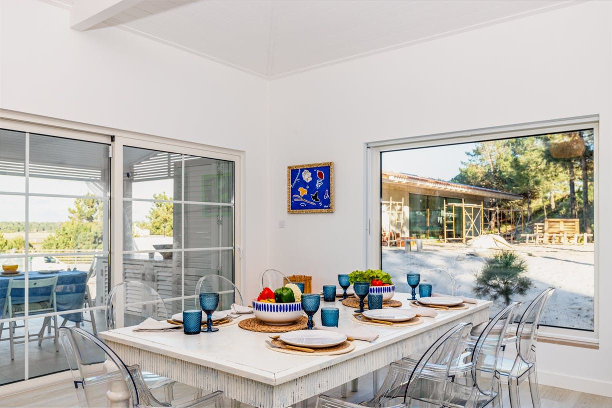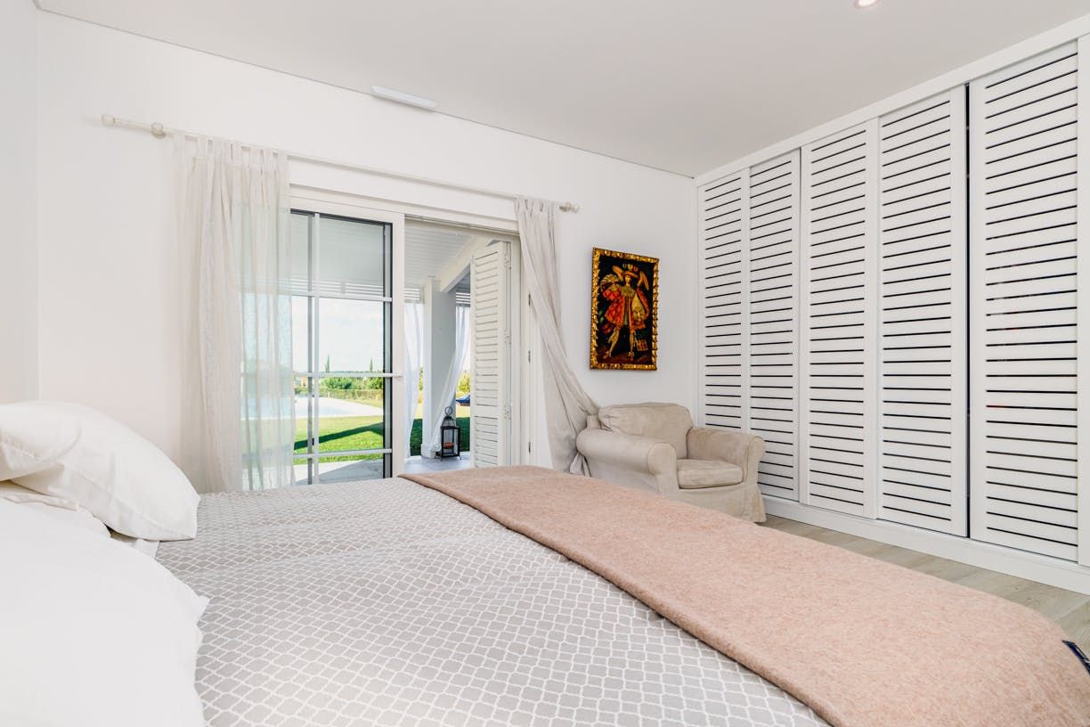 Set back 800 metres from Carvalhal Beach, this villa centres around outdoor living with a private pool and shaded seating spots. Inside, we love how the American-style kitchen and open fireplace create a relaxed ambience for itinerary planning. With children's singles in bedrooms three and four, this home is better suited for family holidays than friend groups. Fancy a treat? Hire a buggy and ride by the rice paddies. While the nearest restaurant is 300 metres away, you can have a professional chef take care of dinner.