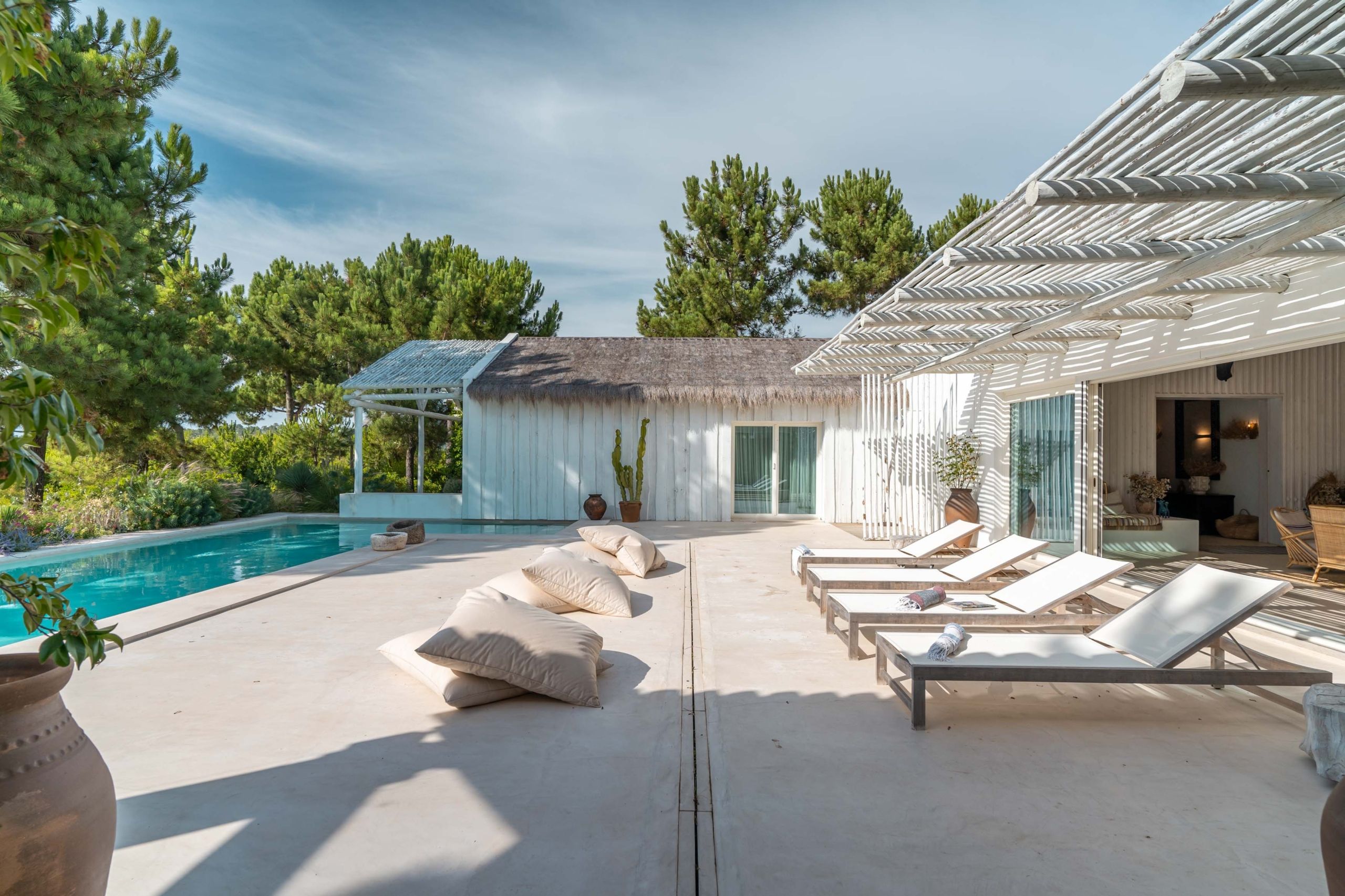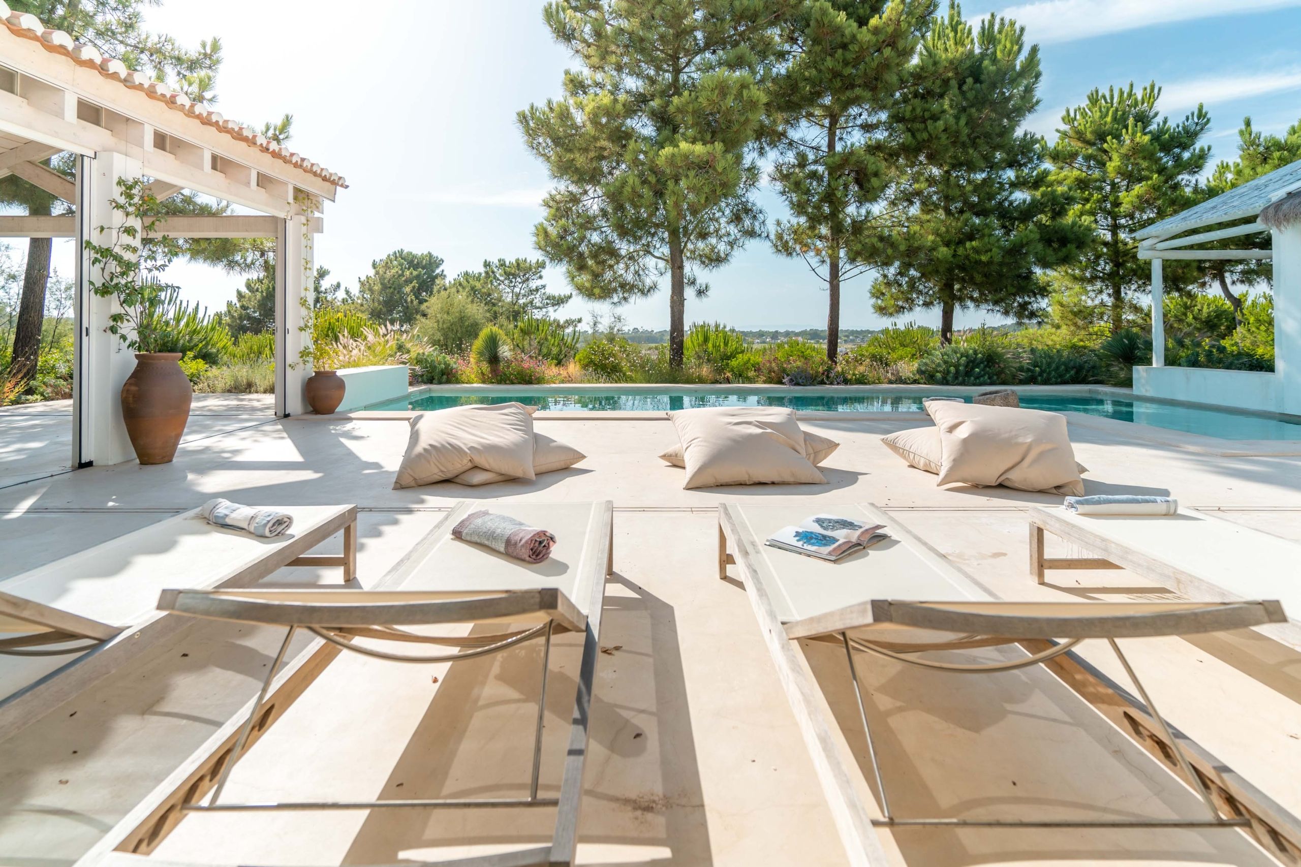 Tucked away in the exclusive residential enclave of Casas da Encosta, this villa is surrounded by natural beauty. While it’s big enough to sleep twelve, one of the bedrooms has three bunk beds so is best for children. Lazy days here can be spent lounging by the private pool, enjoying the panoramic views, or tucking into an alfresco meal at the shaded dining table. And when you’re ready for a change of scene, the nearest beach is just a two-minute drive away. You can also hire bikes and buggies from your host to explore the surrounding area at your own pace.