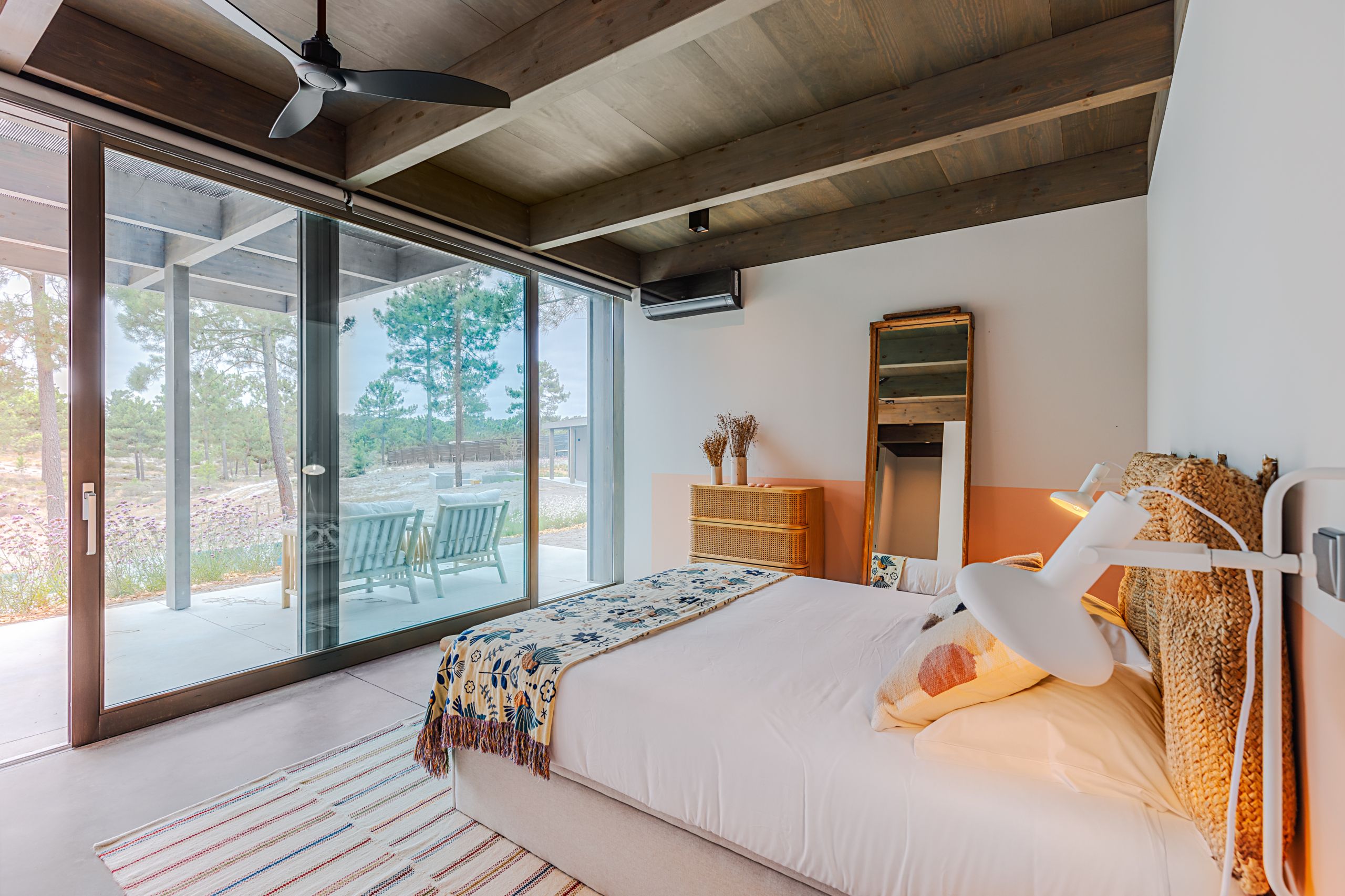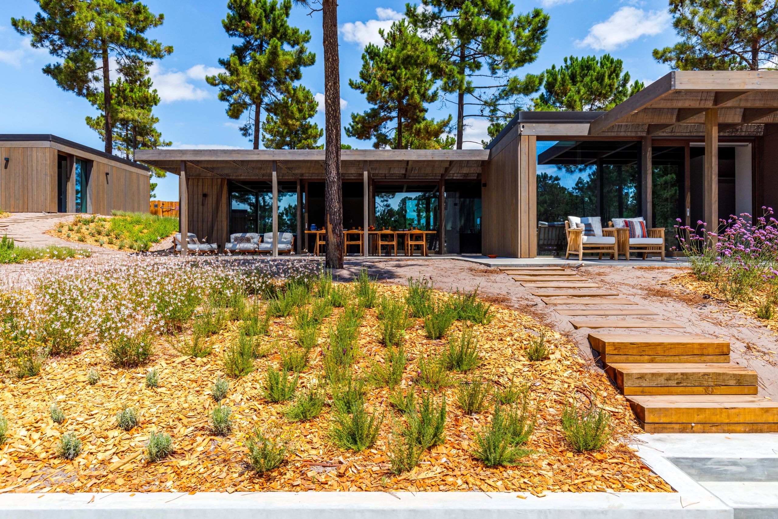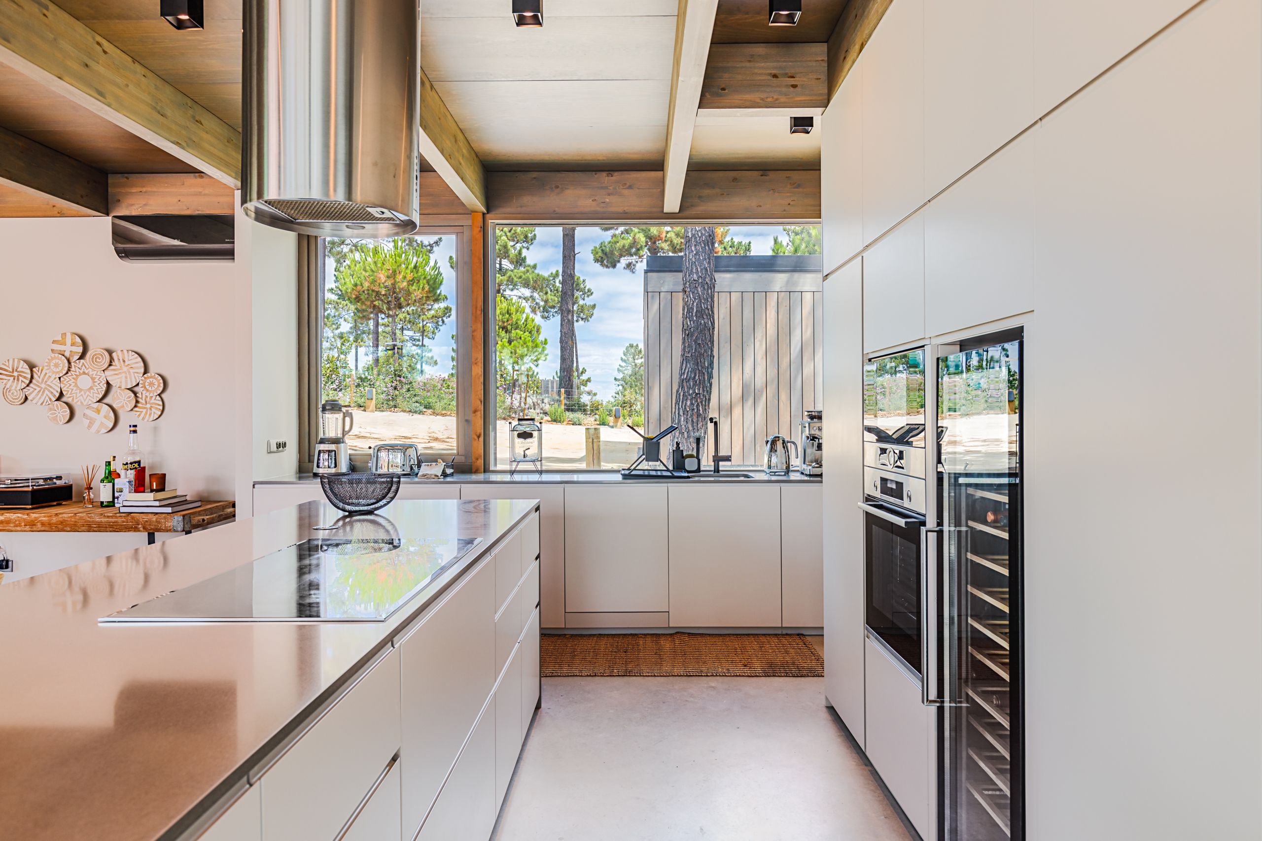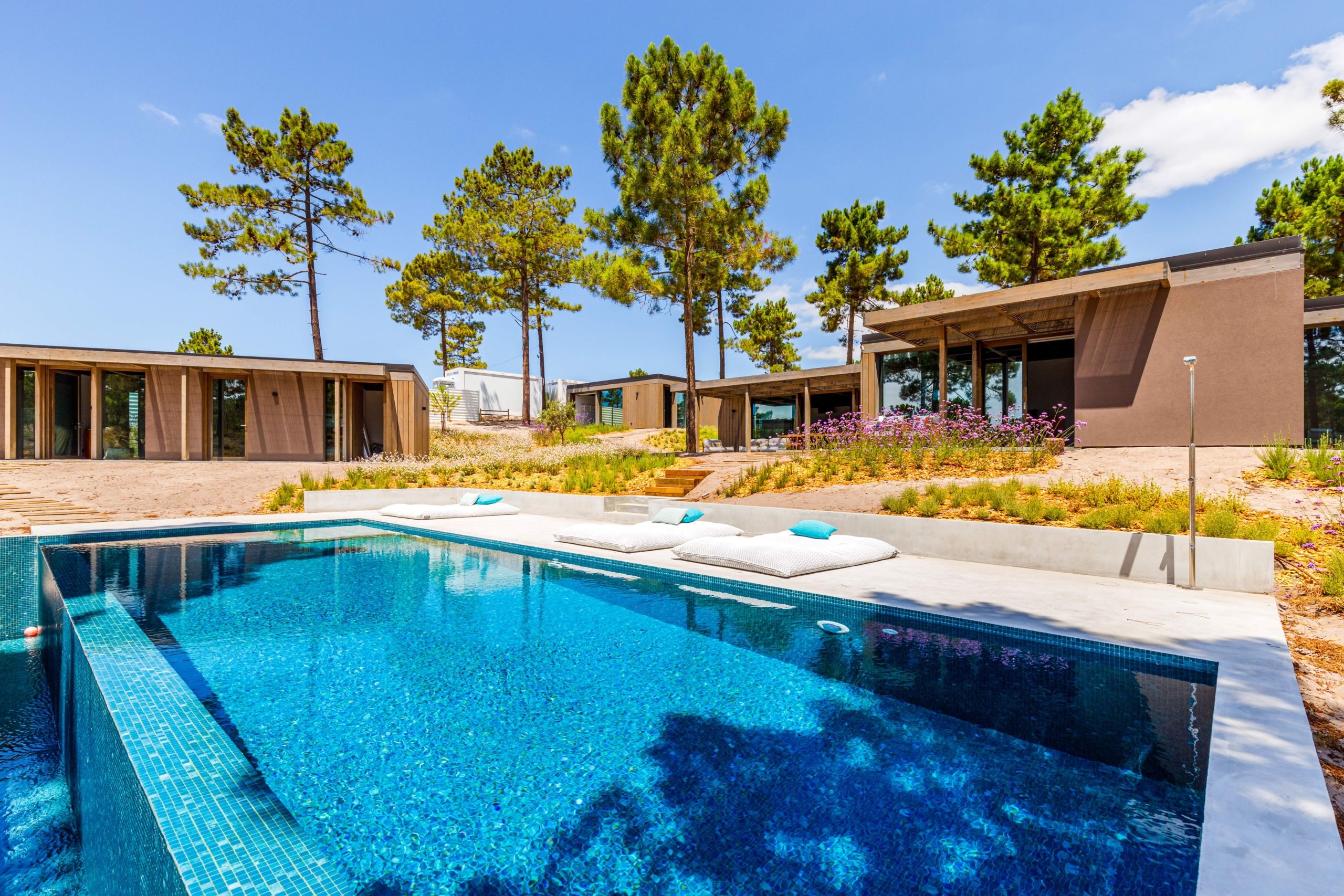 This coastal hideaway sits in perfect harmony with the natural beauty of its surroundings. Consisting of three independent homes, you’ll find each building has been thoughtfully curated to inspire optimum relaxation. From the calm aesthetics to the saltwater pool and serene location, this is the perfect opportunity to switch off and spend quality time together. Your host is also on hand to help organise housekeeping, children’s amenities and bike rentals, plus it’s just a short walk to the beach (800 metres away).