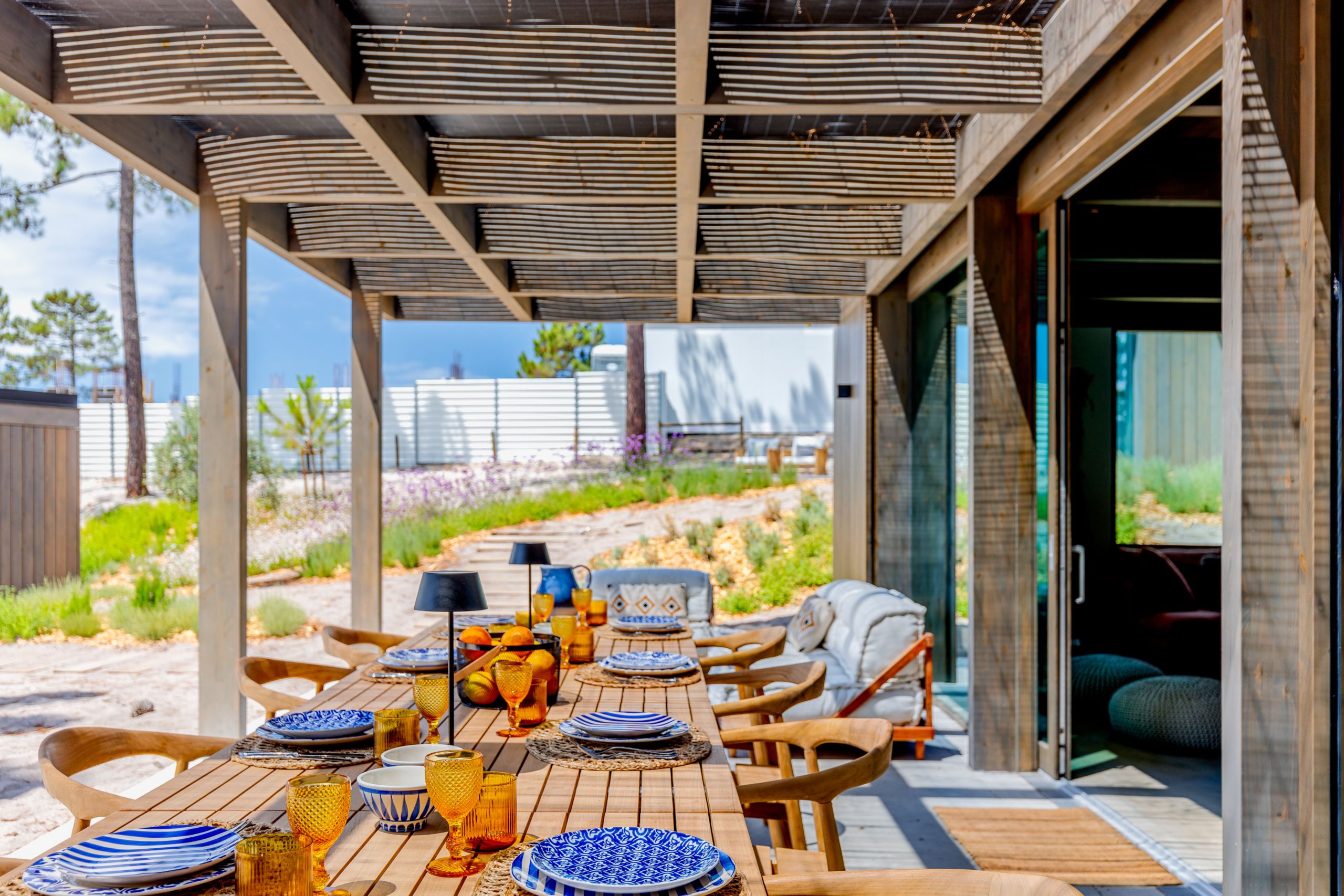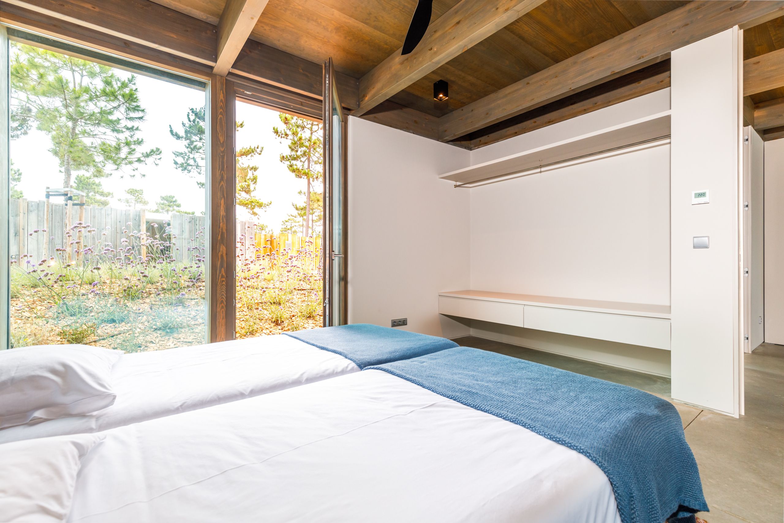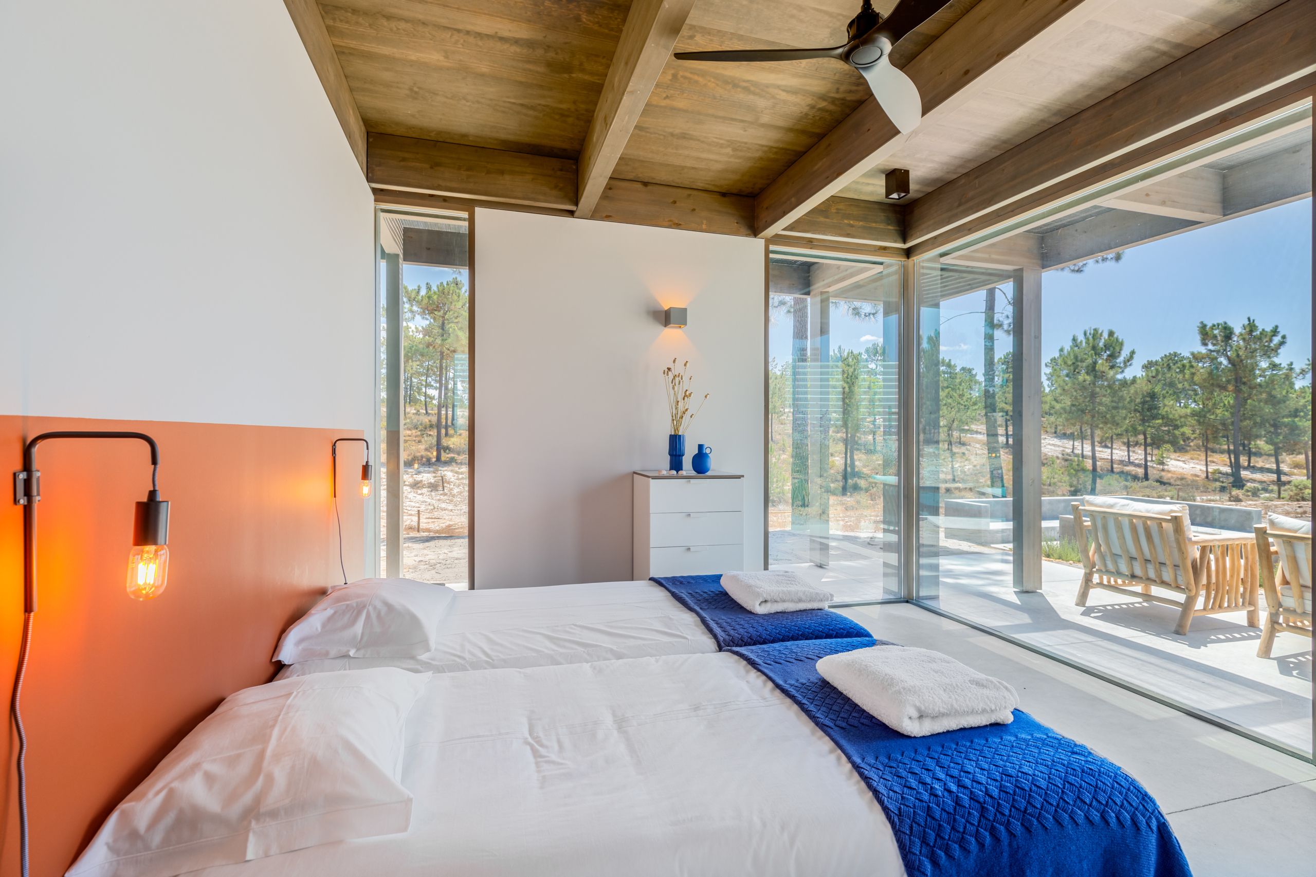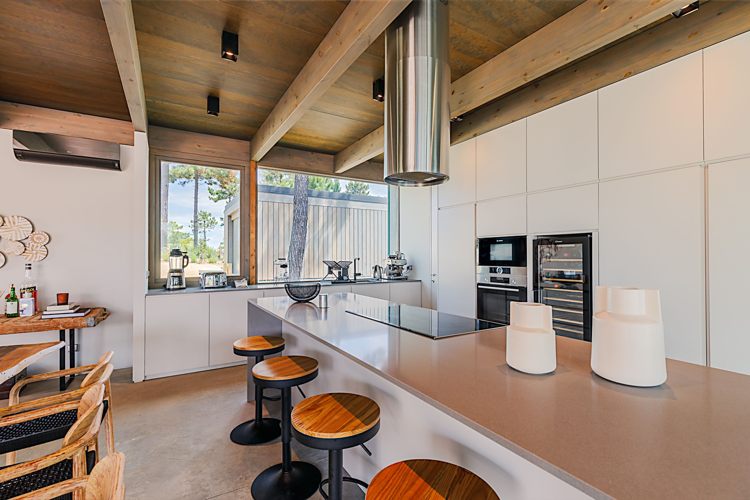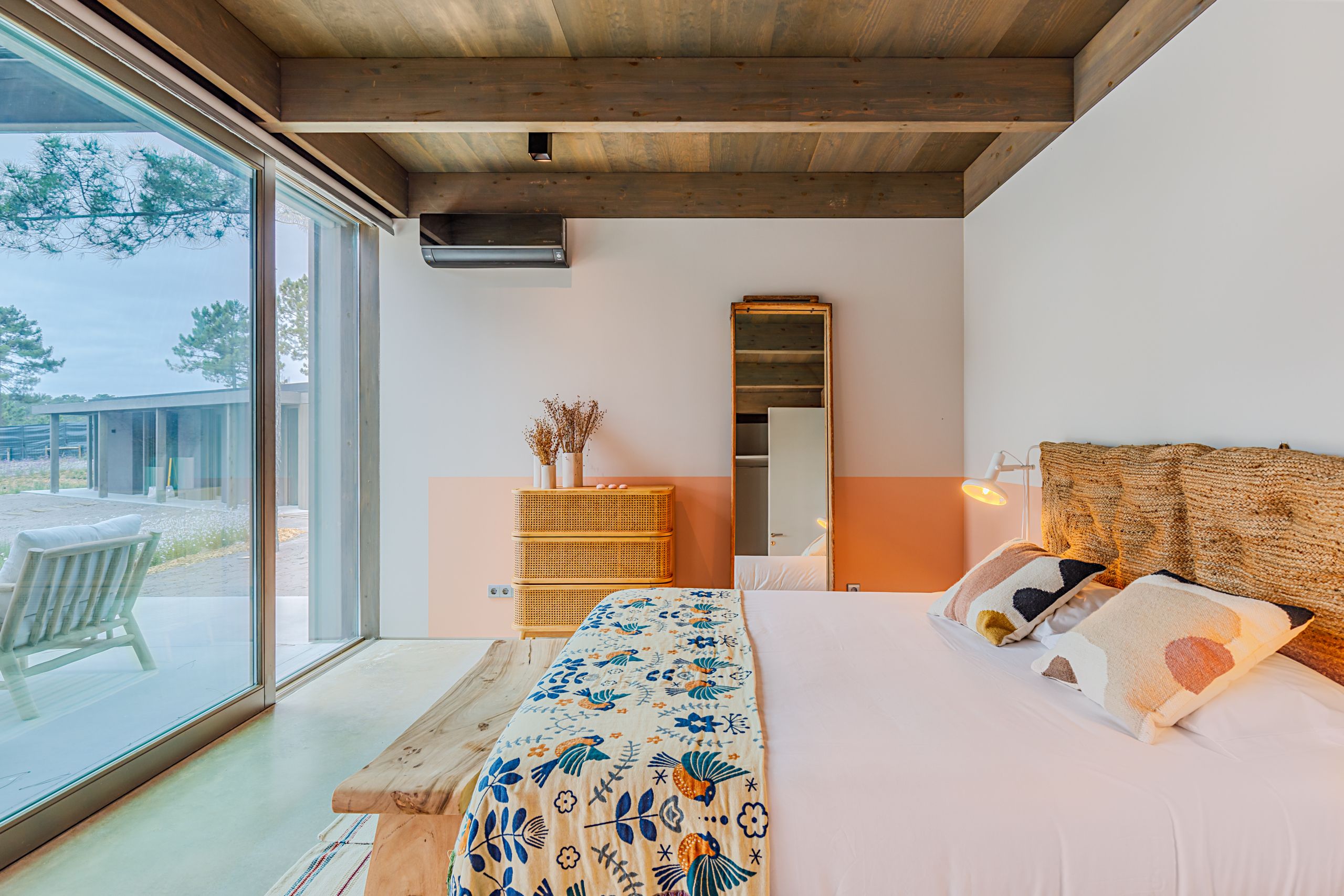 This coastal hideaway sits in perfect harmony with the natural beauty of its surroundings. Consisting of three independent homes, you’ll find each building has been thoughtfully curated to inspire optimum relaxation. From the calm aesthetics to the saltwater pool and serene location, this is the perfect opportunity to switch off and spend quality time together. Your host is also on hand to help organise housekeeping, children’s amenities and bike rentals, plus it’s just a short walk to the beach (800 metres away).