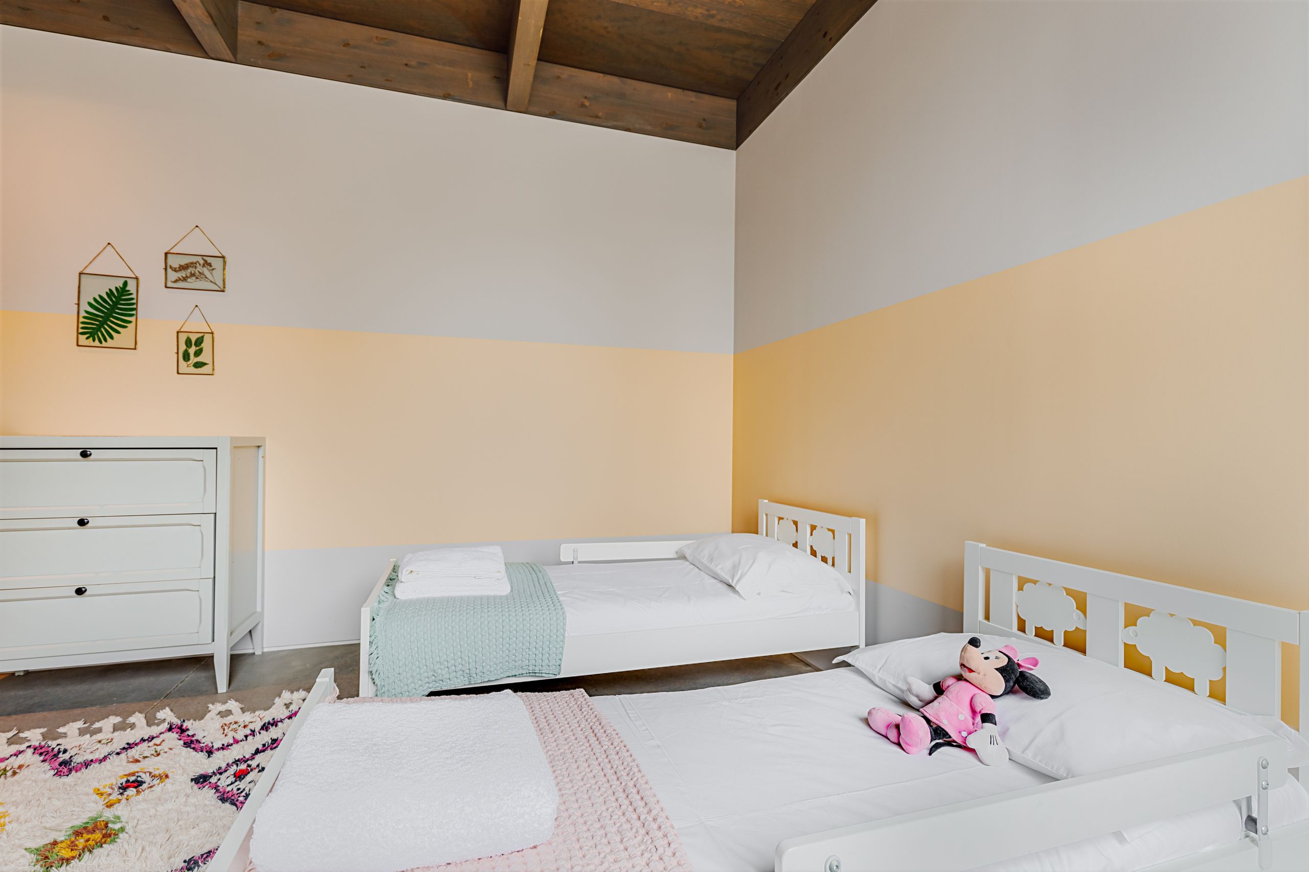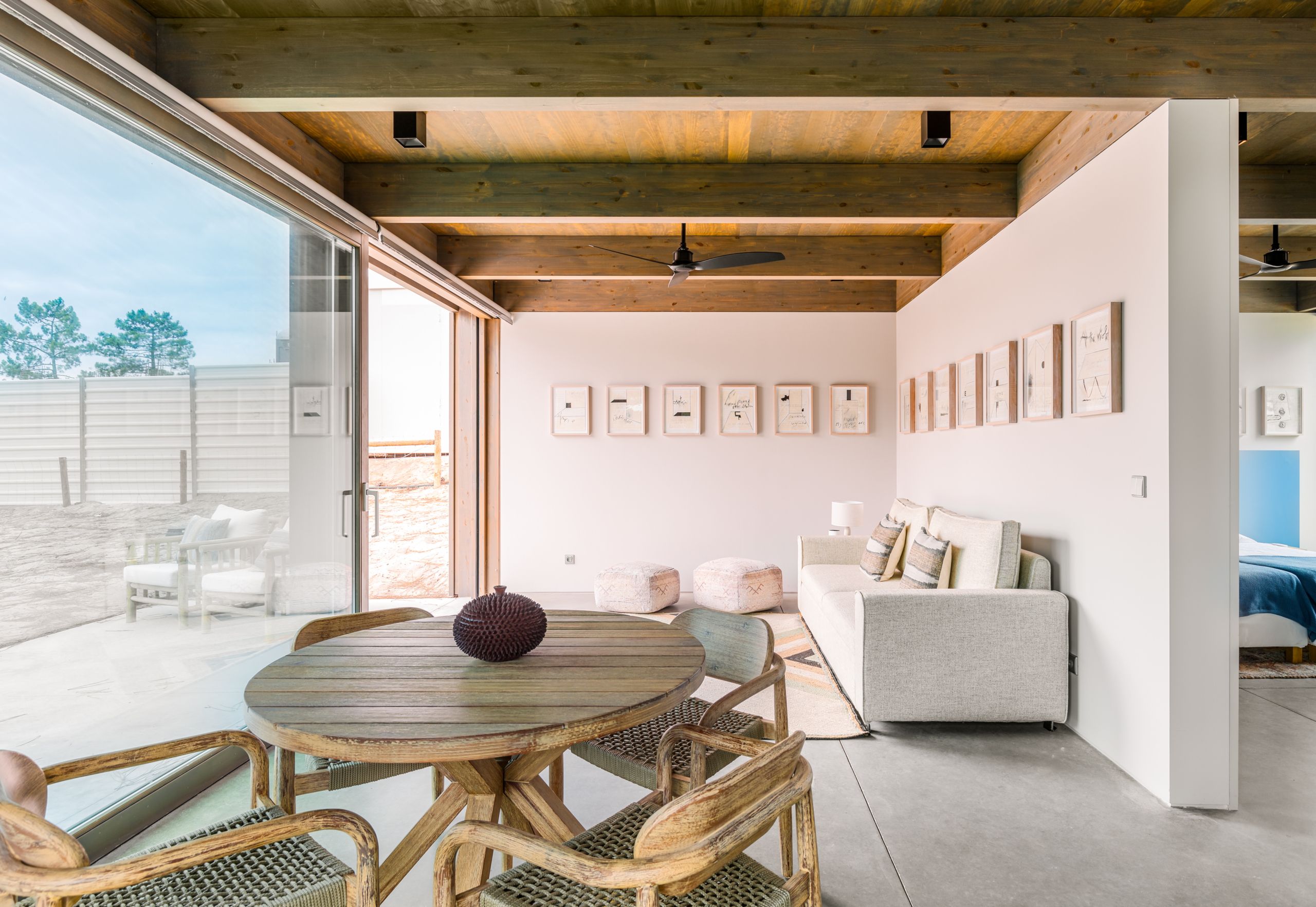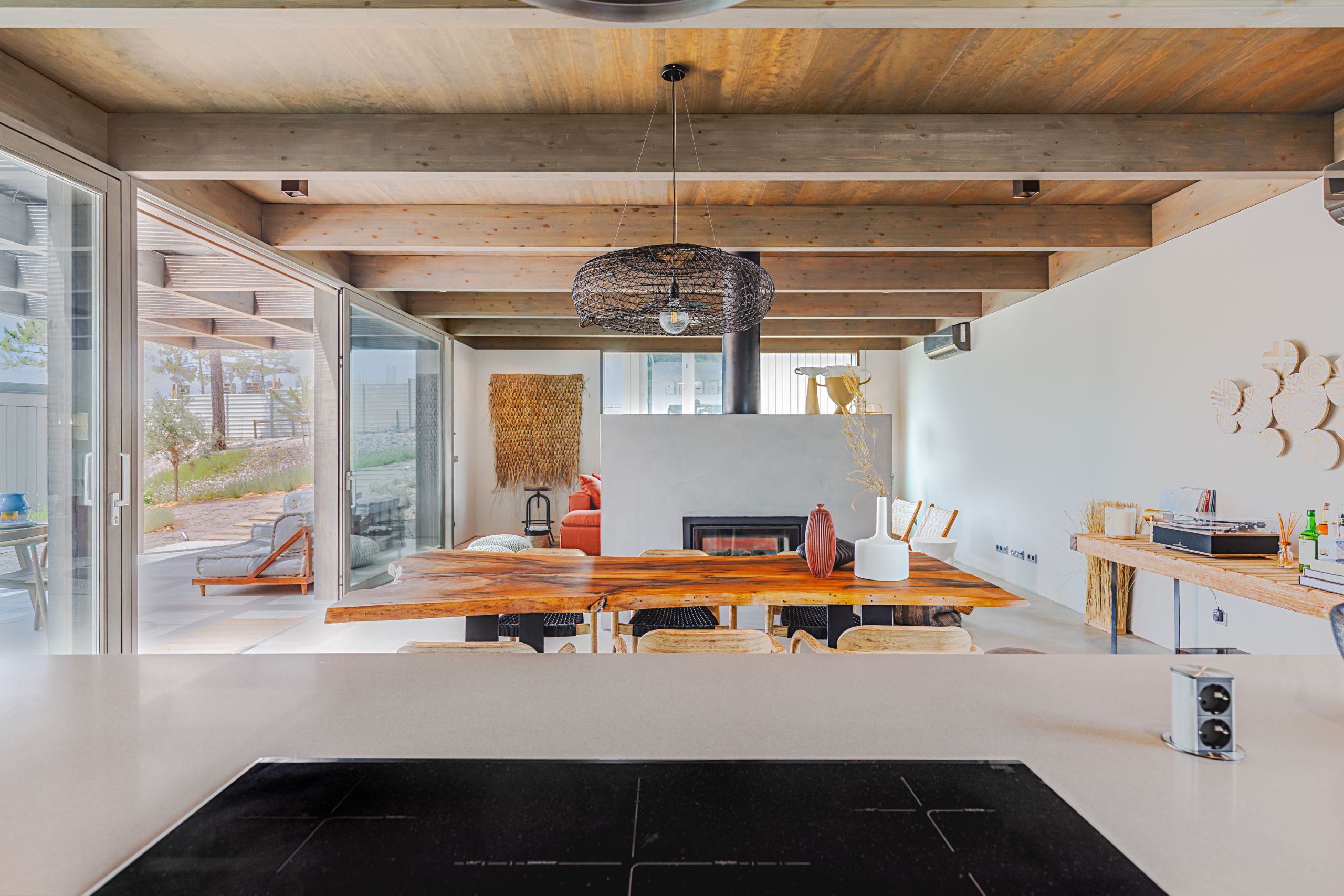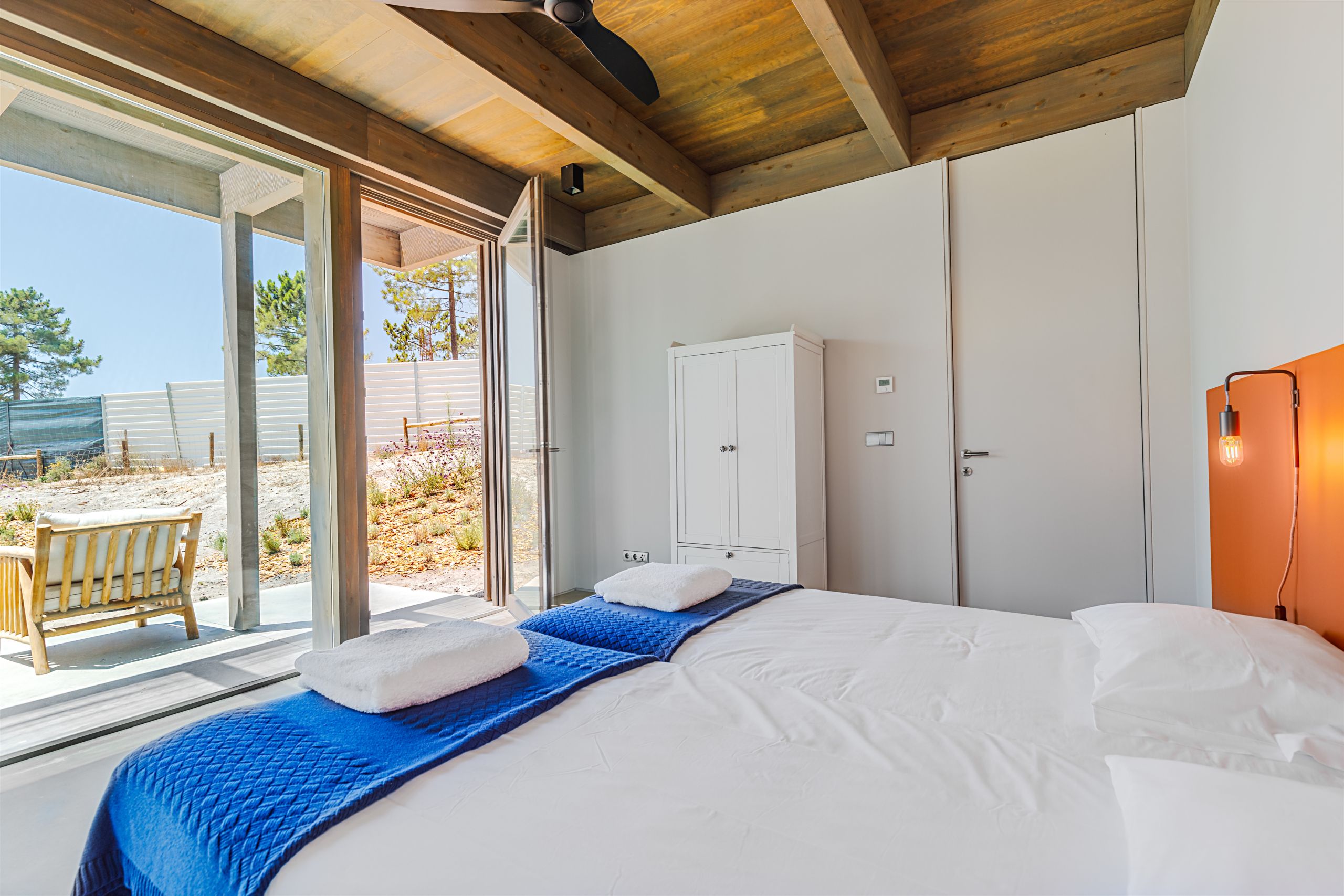 This coastal hideaway sits in perfect harmony with the natural beauty of its surroundings. Consisting of three independent homes, you’ll find each building has been thoughtfully curated to inspire optimum relaxation. From the calm aesthetics to the saltwater pool and serene location, this is the perfect opportunity to switch off and spend quality time together. Your host is also on hand to help organise housekeeping, children’s amenities and bike rentals, plus it’s just a short walk to the beach (800 metres away).