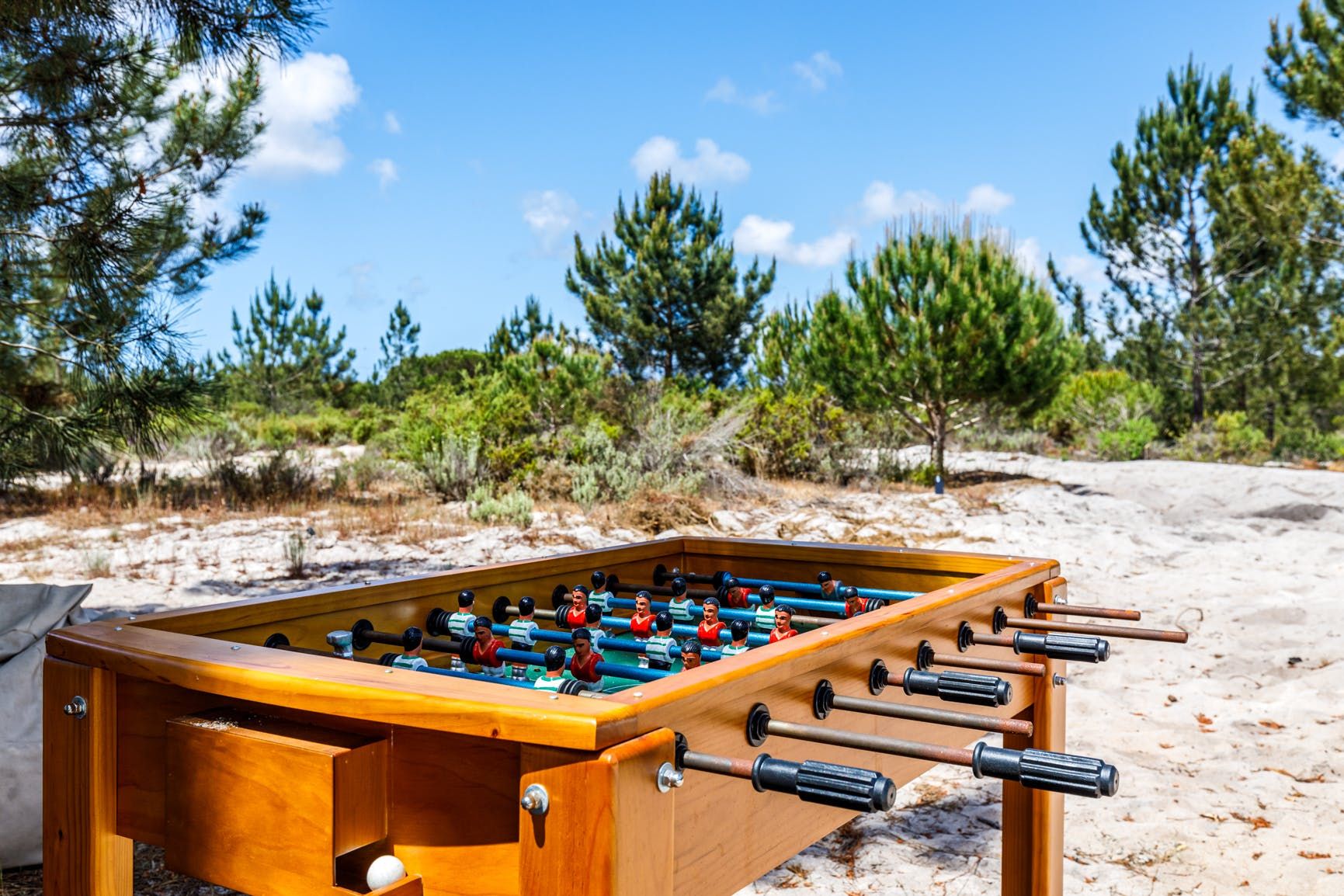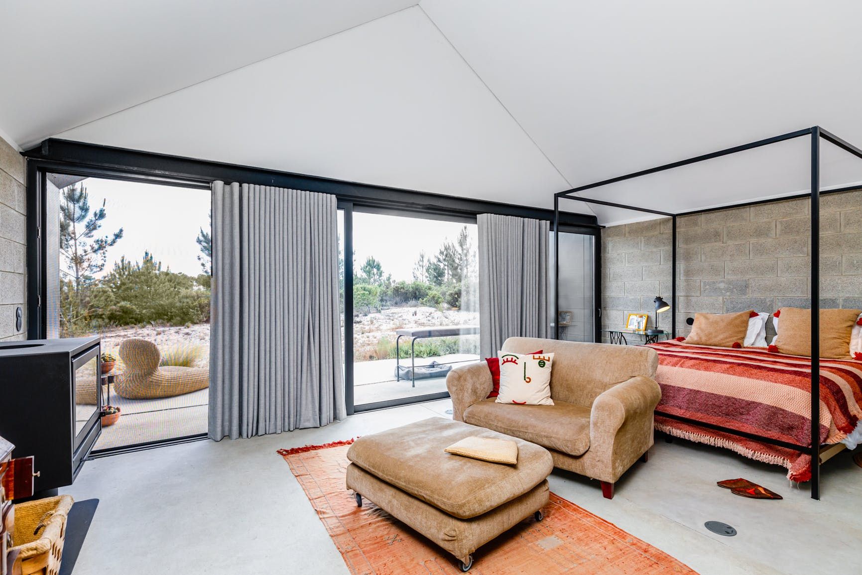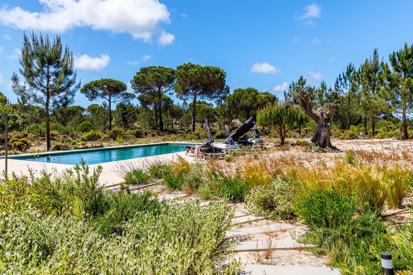 Wrapped in olive and pine trees, this home exudes rustic refinement. Outside, guests can stretch out around the swimming pool, enjoy long hikes through the surrounding countryside and gather for barbecue meals as the sun sets. Inside, the rooms are family-friendly with plenty of socialising space and a loft room for children. Your host is on hand to help organise a range of extra services here – including a private chef and bike rental. From here it’s just 12 kilometres to the beach, while the amenities in Comporta are just a short drive away.